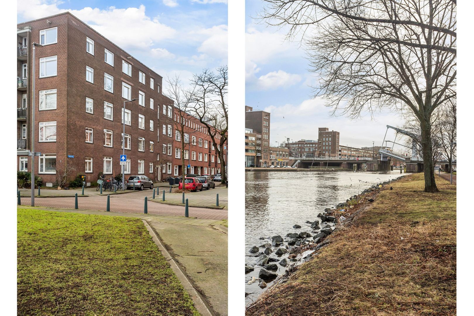 En op 25 meter lopen van De Delfshavense Schie, met een breed groen plantsoen; een fijne plek met wandel- en zitgelegeheid. En altijd die wijde blik over het drukke water met boeiende scheepsbewegingen. Enkele mooie fietsroutes stad-in en stad-uit beginnen hier!