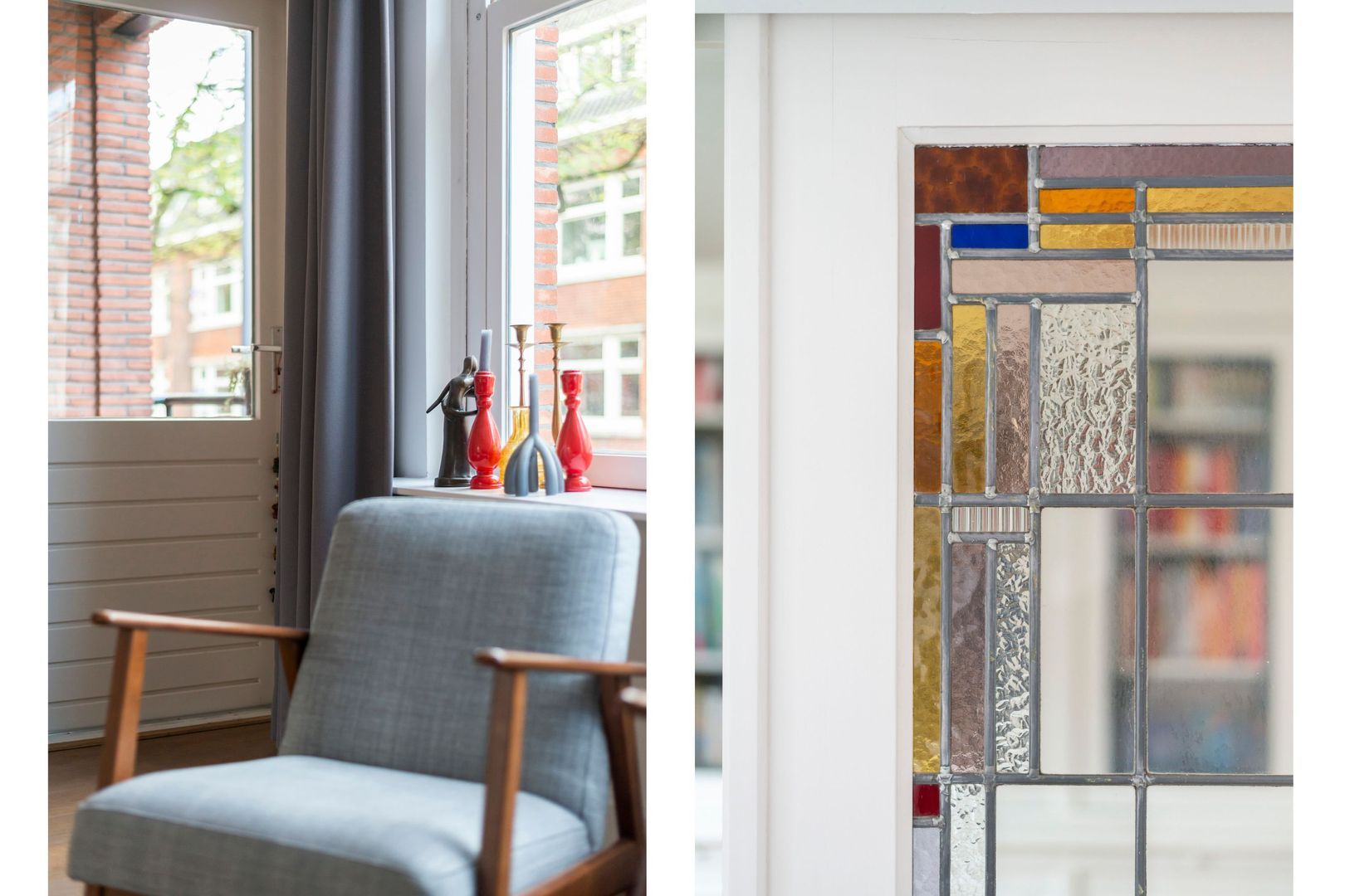 tijdloos en warm interieur met diverse oorspronkelijke details en ‘fris’ glas in lood.