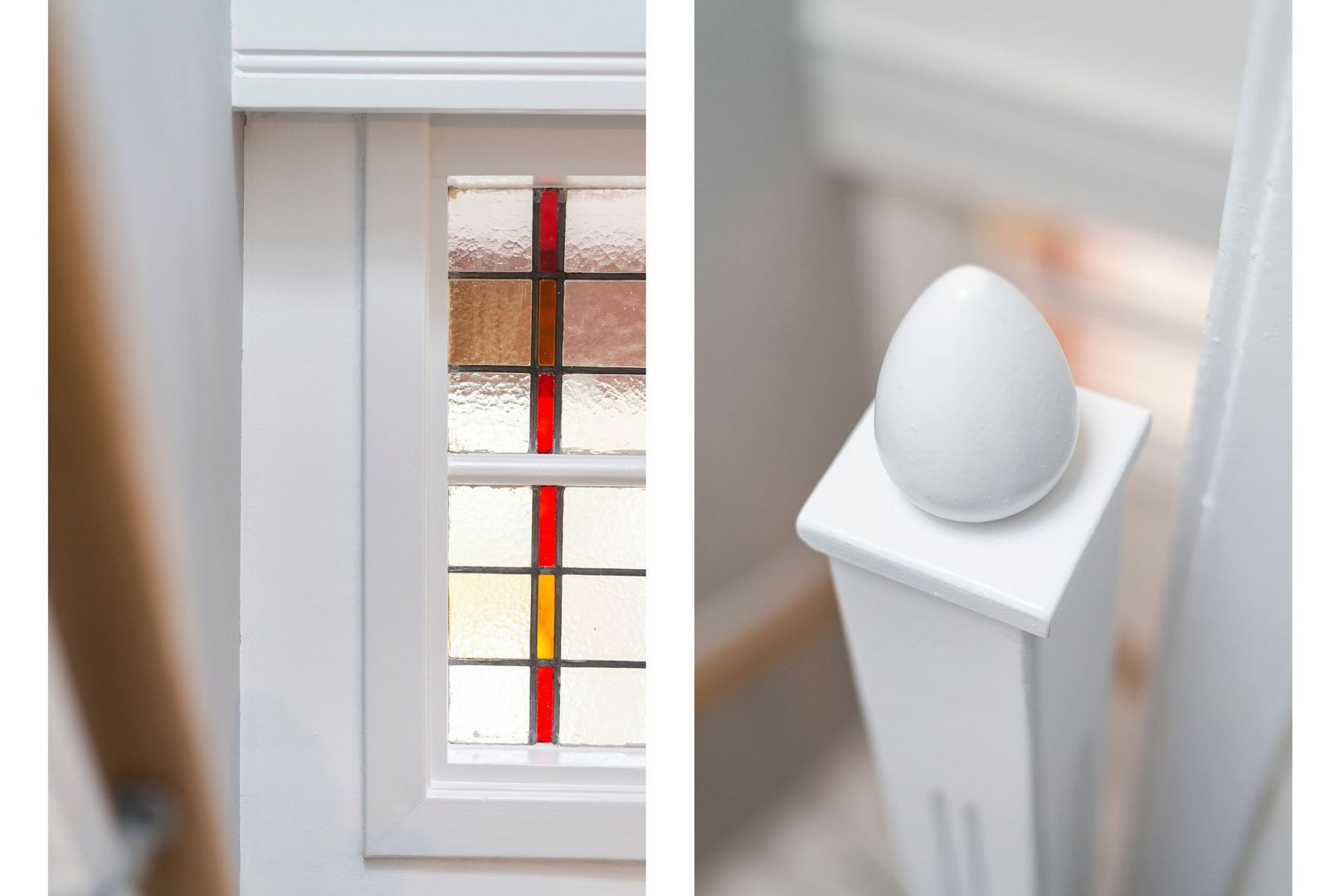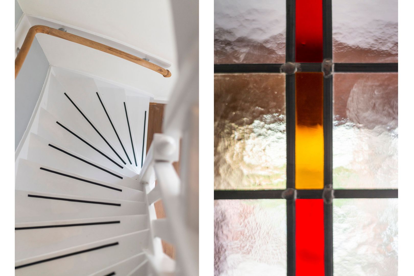 - Alle originele binnenkozijnen gerestaureerd. En veel glas-in-lood.