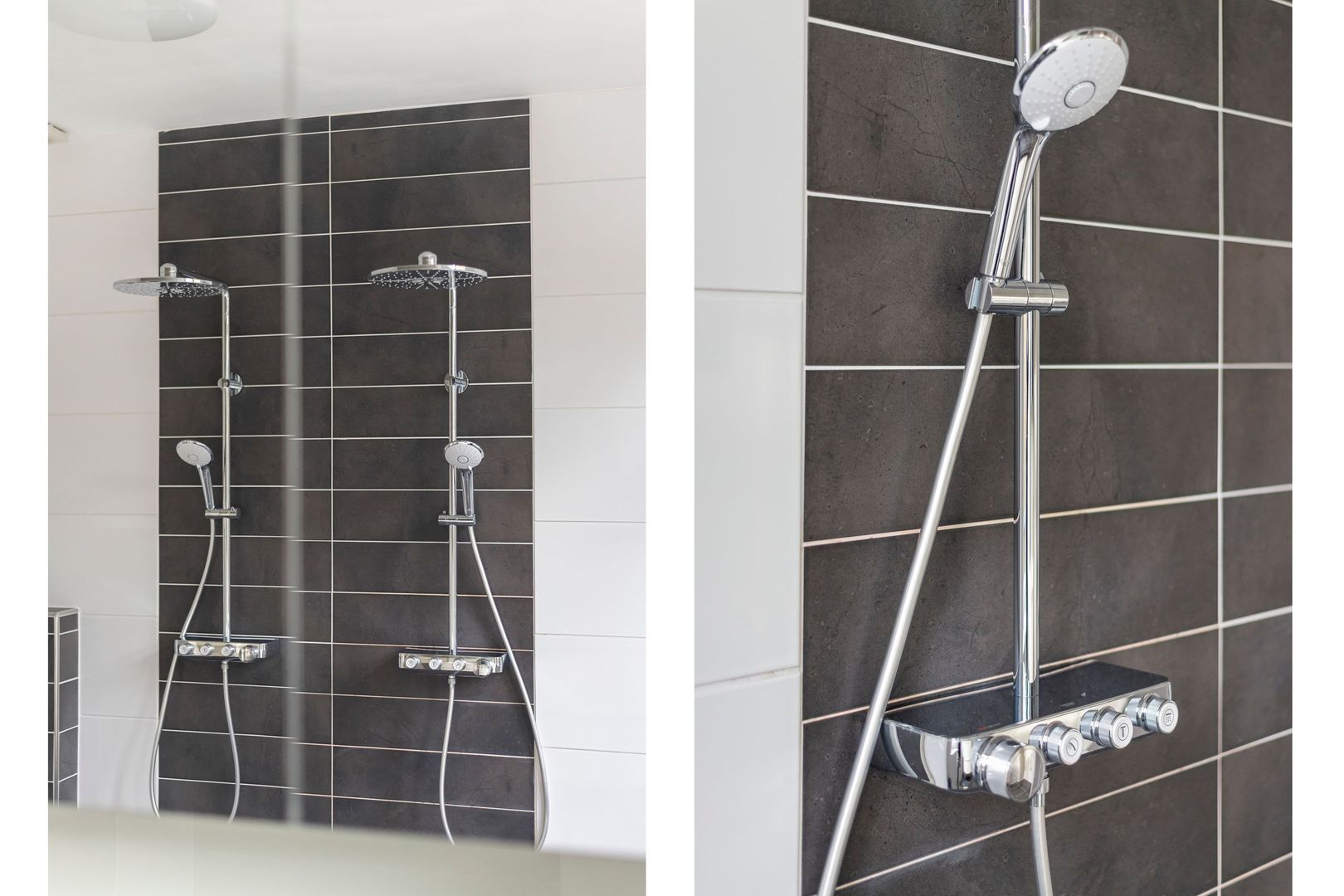 Echt grote badkamer ca. 9m² met (2e) closet/w.c., twee regendouches en een