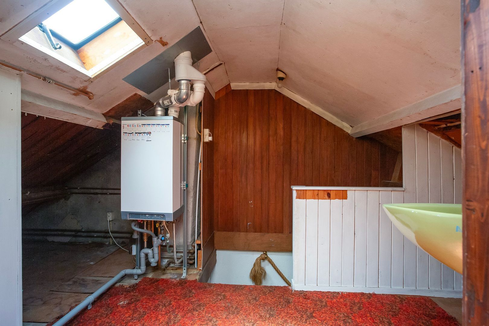 Vaste trap naar de zolderverdieping, voorzien van twee dakkapellen.