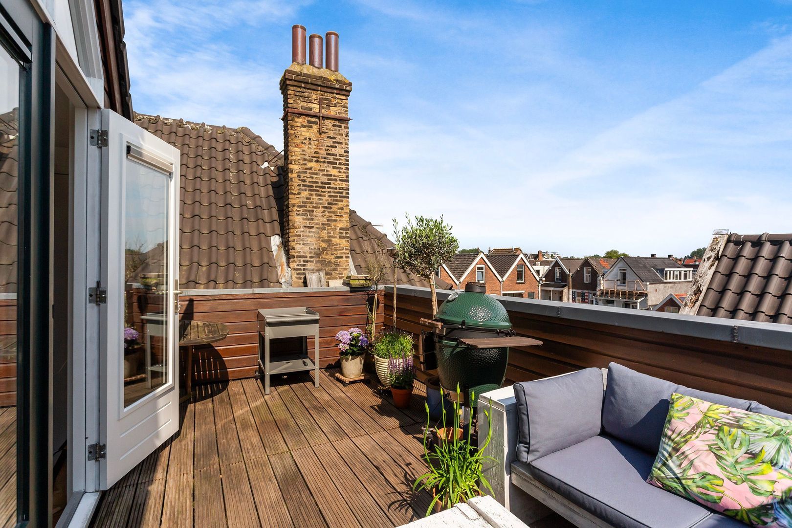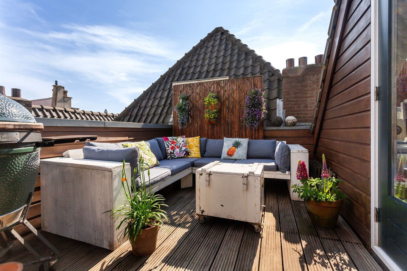 TERRAS (ca. 15m²) met veel privacy en leuk zicht over de daken van Kralingen.