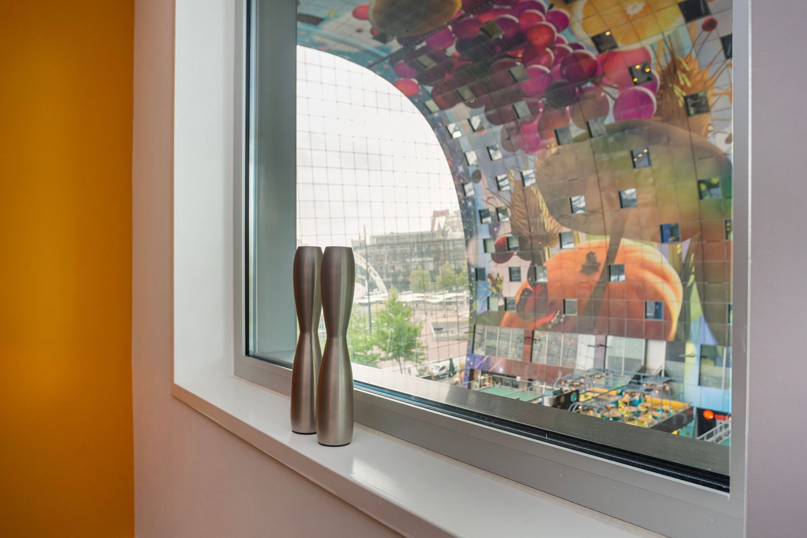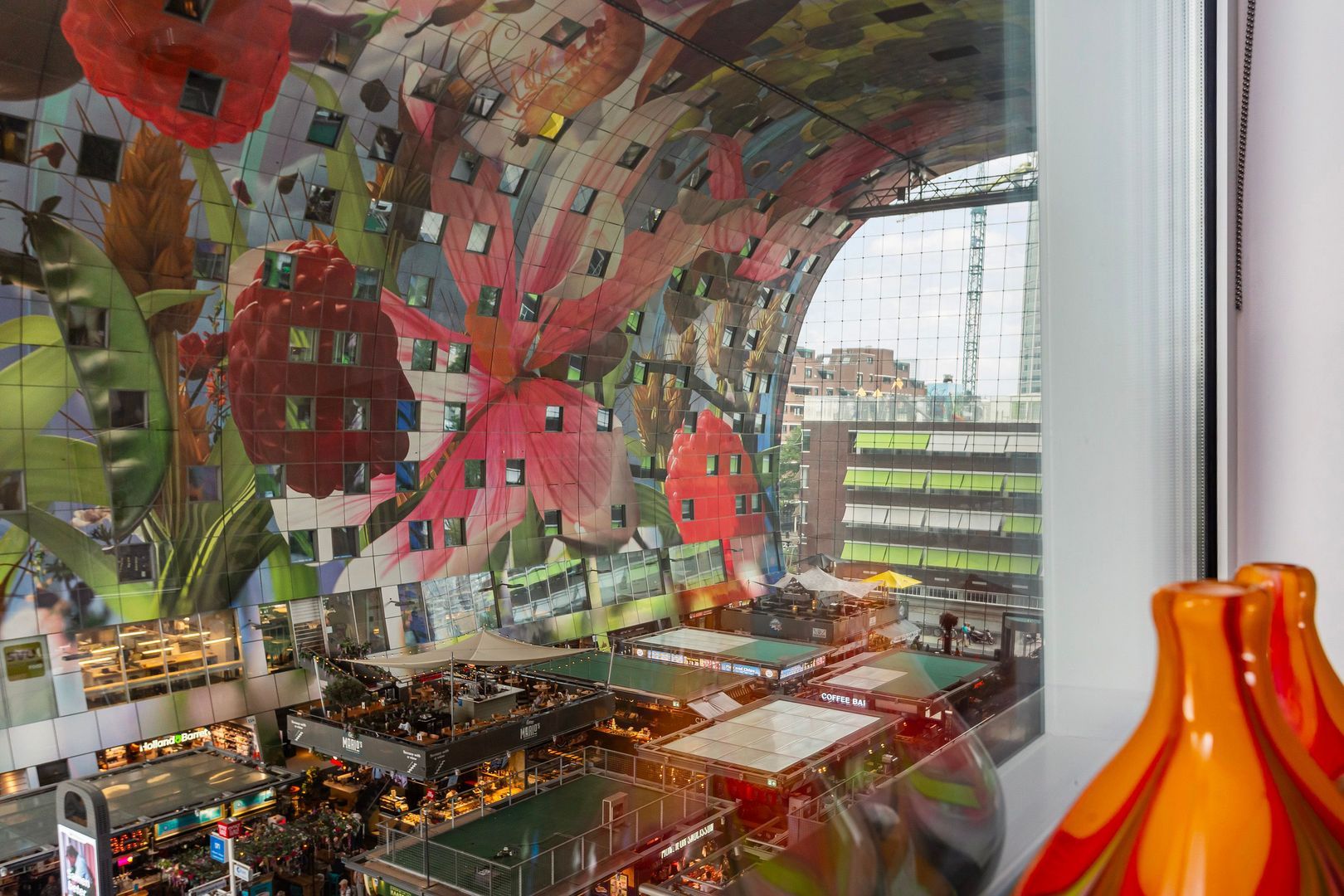 From this apartment, there is a pleasant visual connection (and interaction) with the vibrant Binnenrotte and its users, several landmarks of the Rotterdam skyline, and a fantastic view into the 'interior' of the Markthal.
