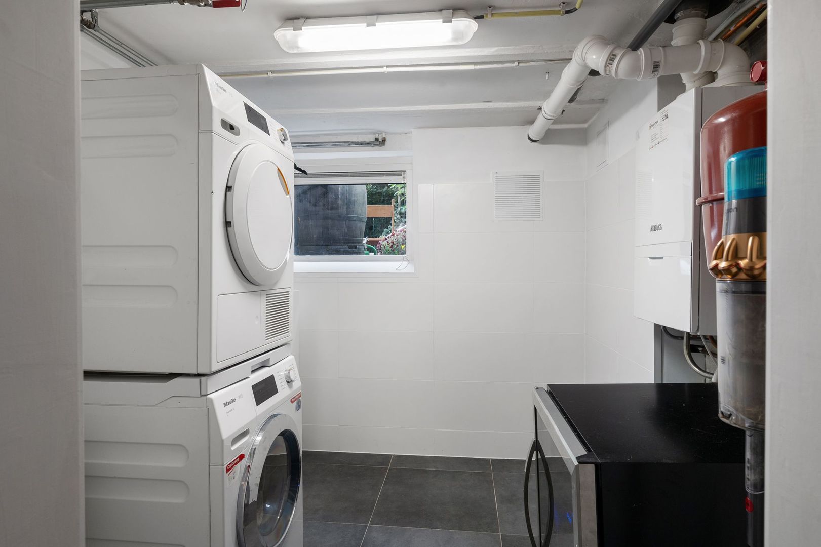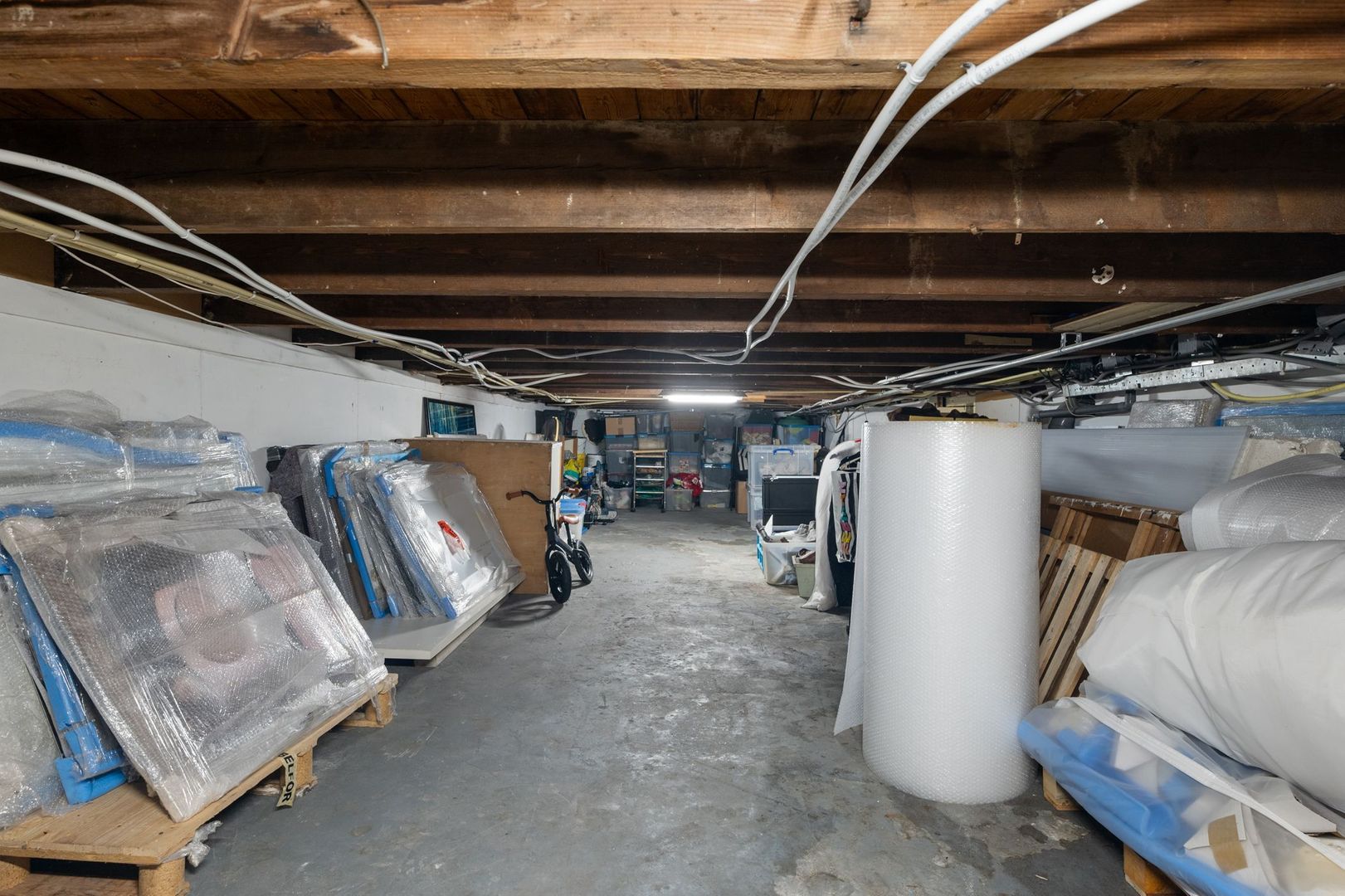 Daarnaast is er een heel volwassen wasruimte, een sta-hoge comfortabele kelder en een immens grote (wat lagere) opslagruimte onder vrijwel het hele huis.
