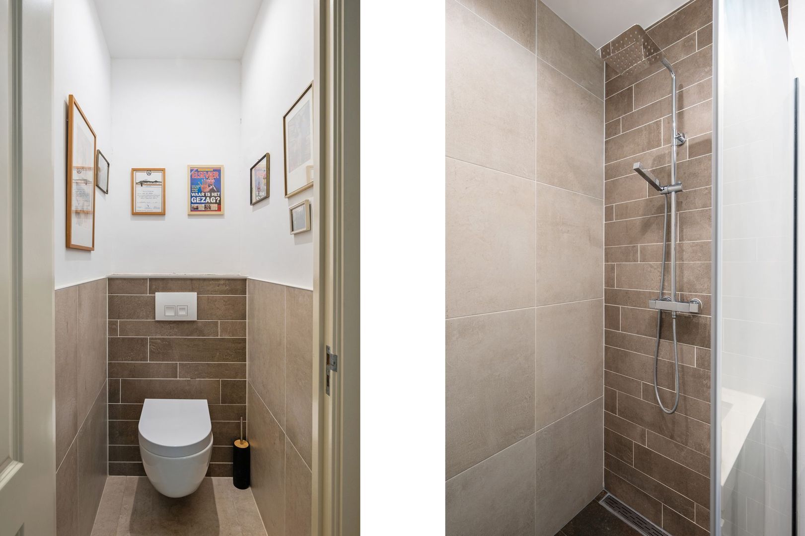 Entree, open gang met was/stookruimte/meterkast en toiletruimte (zand en natuurtinten..) met hangende wc.