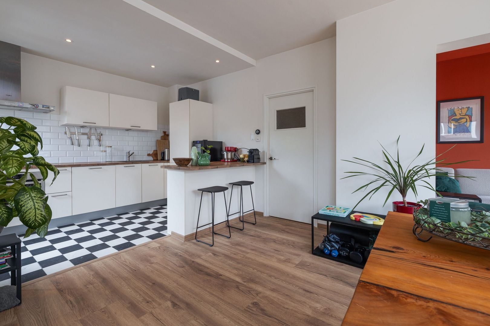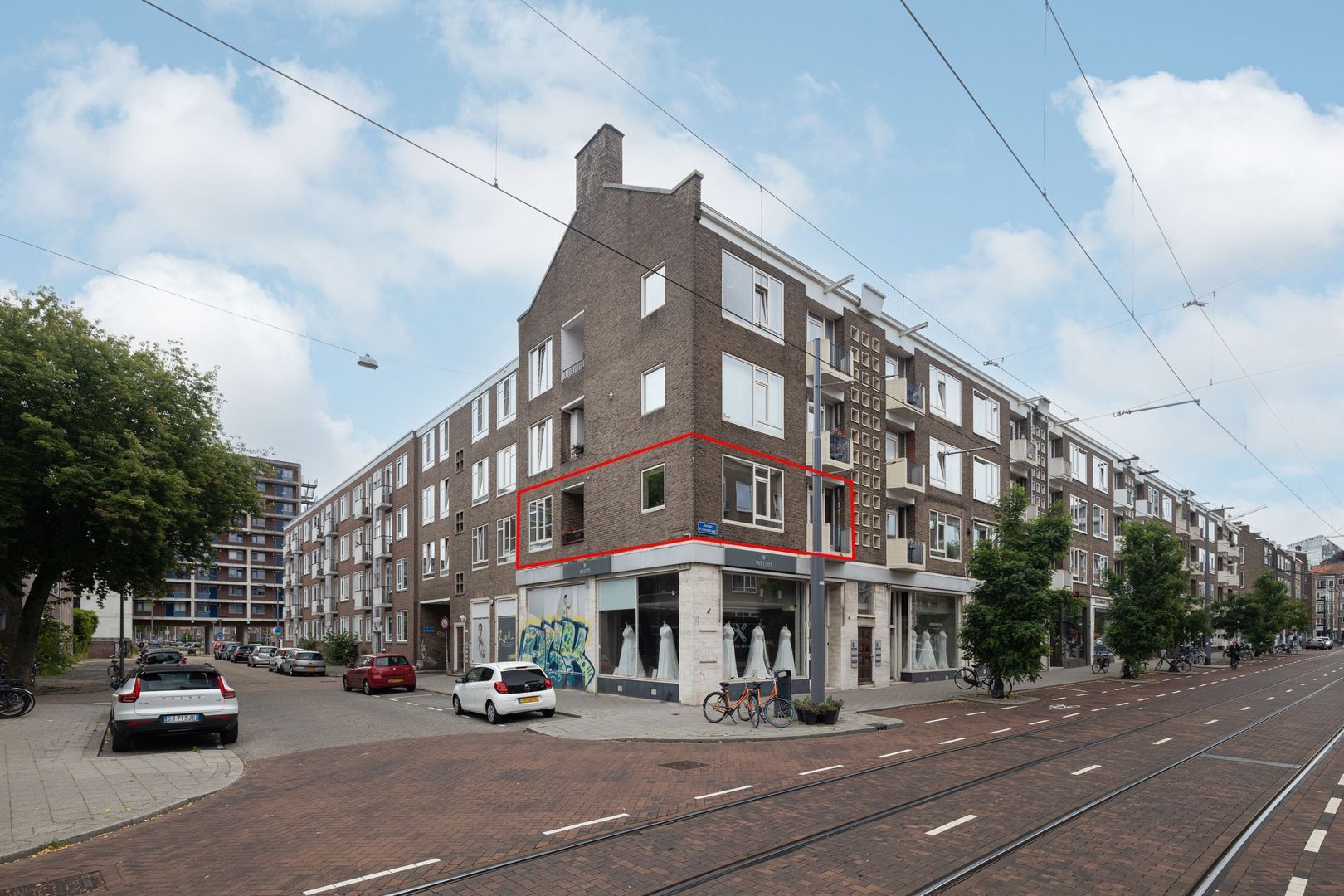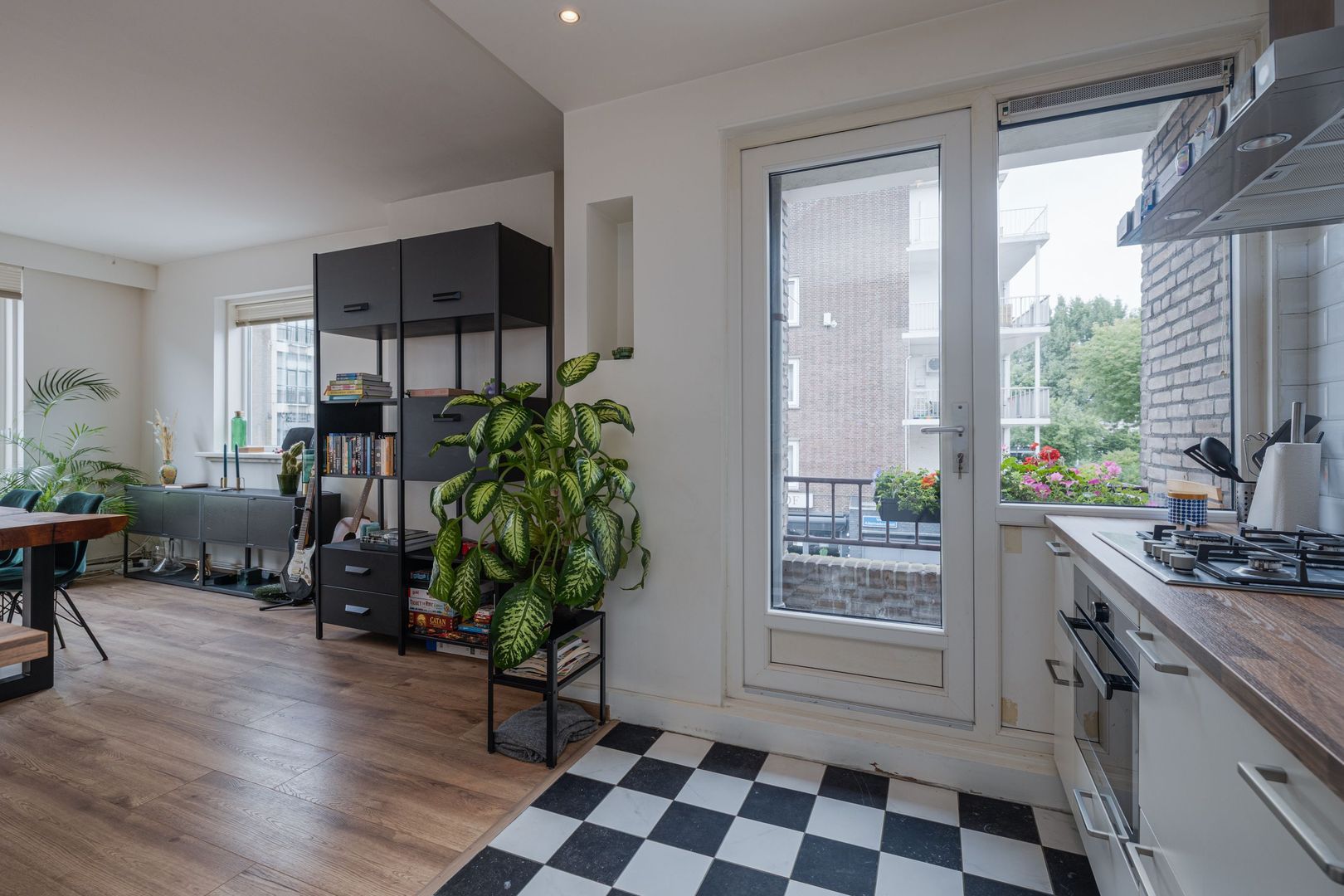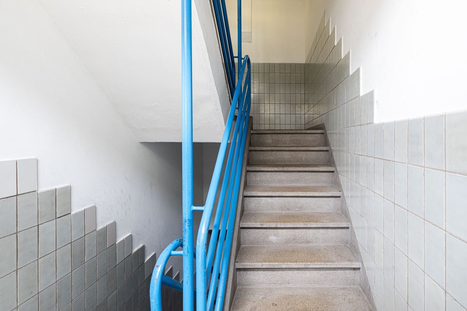 This three-bedroom (previously four-bedroom) upstairs flat of approximately 70 square metres, with two balconies, is located on the first floor of a characteristic 1950s apartment block on Jonker Fransstraat in Rotterdam.