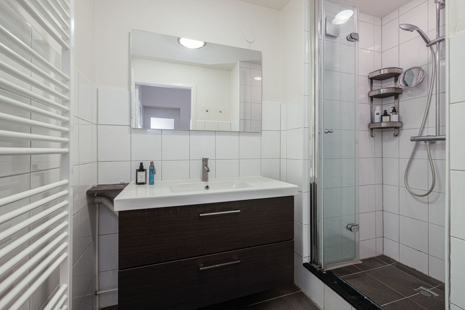 Finally, there is a modern bathroom with a spacious washbasin unit and shower. Finally, there is a modern bathroom with a spacious washbasin and shower.