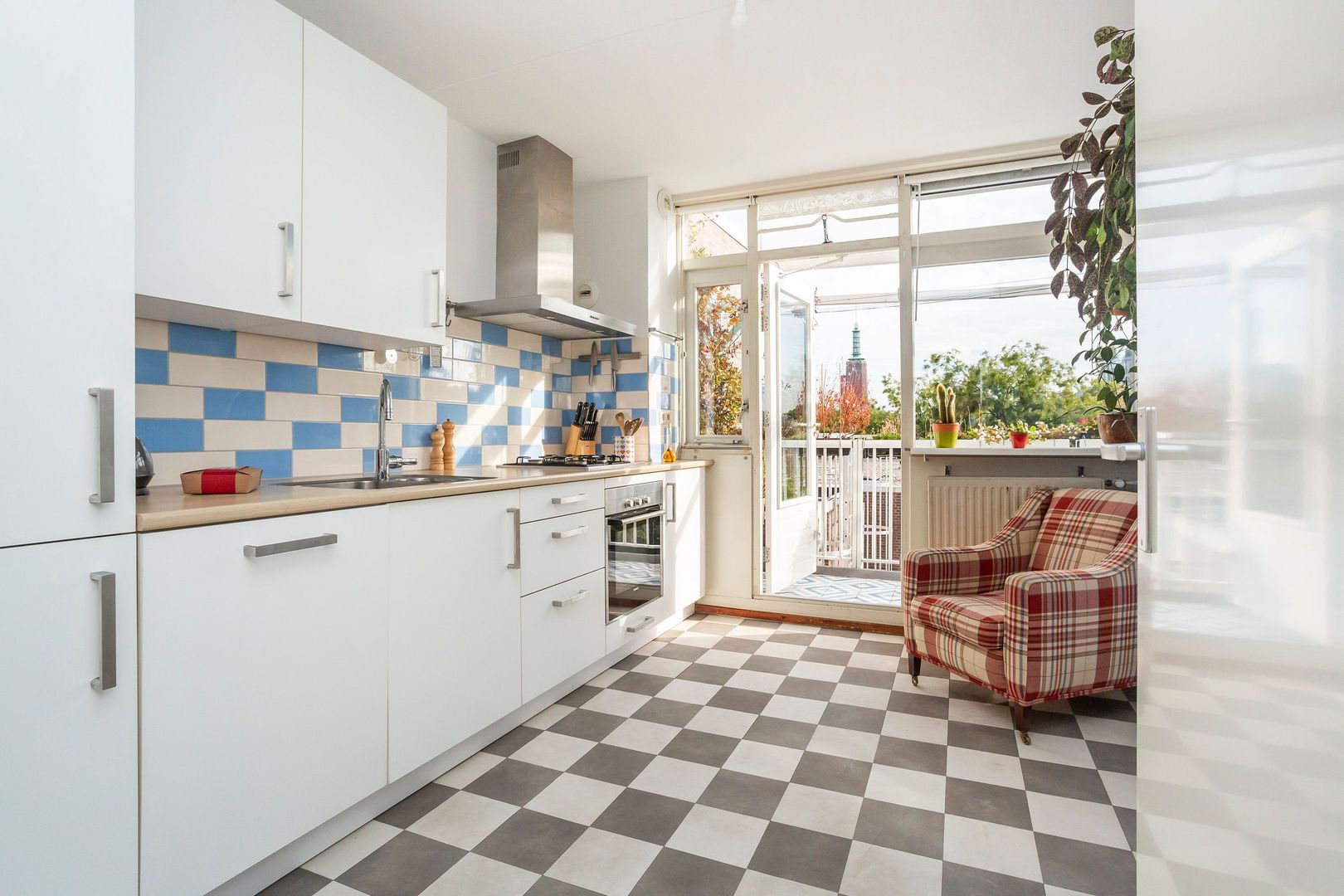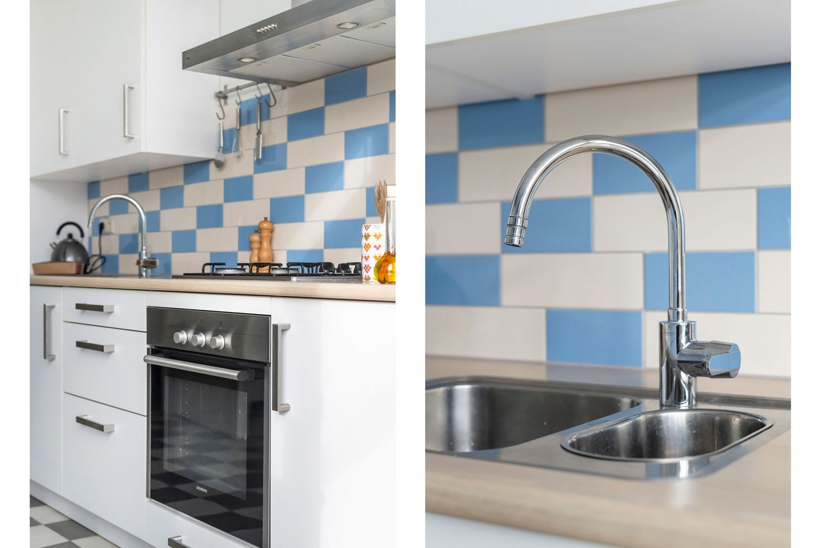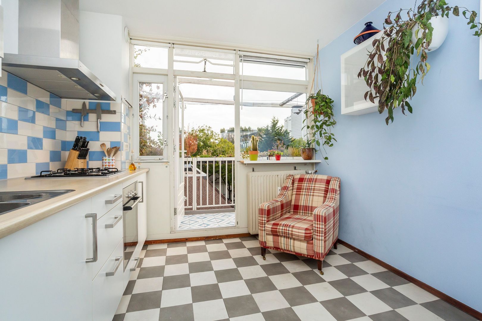 Brede ‘woon’ keuken ca. 11,5m² met in 2015 vernieuwde keuken met diverse apparatuur. Deur naar het terras.