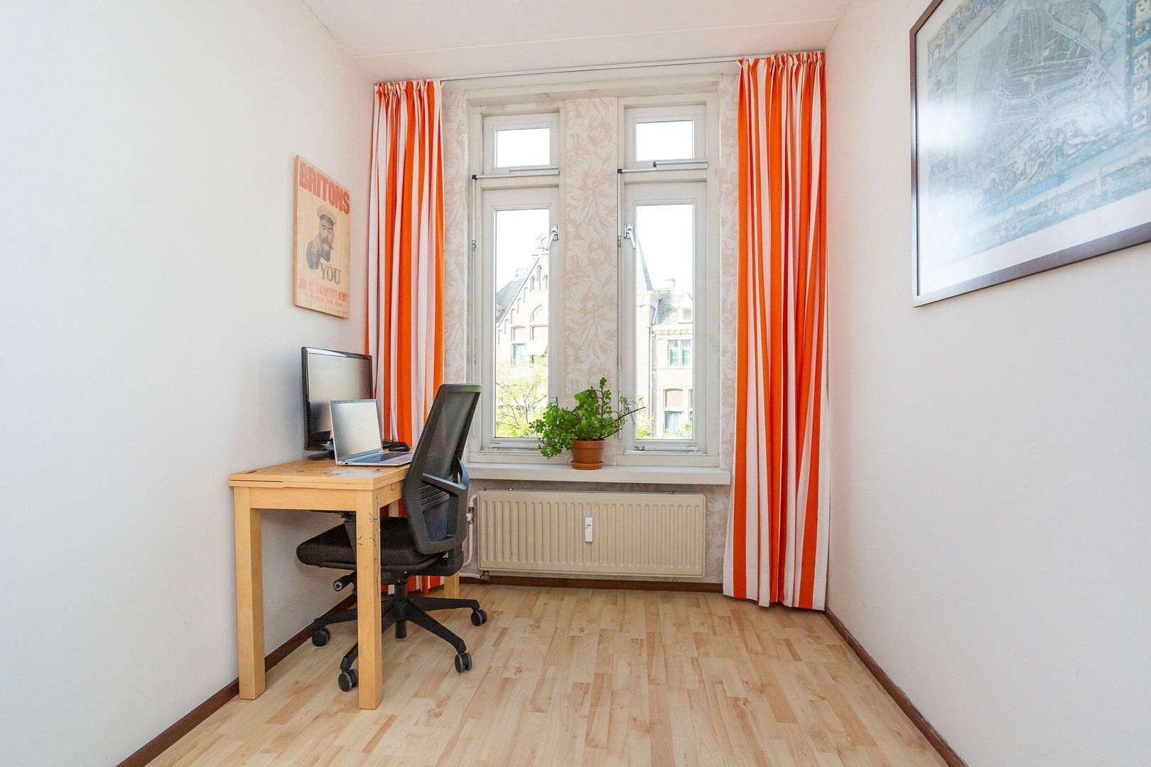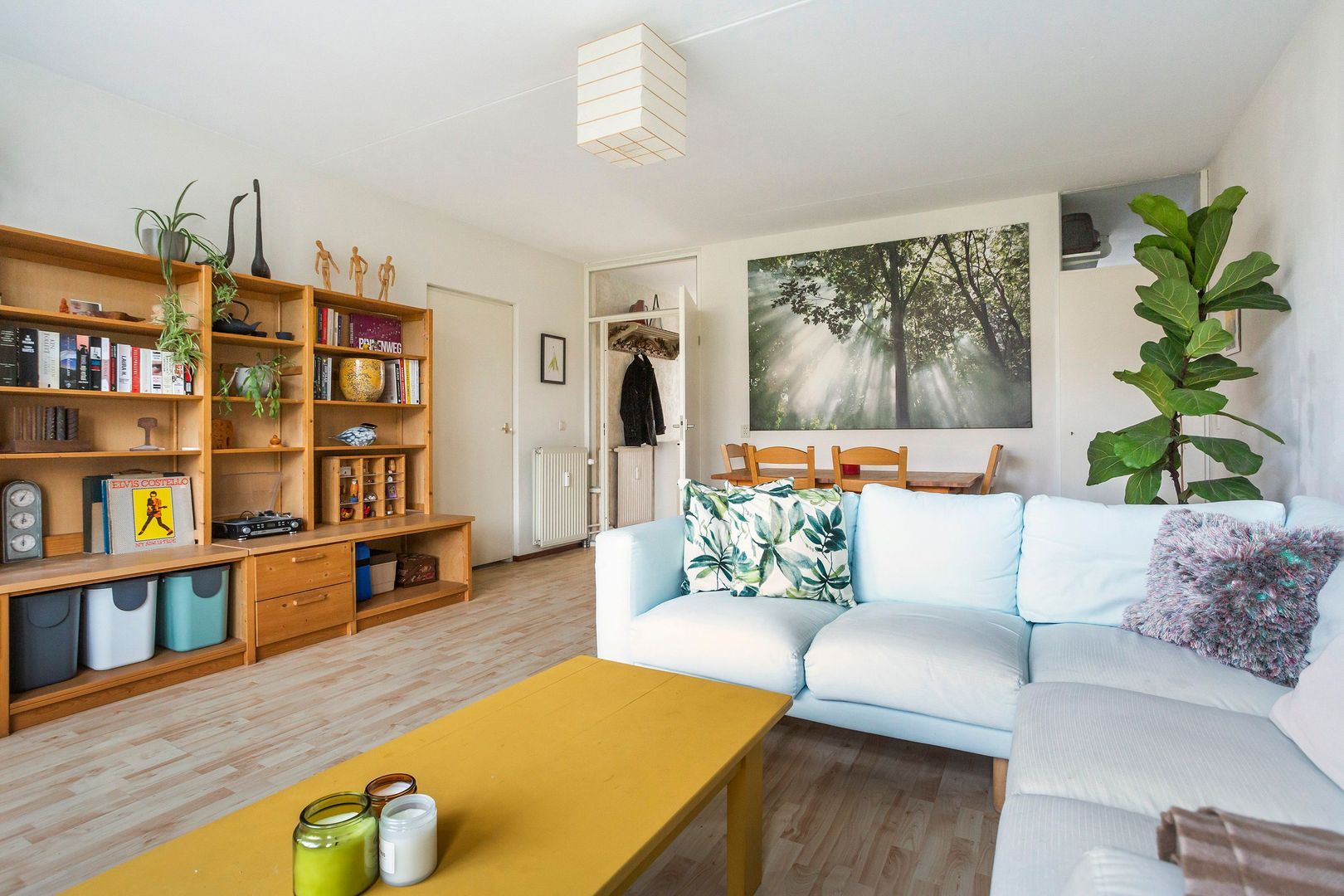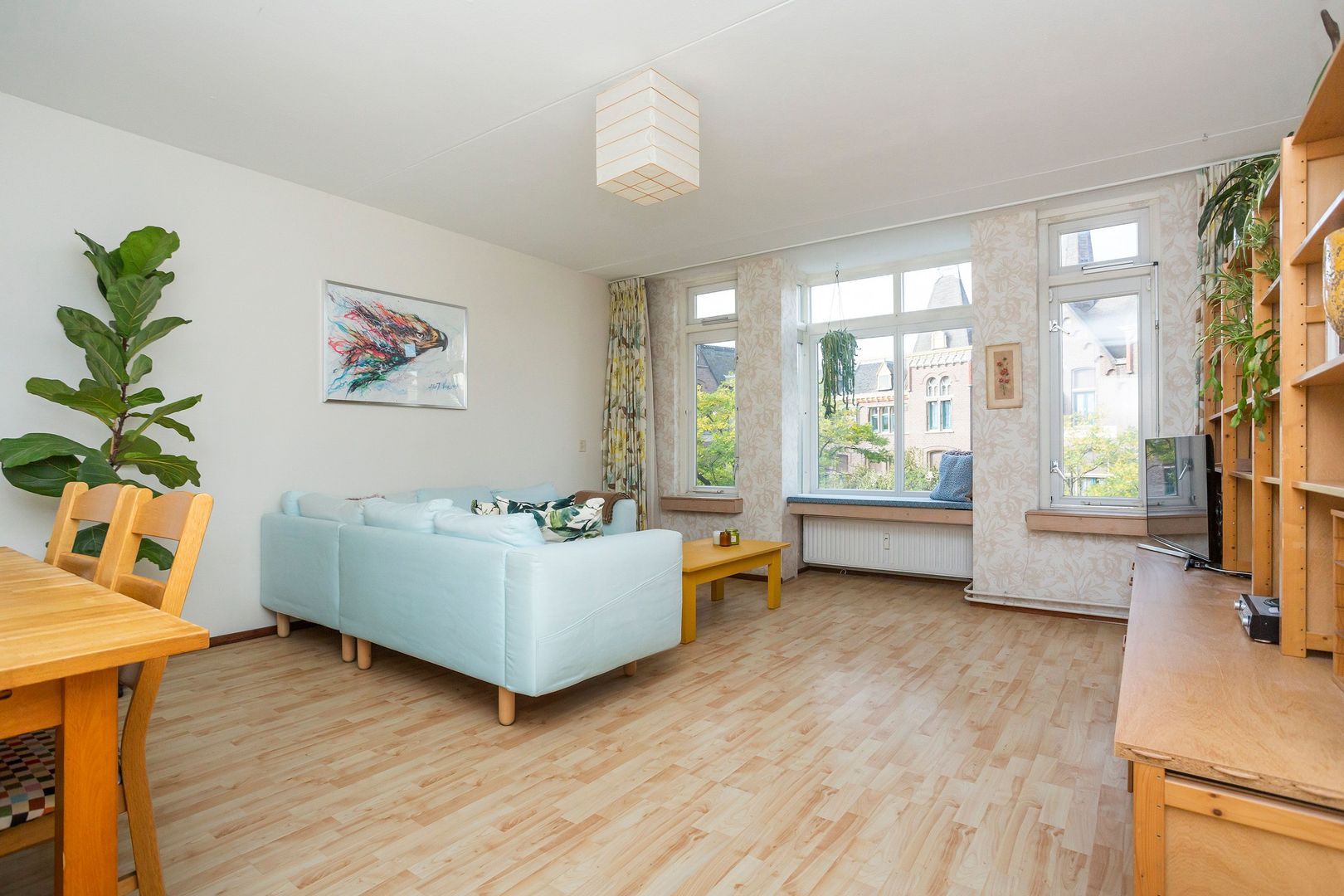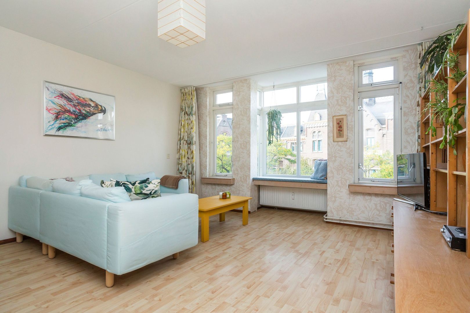 Heerlijk brede woonkamer (1) 26,5m² met fijn uitzicht over de Nieuwe Binnenweg, onder andere vanwege een charmant erkertje.