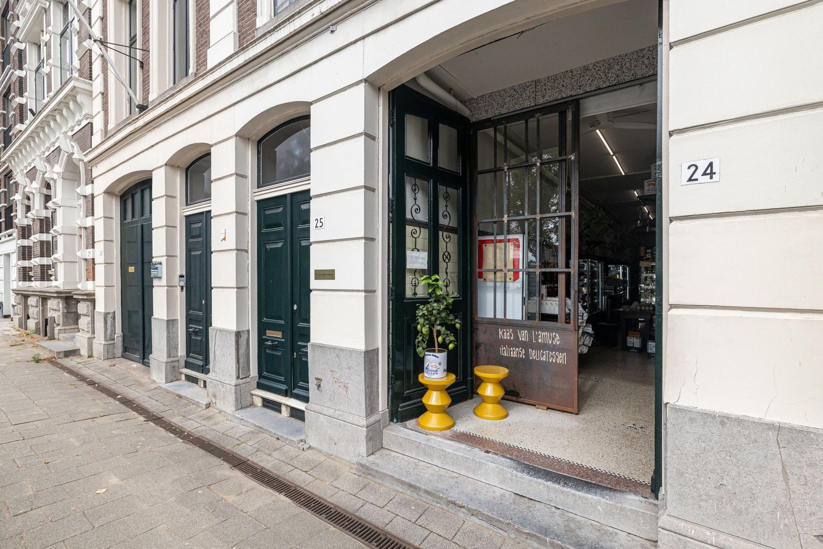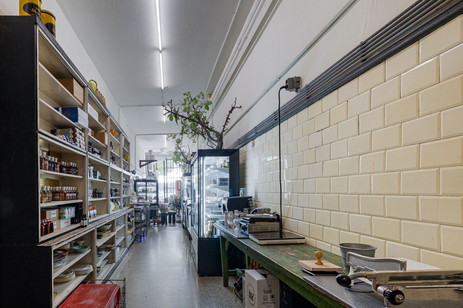 Located directly below no. 25, this spacious, deep warehouse (approx. 67.5 m²) features stylish double doors. The original terrazzo floor and wall tiles are still present. Ideal for use as a storage room, office, etc. It is currently used as a wholesaler of Italian delicacies.
