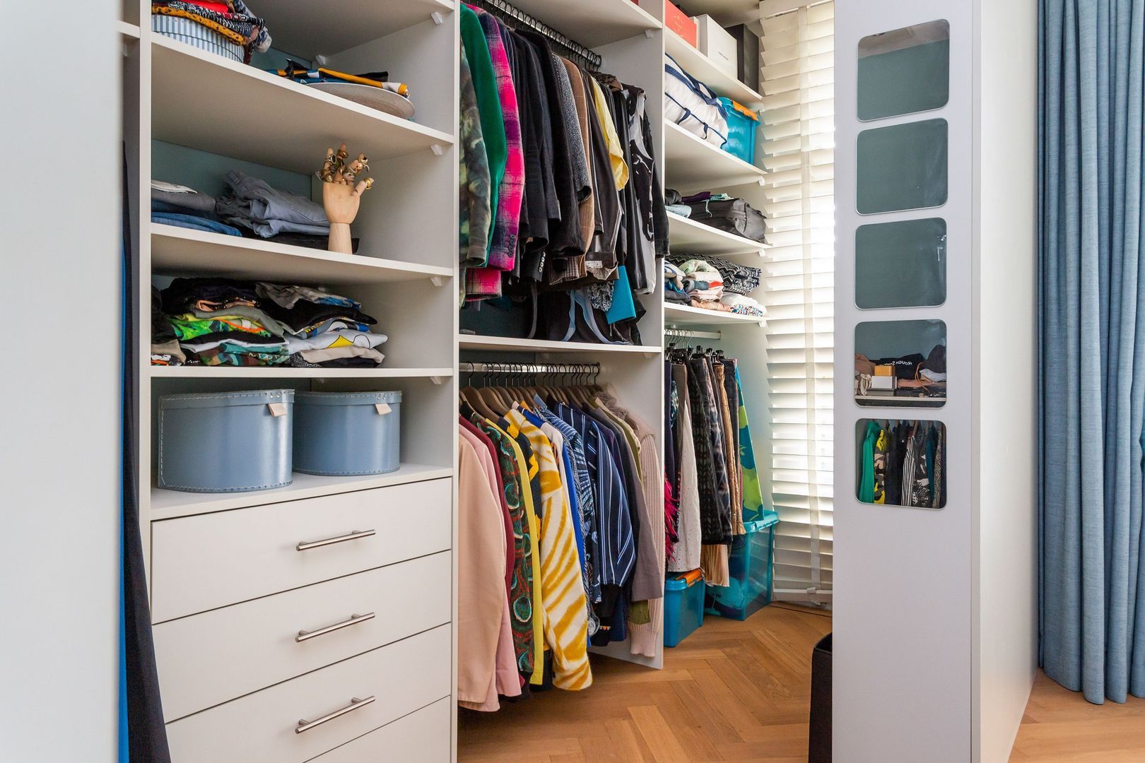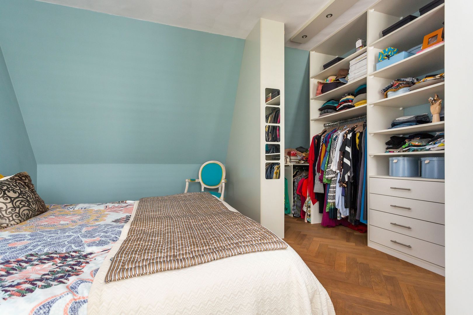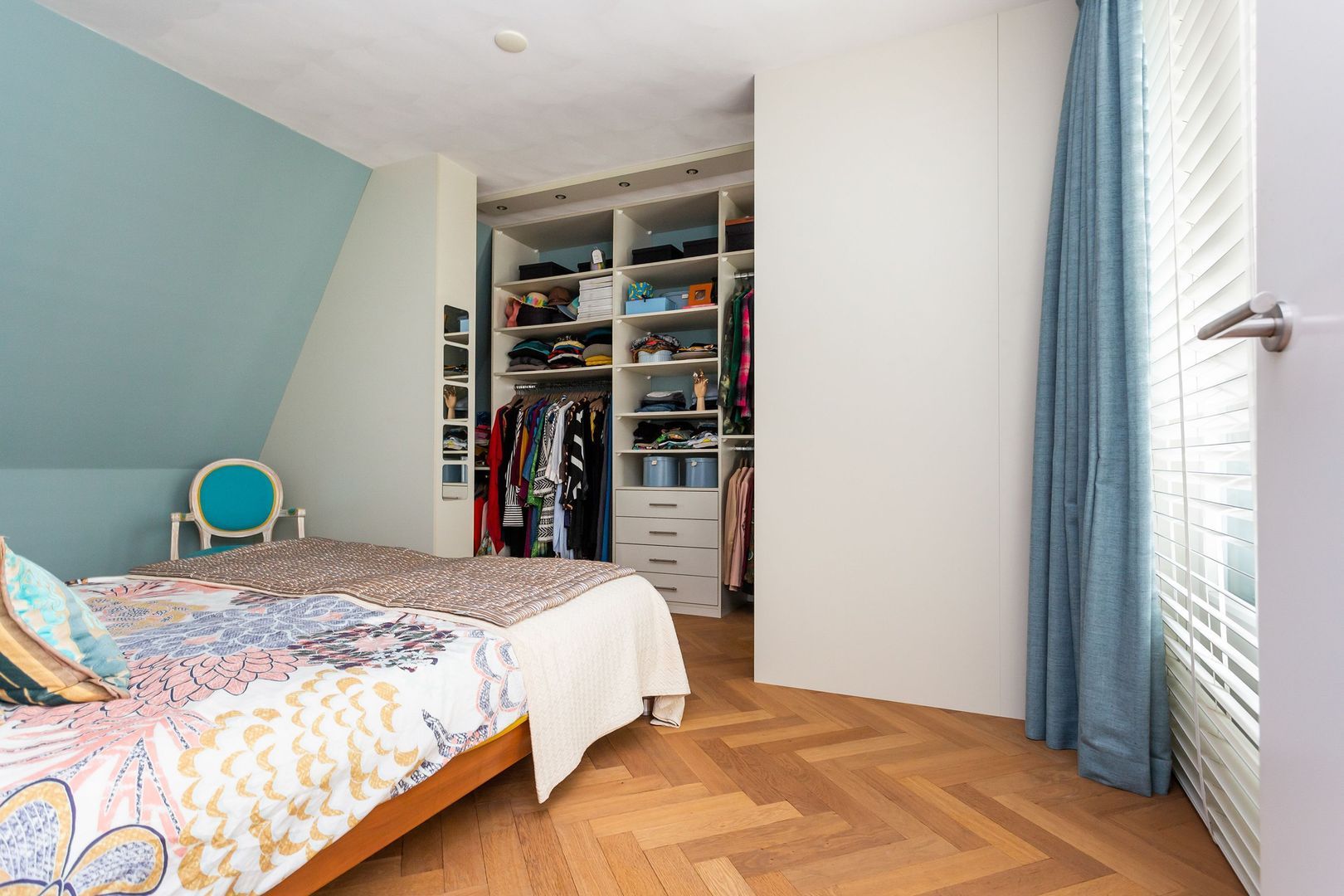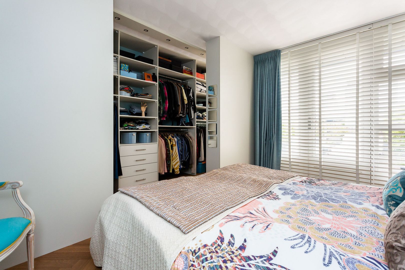 Heerlijk grote slaapkamer (3) ca. 22 m2, met glazen gevel en openslaande deuren naar het terras. Heerlijk functionele en grote inloopkast.