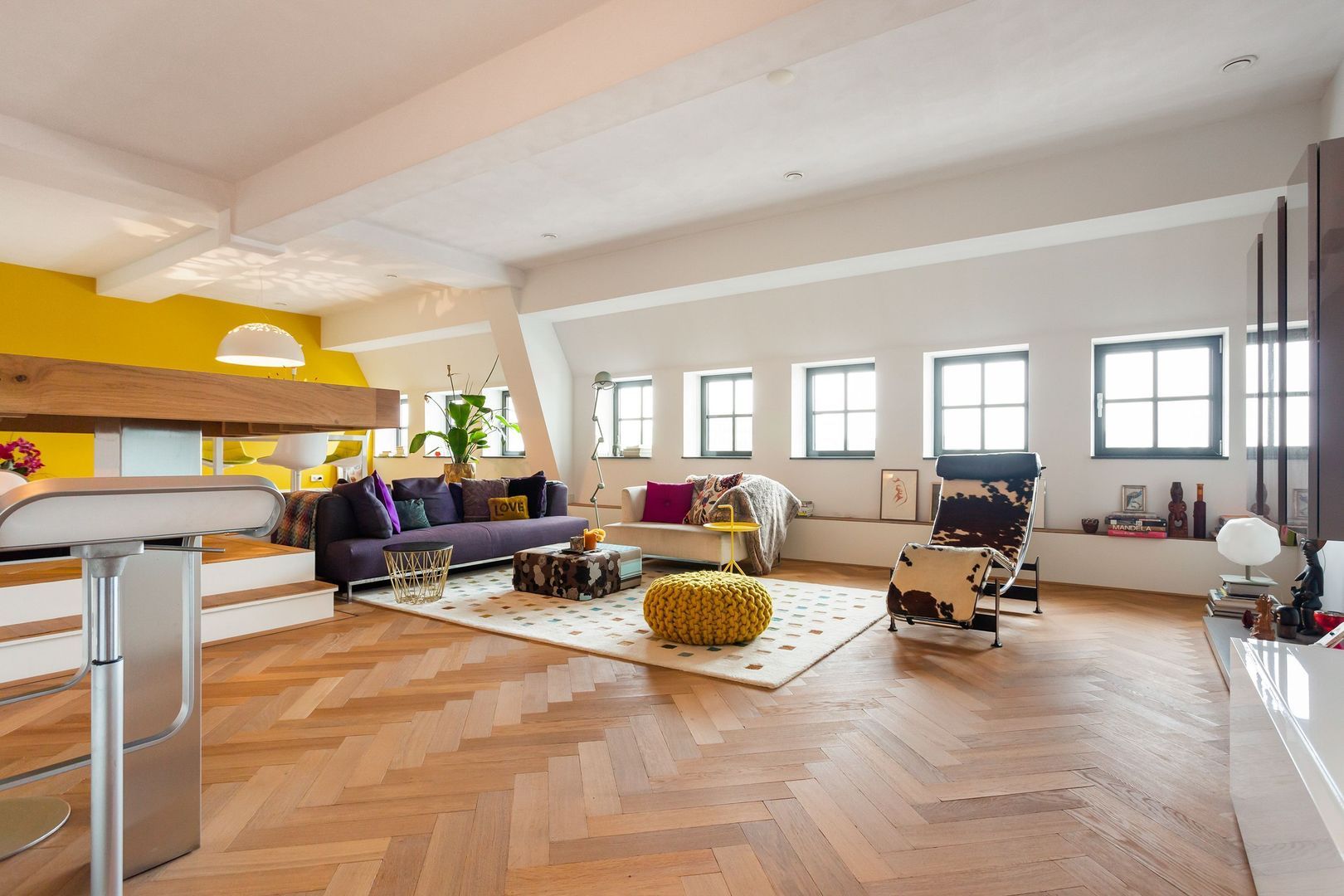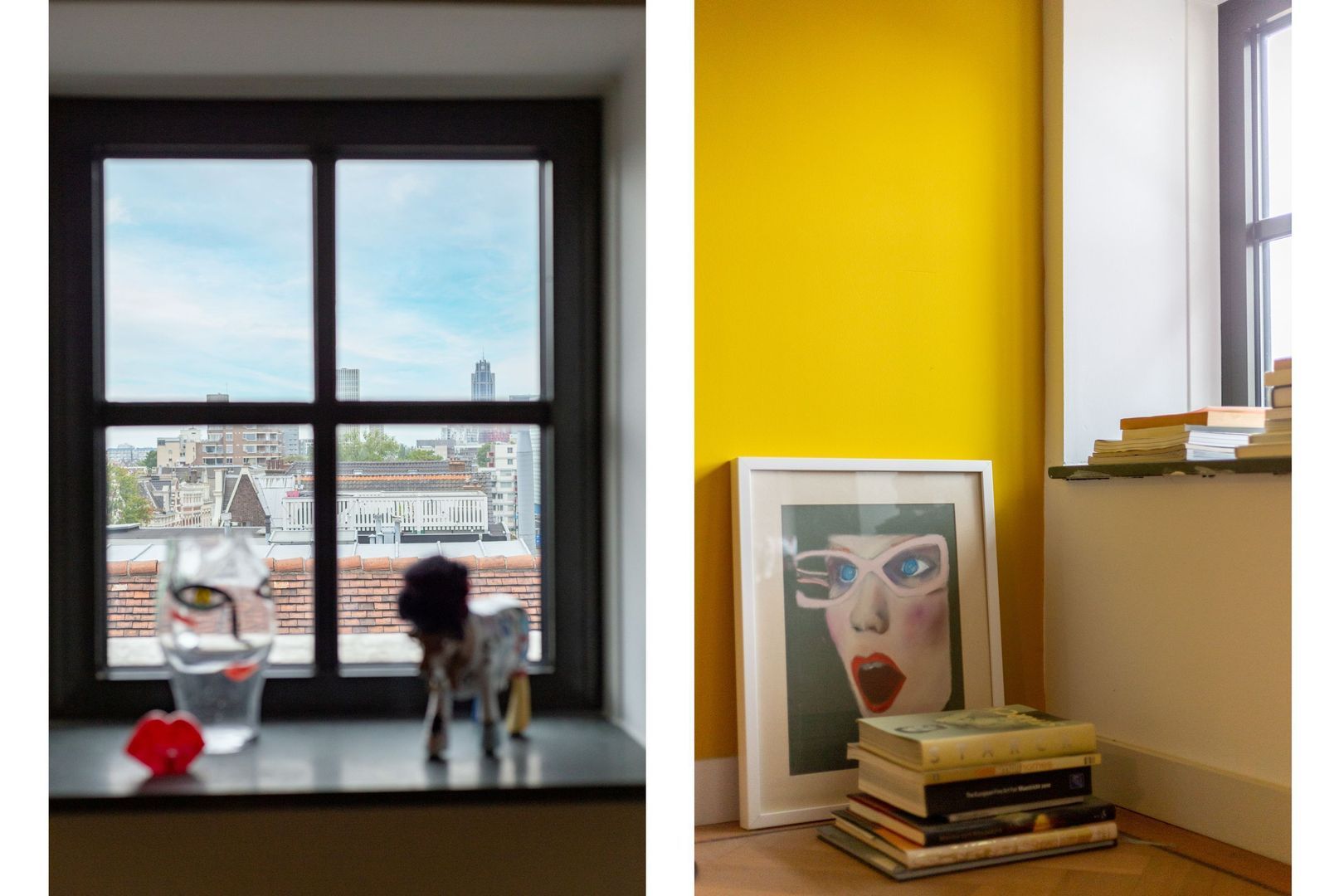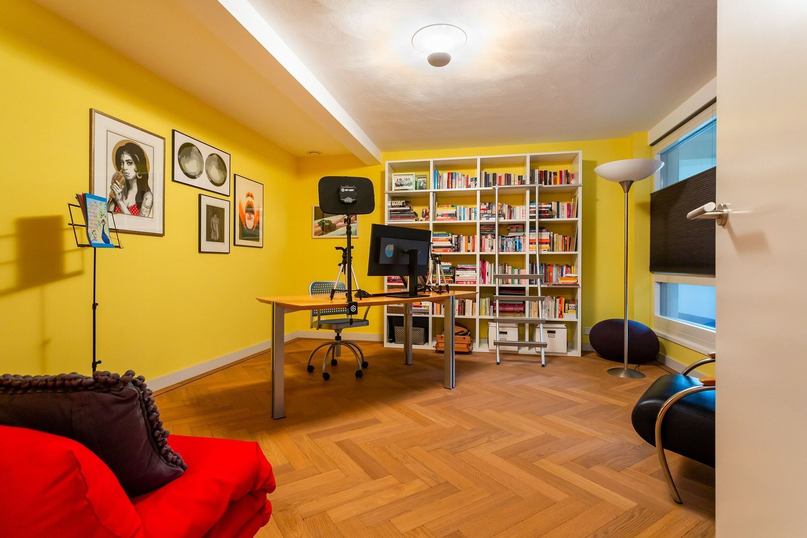 Brede, openplan living (1) ca. 70 m², met volwaardige Bulthaup keuken met alle mogelijke apparatuur. Deze ruimte is verdeeld over 2 niveau’s met zicht over een deel van het Scheepvaartkwartier richting het stadscentrum.