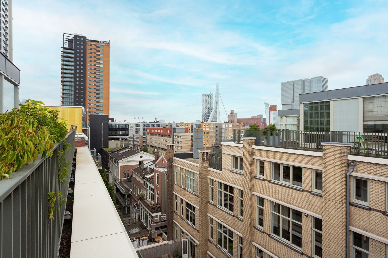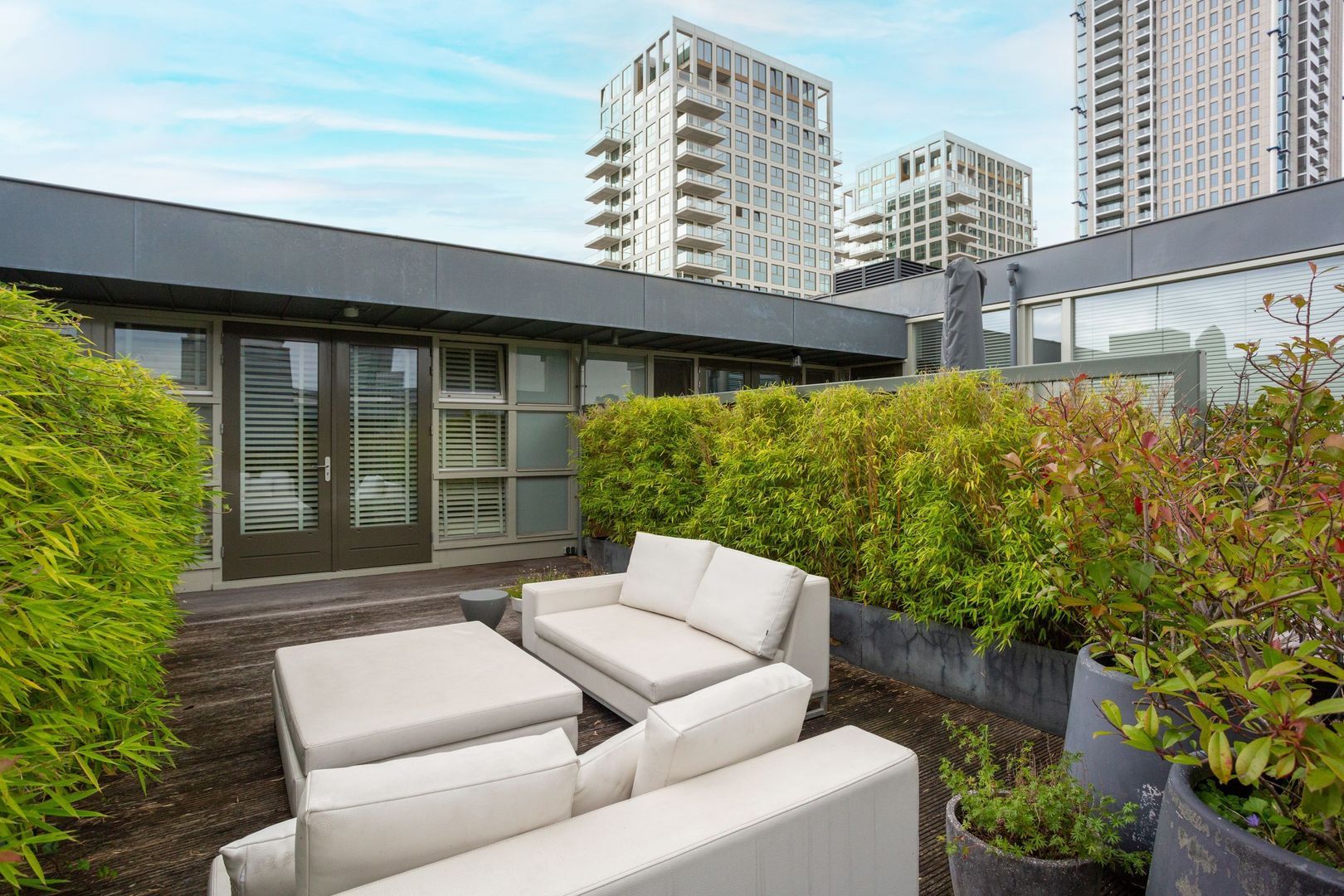 Ruimtelijk, modern en zeer stijlvol APPARTEMENT (3 kamers, ca. 145m2) met een zonzeker, zuidgelegen TERRAS (ca. 41m²), gelegen op de 5e en 6e verdieping van het Atlantic huis, een fraai rijksmonument in het Scheepvaartkwartier, uit het begin van de vorige eeuw (1930).