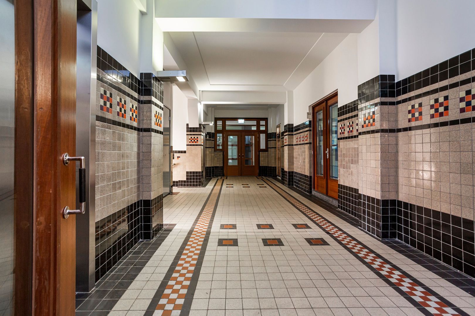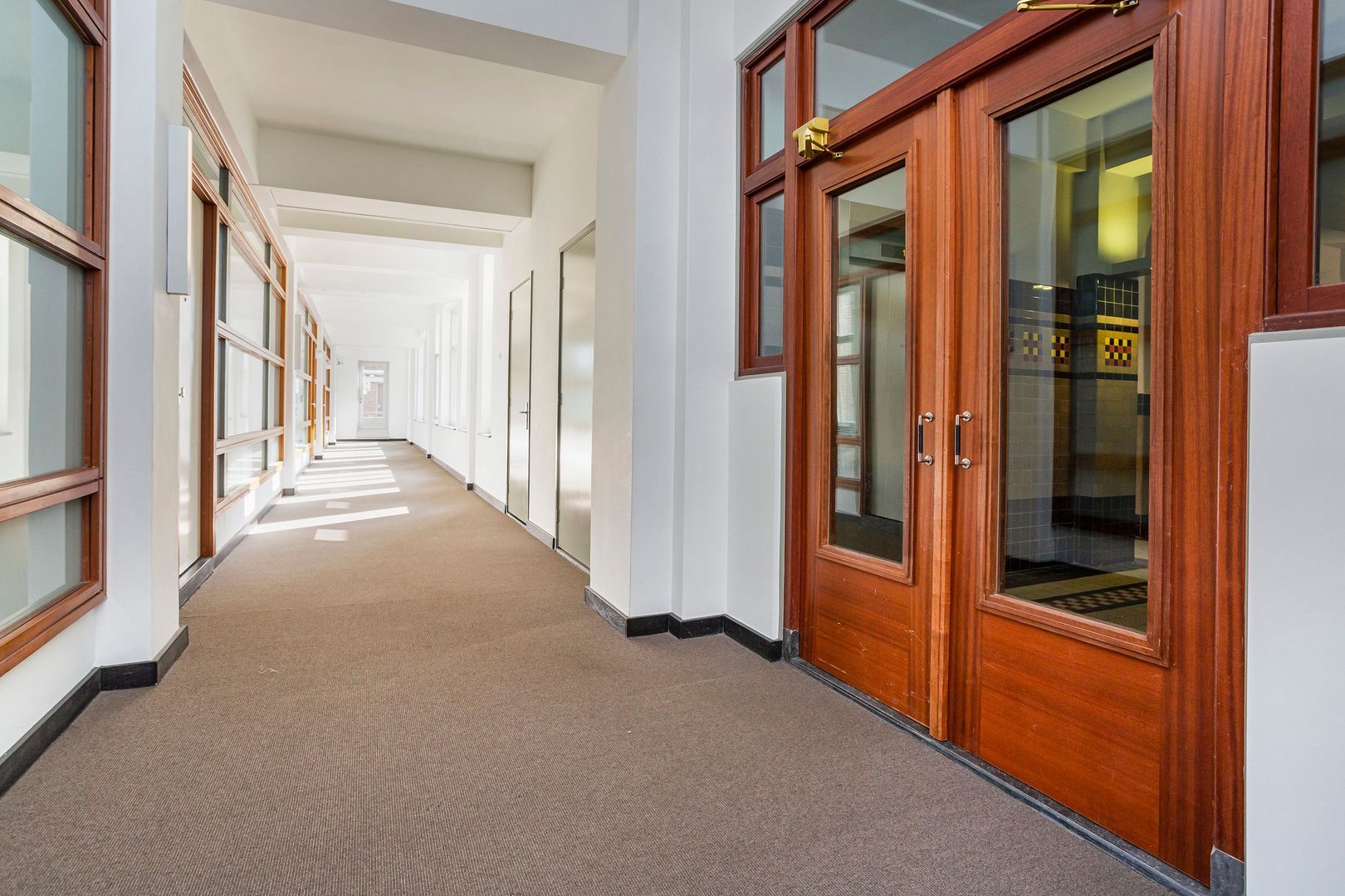 Toegang tot het appartement wordt verkregen door een gemeenschappelijke voordeur, die toegang geeft tot een centrale hal. Hier bevinden zich de brievenbussen en intercom. De deur, die toegang geeft tot het trappenhuis, kan net als de voordeur vanuit het appartement via intercom worden geopend. Er is een monumentaal trappenhuis in art deco stijl, die aan beide zijden is voorzien van een lift. Vanuit de centrale hal is toegang tot de inpandige garage. De centrale hal beschikt over een prachtige mozaïekvloer en glas-en-lood-ramen, die verwijzen naar ‘de vroegere tijden’. Het parkeersysteem is via de Houtlaan bereikbaar.
