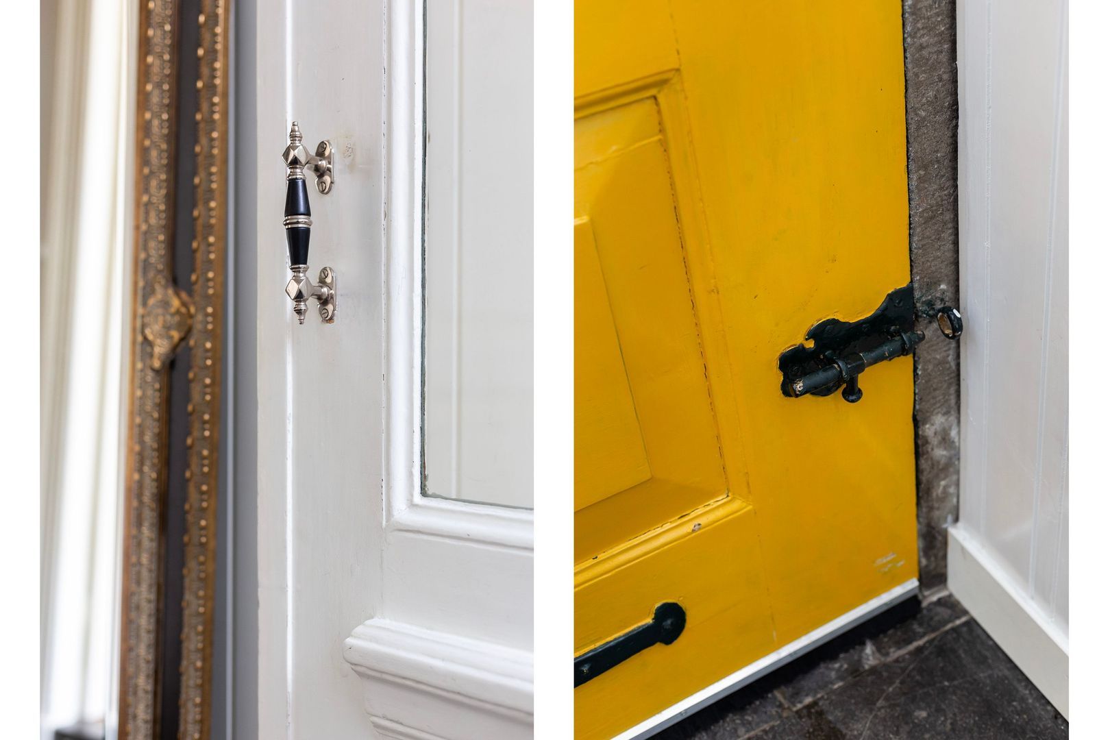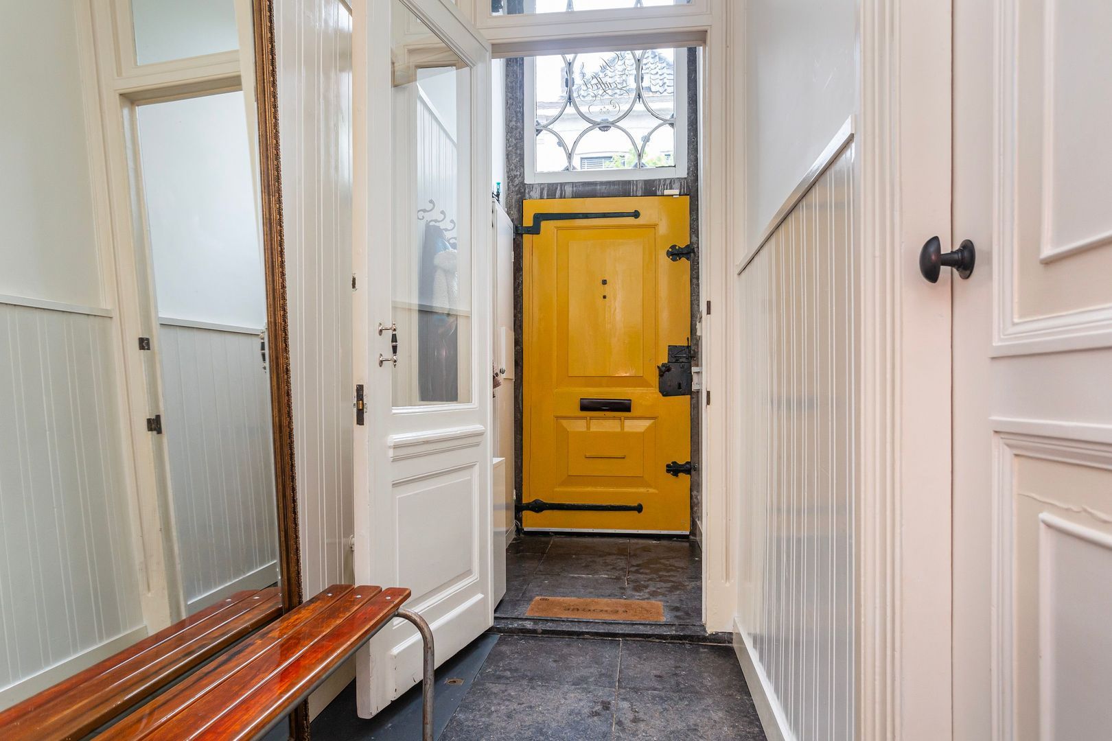 Entree achter prachtige houten deur (met schitterend glaswerk erboven) naar