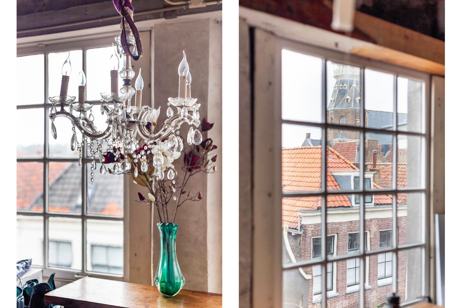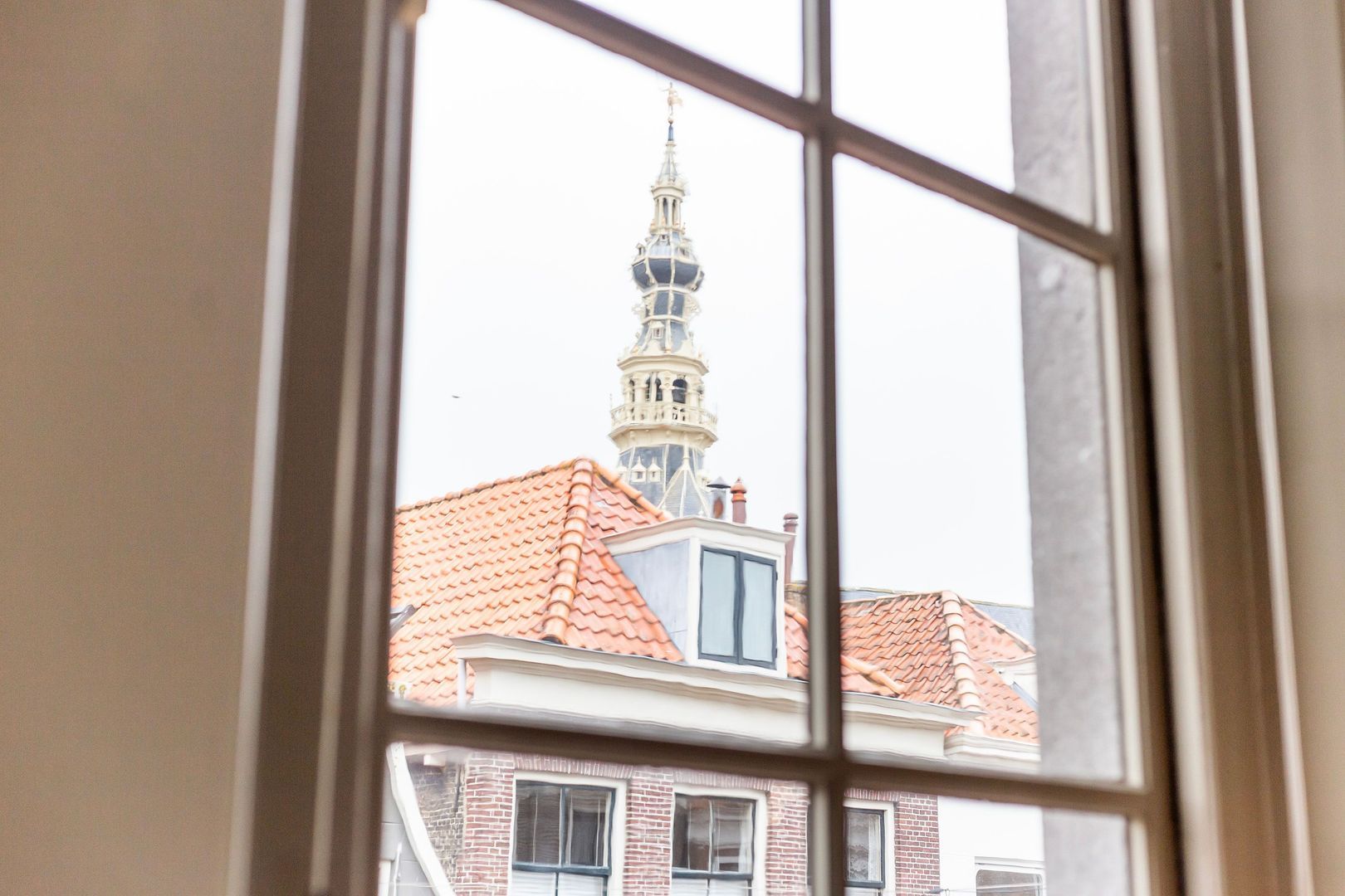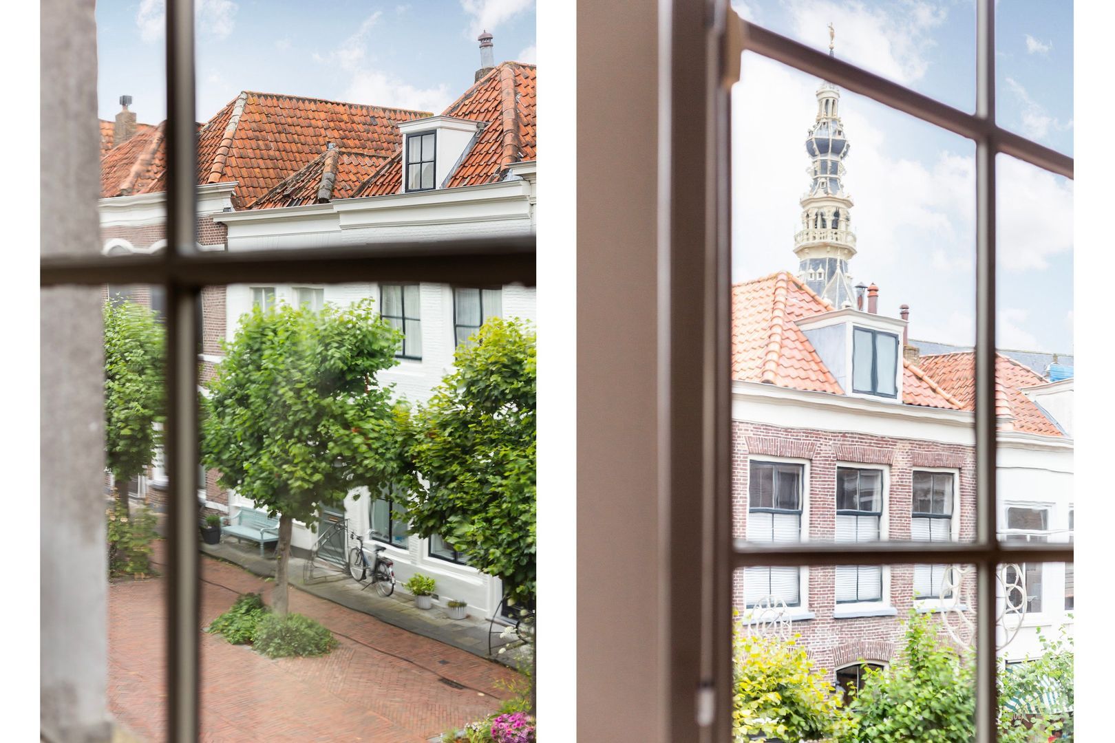 constructie en een fijn zicht op/over historische huizen en daken aan de overzijde