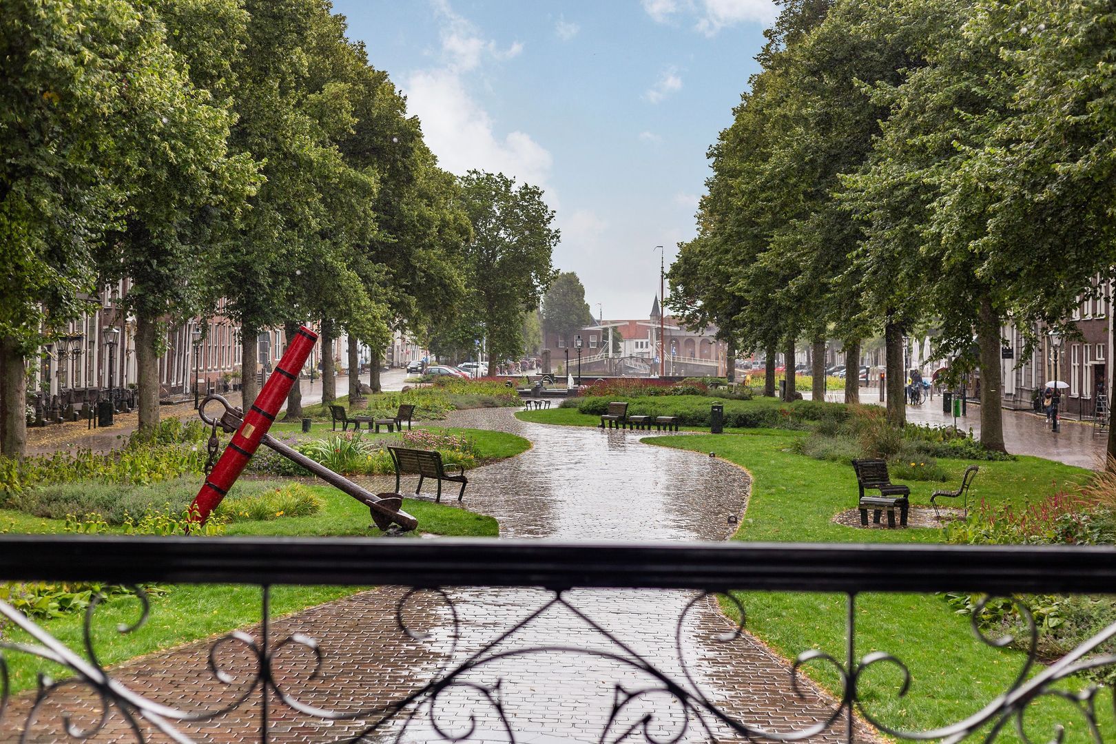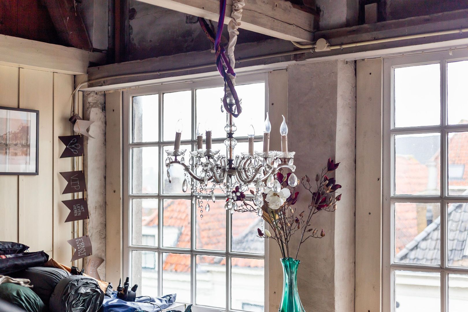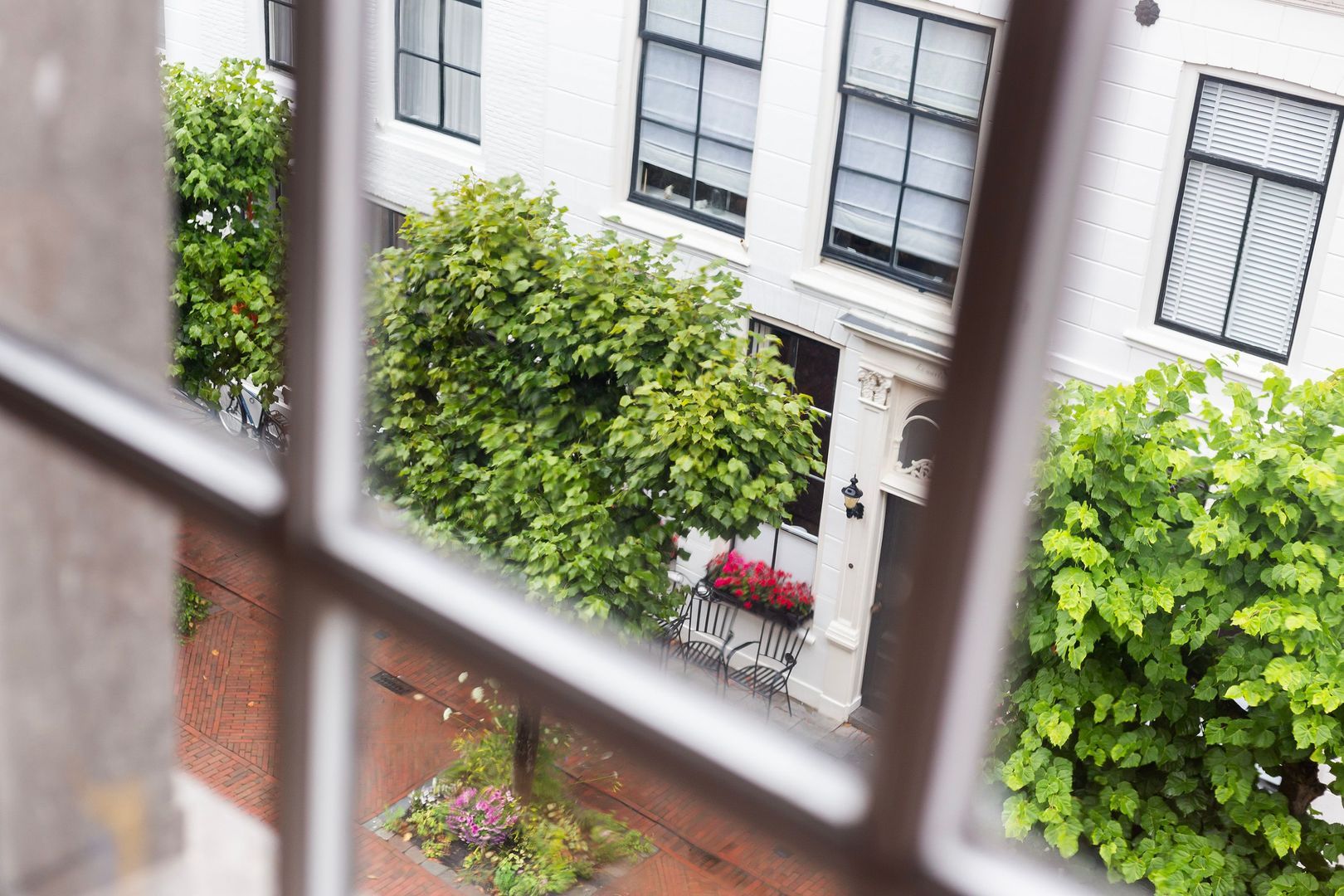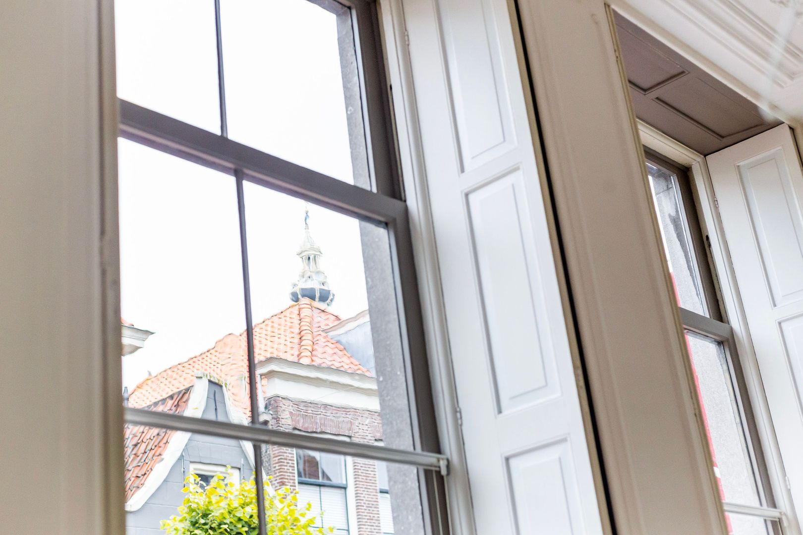 constructie en een fijn zicht op/over historische huizen en daken aan de overzijde