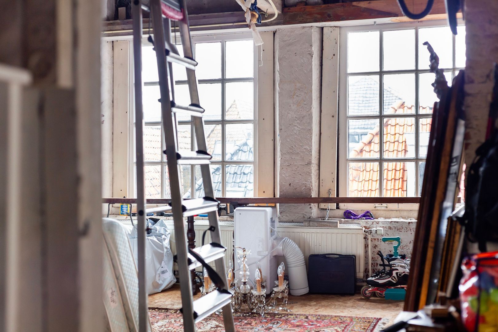Geweldige ‘gelagkamer’ (1) (3,70m hoog) ca. 25m² met 3 enorme raampartijen (mooi