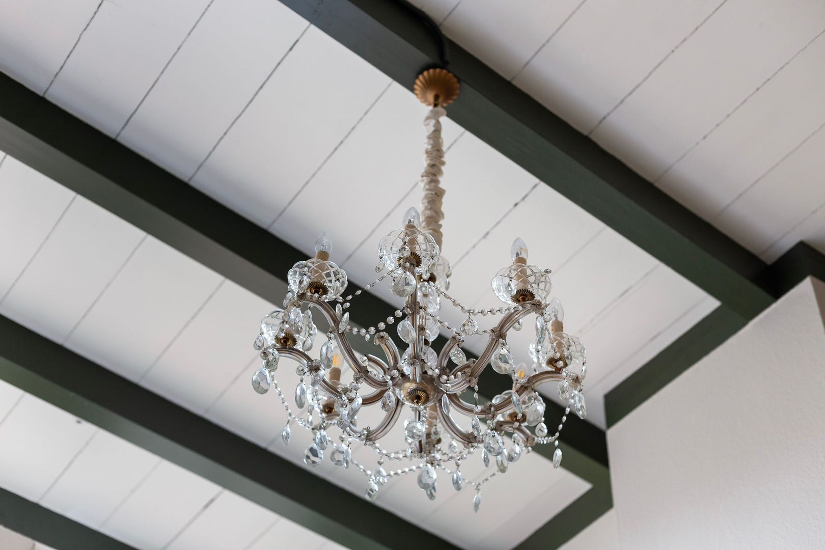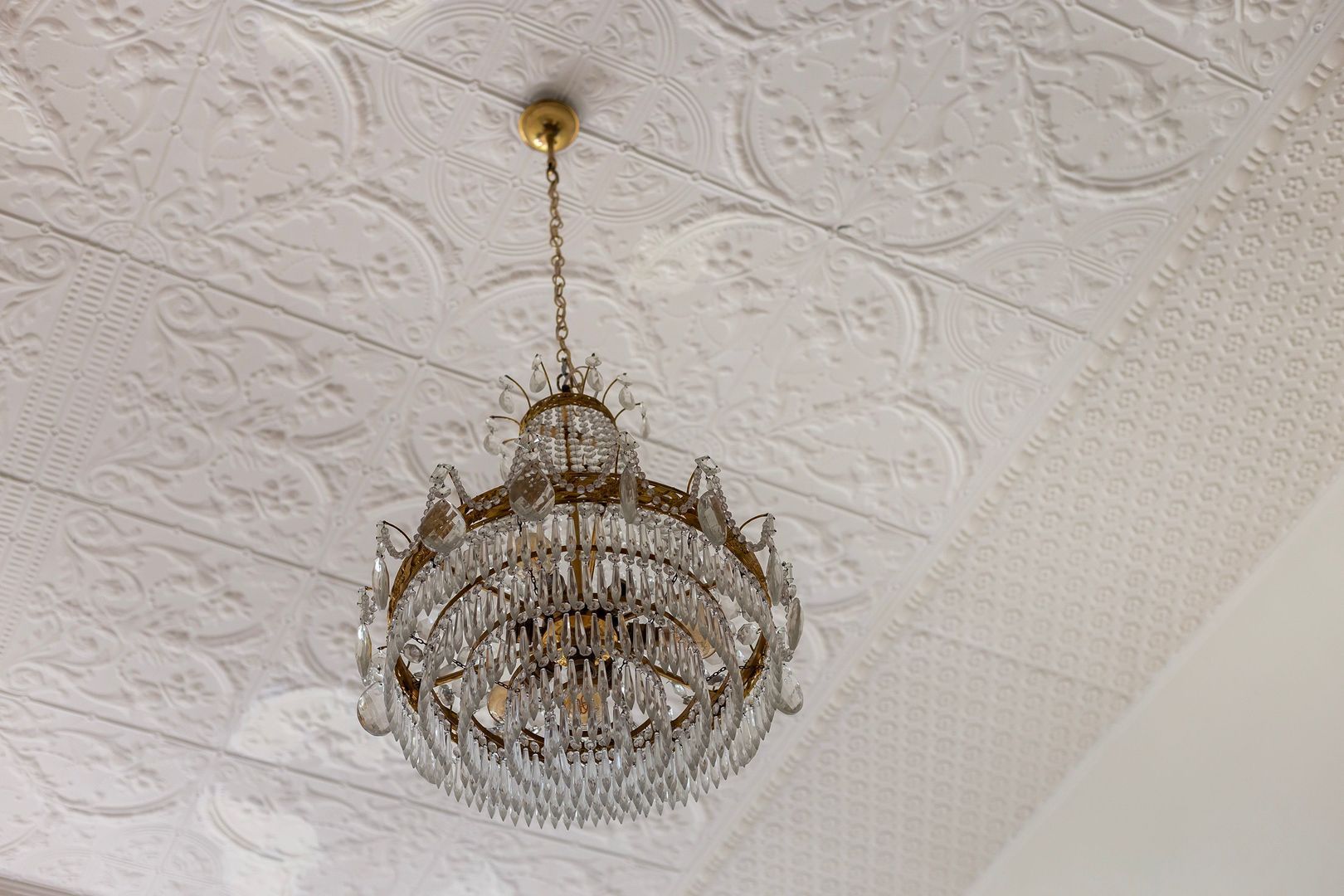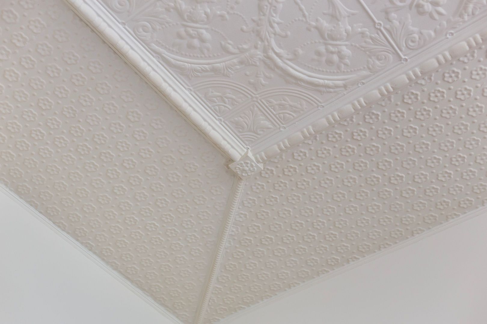 Er is veel licht, een indrukwekkend geornamenteerd tinnen (!!!) plafond, een moderne