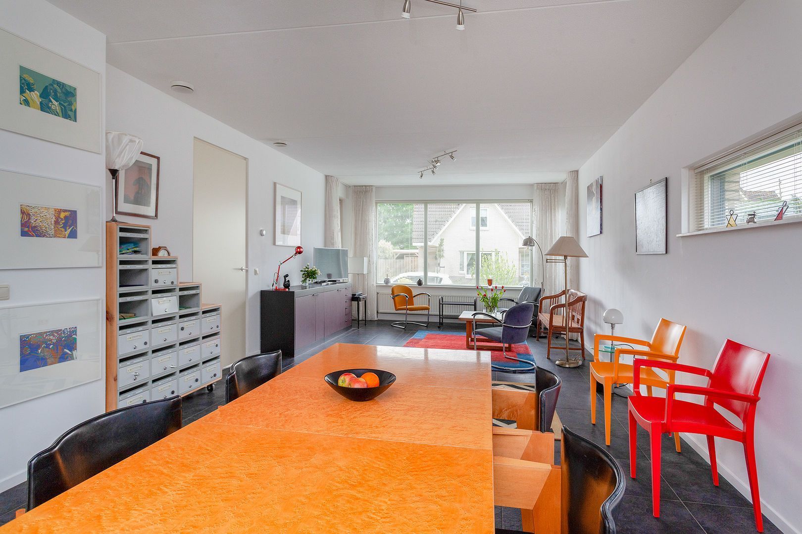 Living (1 en 2 ) ca. 60 m2 bestaande uit zitgedeelte aan de voorzijde, in het midden het eetgedeelte met openslaande deuren naar de tuin, openkeuken met moderne opstelling en inbouwapparatuur, doorloop naar studeer/tv-kamer.