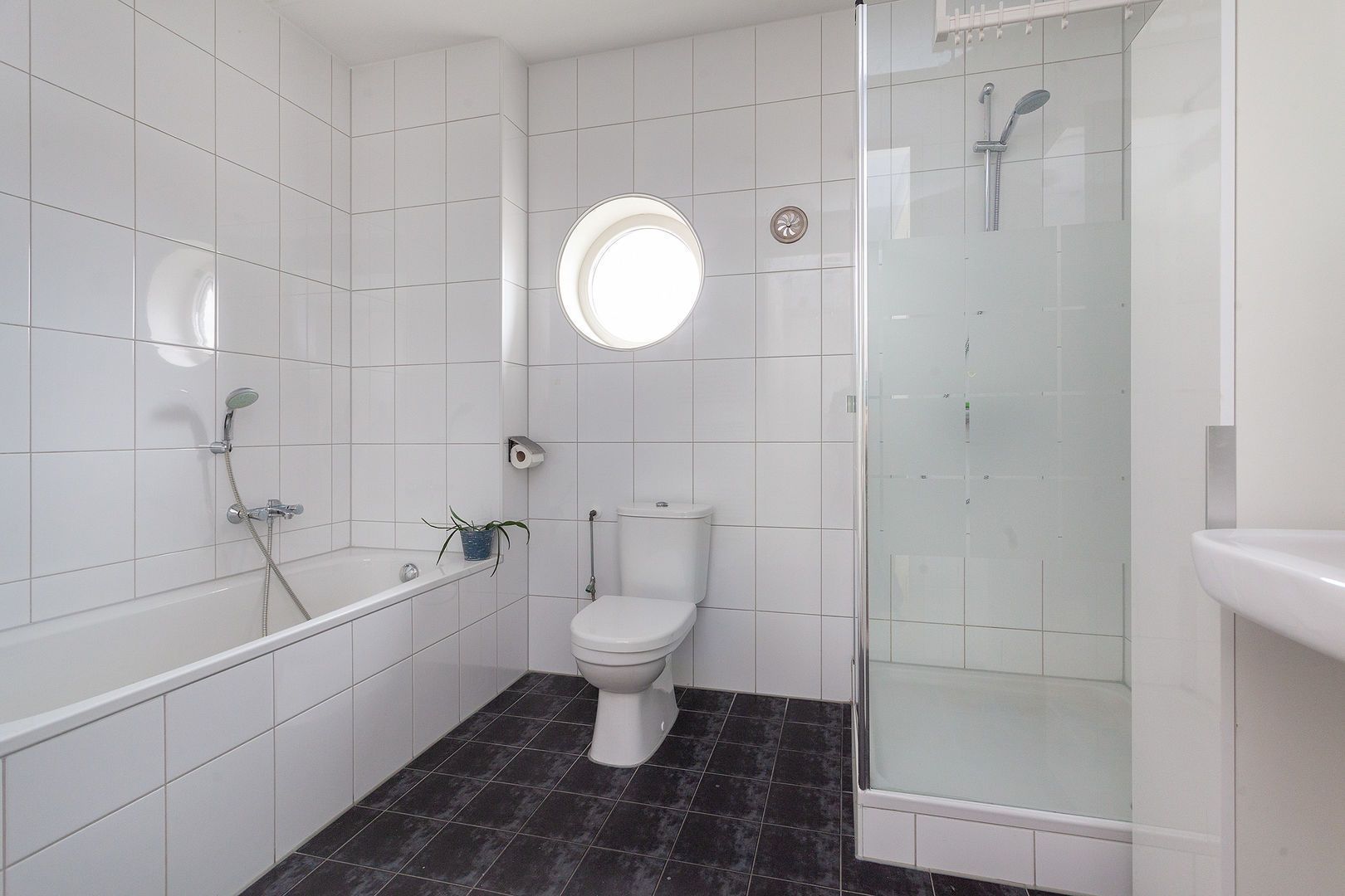 Moderne badkamer voorzien van ligbad, douche, wastafel en 2e toilet.