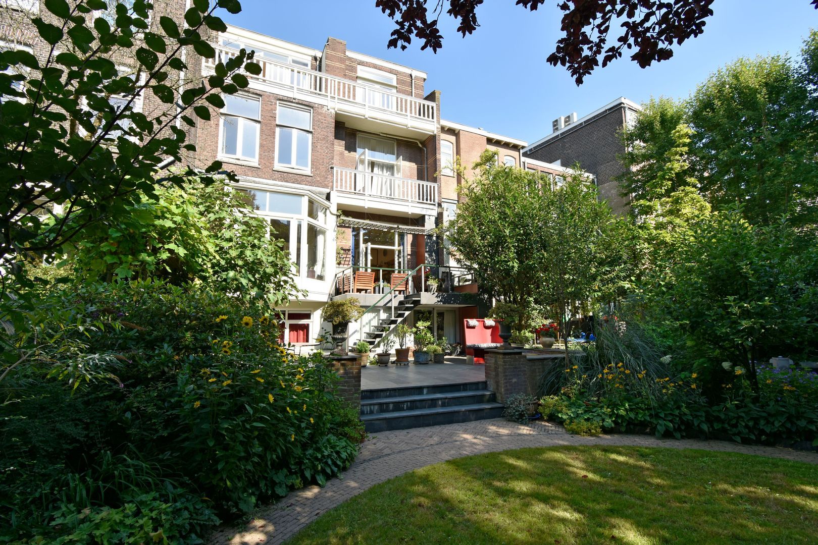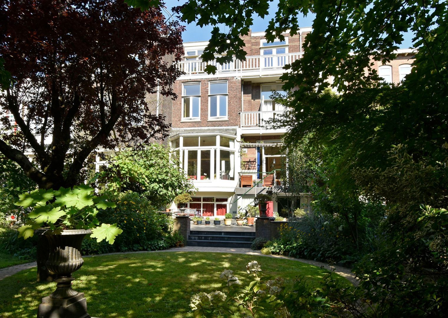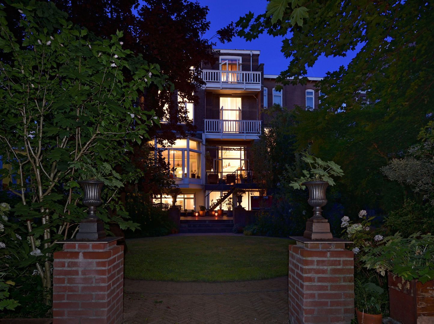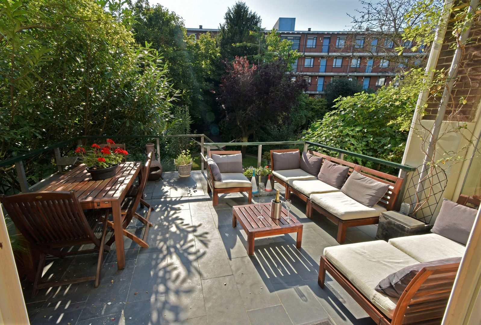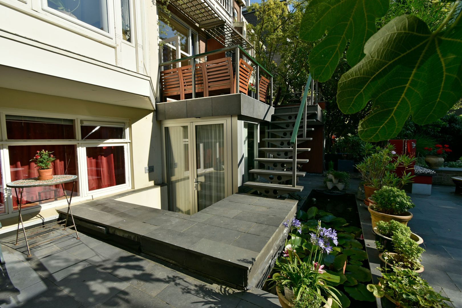 De 30 meter diepe en 9 meter brede gevarieerde tuin voelt als een stadsoase! Er zijn verschillende terrassen in/uit de zon, stilte in de stad, veel verschillende vogels, groen met voldoende gras, druivenranken, fruitbomen en een zeer vruchtbare vijgenboom. Een prachtig tuinhuisje met overdekt zitje en bergruimte en plantenwerkplek maakt het geheel compleet.