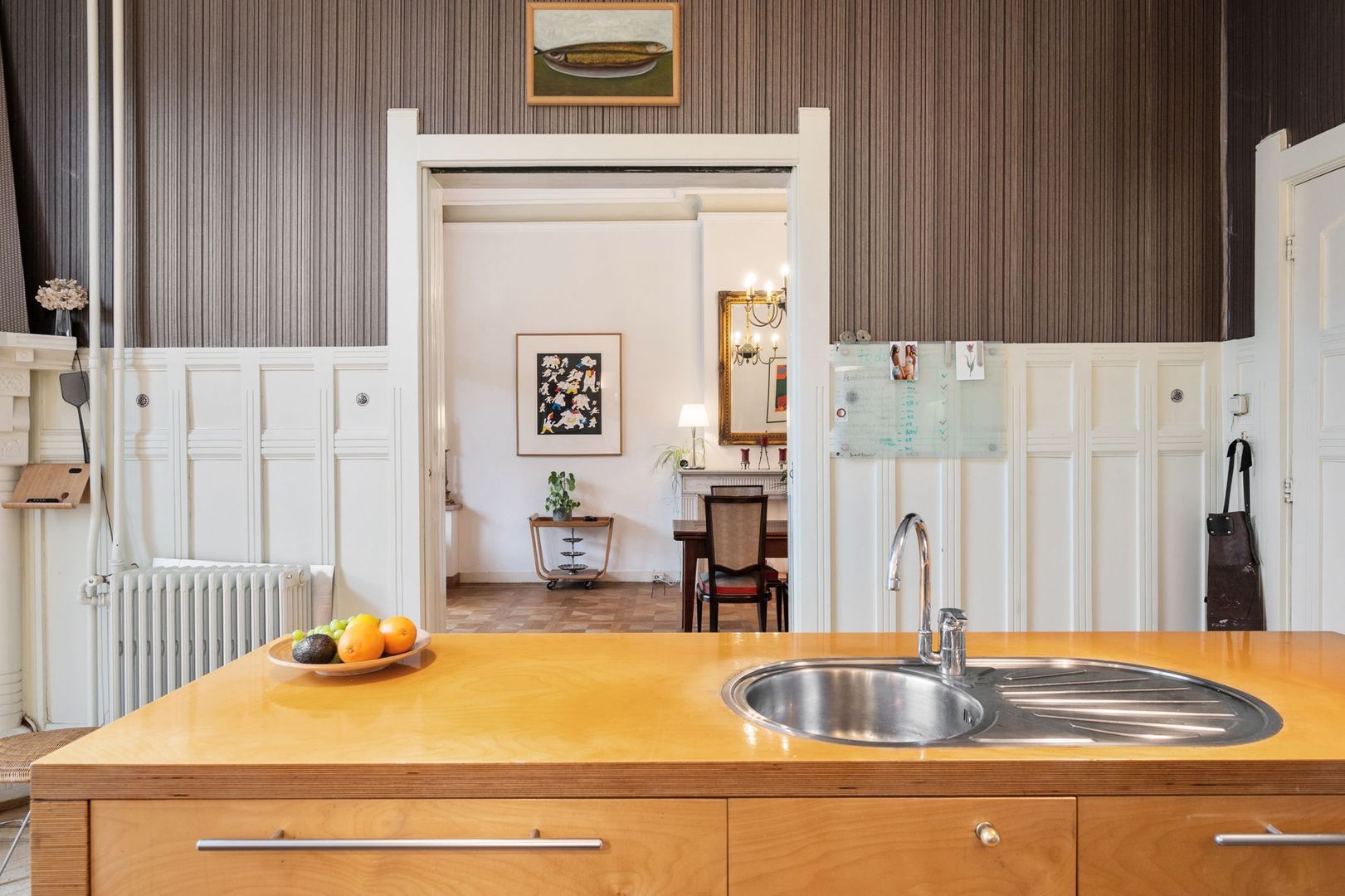 Midden in de stad èn gelegen aan een rustige, veilige ventweg ligt dit royale en zeer brede HERENHUIS  (9m en 511m² woonoppervlakte), met zonnige grote en gevarieerde  ACHTERTUIN (30m!), enorme kamers en suite met serre, leefkeuken en wel 10 slaapkamers, 3 keukens, 3 badkamers en heel veel bergruimte.