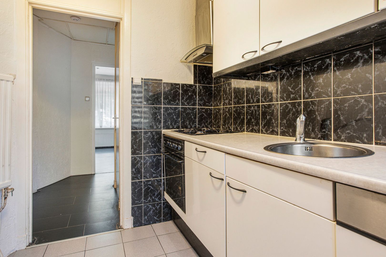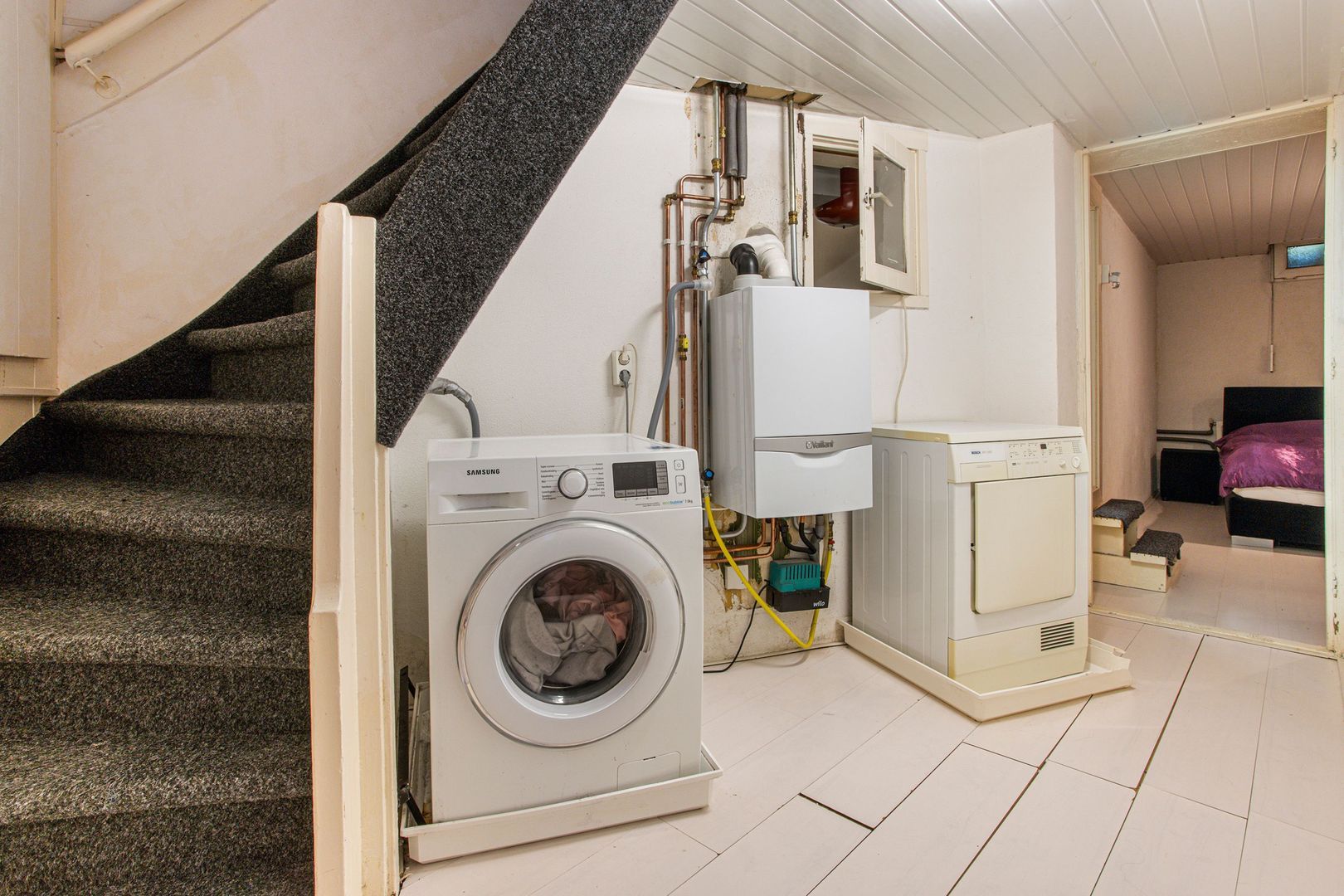 Gang/bijkeuken met wasmachineaansluiting en cv.