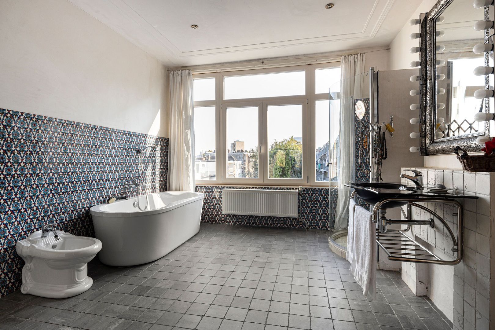 Zeer riante (oriëntaals ogende) badkamer met ligbad, douche, wastafel en bidet.