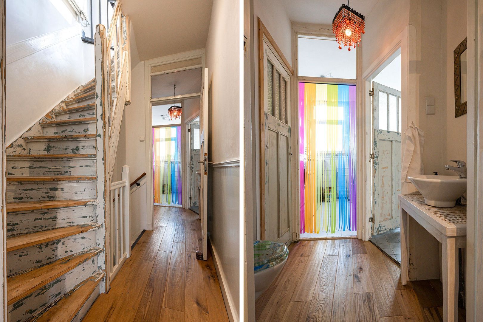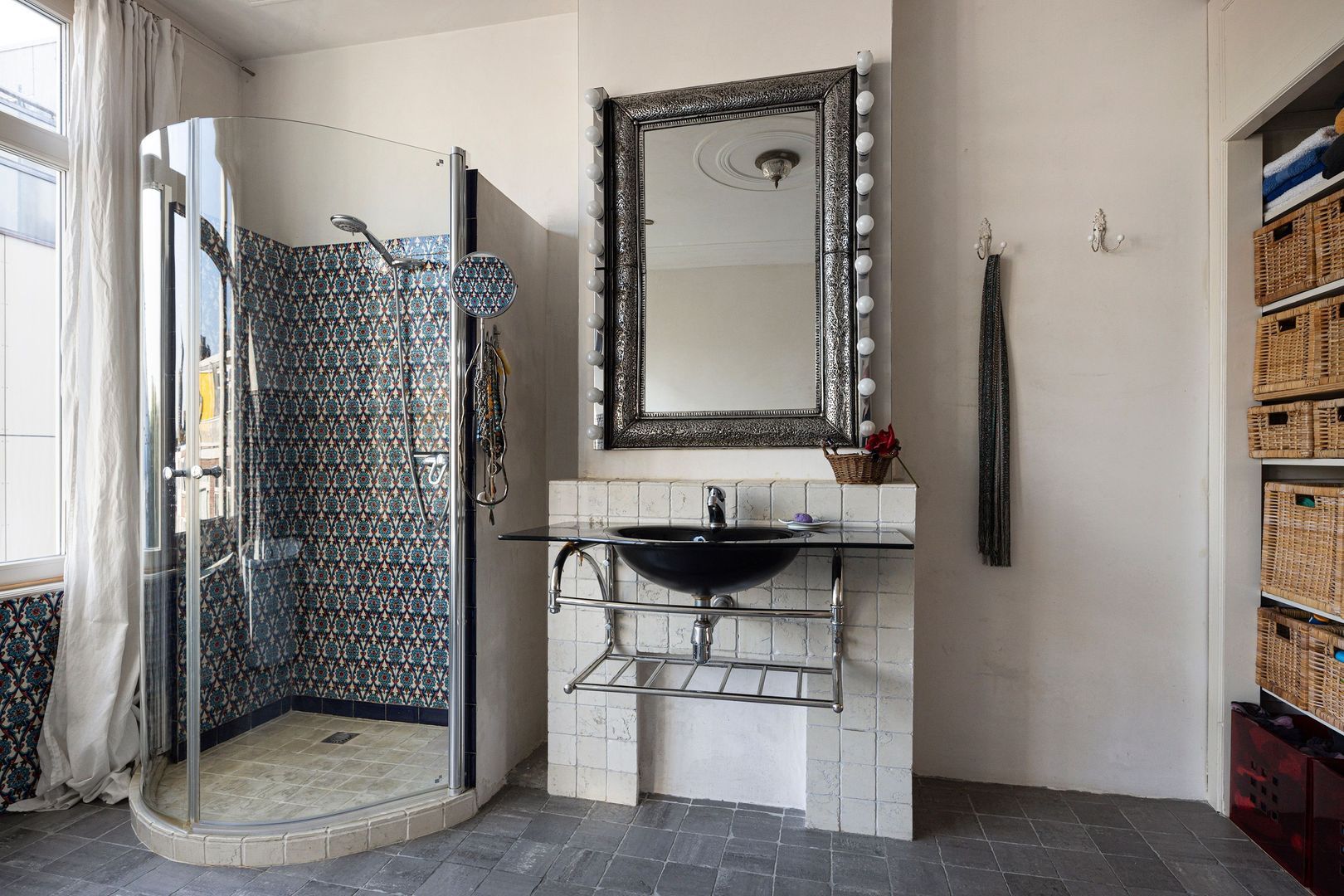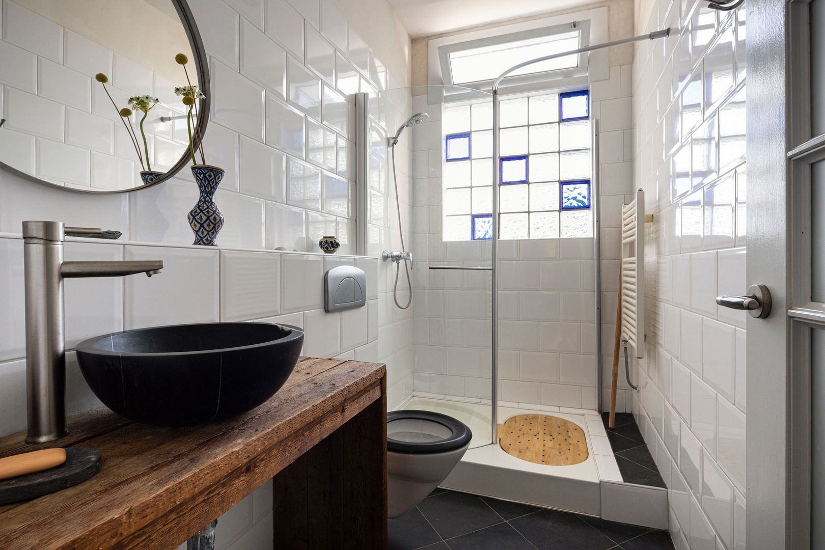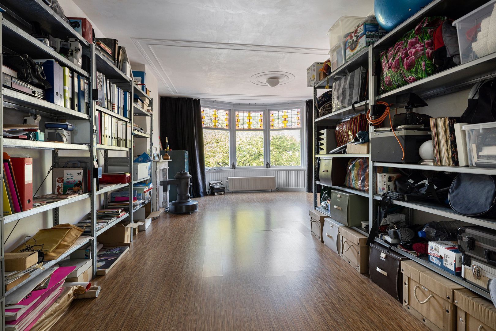 Deze architectonische oogappel werd door haar huidige eigenaren de afgelopen jaren liefdevol vervolmaakt tot comfortabel, stijlvol en knus woon- en werkhuis. Het conventionele woonidee werd letterlijk omgedraaid; de bovenste verdieping met terras vormt nu de centrale leef- , eet-, lees- en lanterfanter plek.