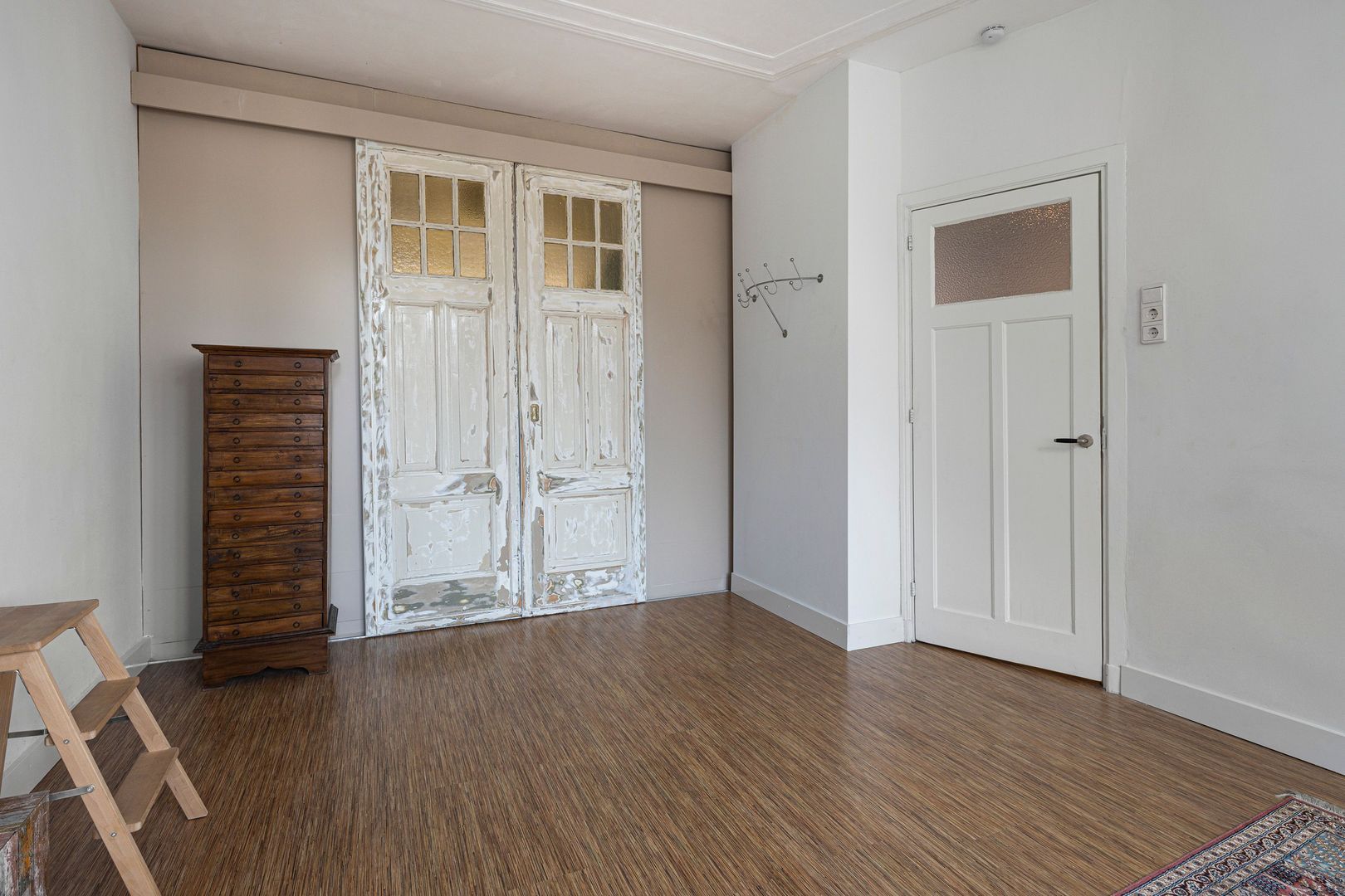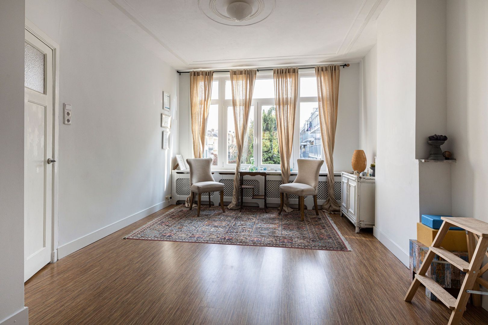 - Voorkamer (1) met erker en grote raampartij; hierdoor zeer licht en een heerlijk rustig uitzicht. Er is een mooie oude schouw met een aansluiting voor een gas/houtkachel.