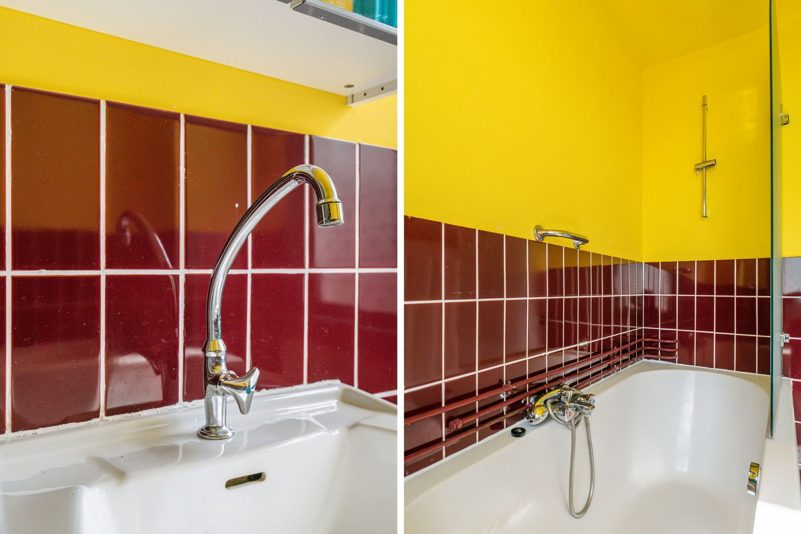 Badkamer voorzien van ligbad, wastafel en 2e toilet.