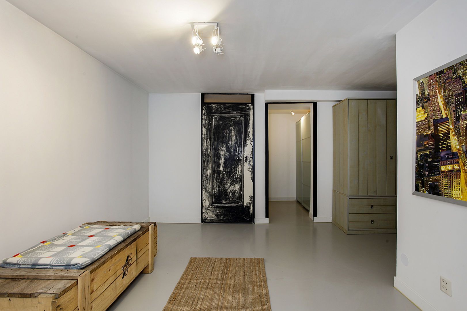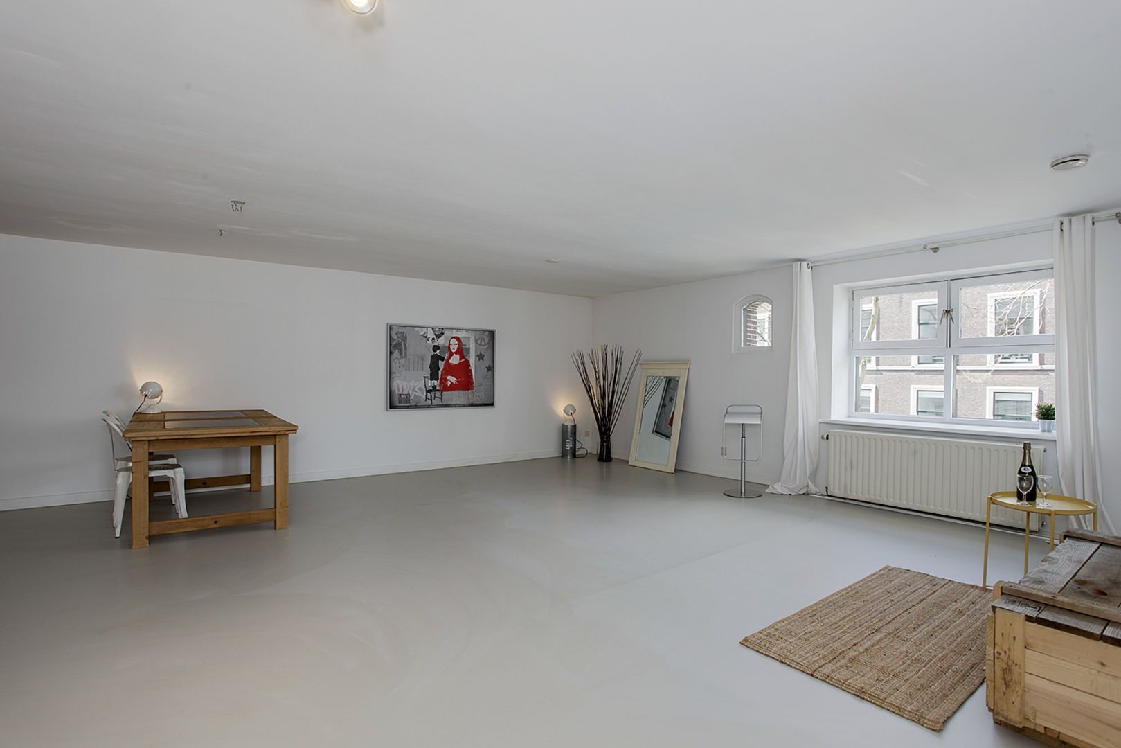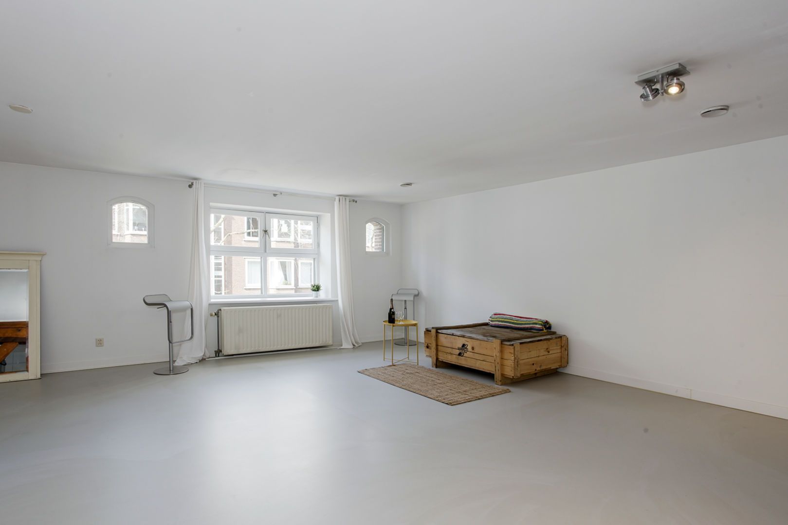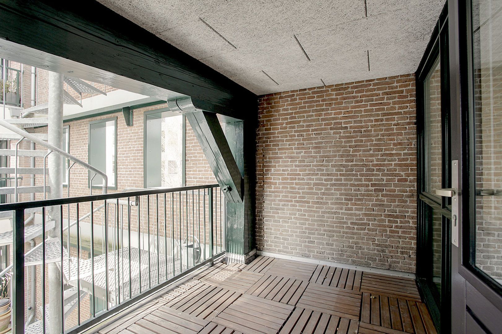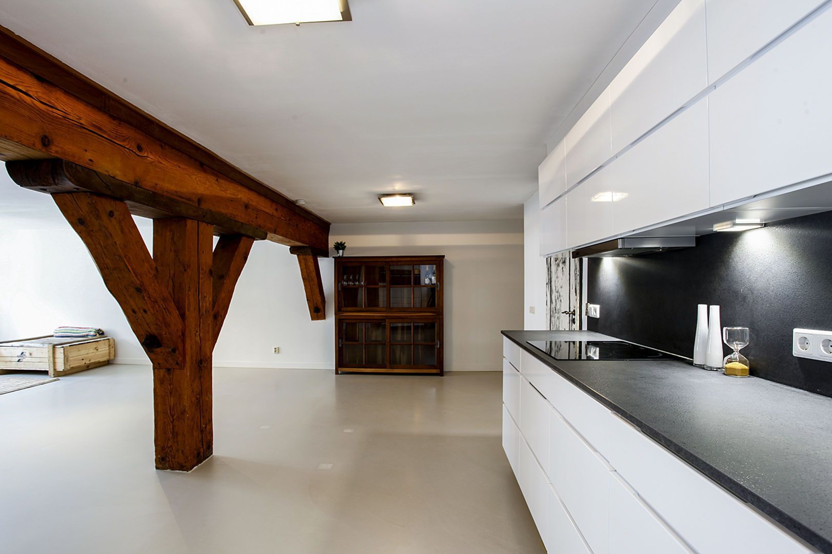 In het appartement zijn oorspronkelijke balken in het zicht gebleven.