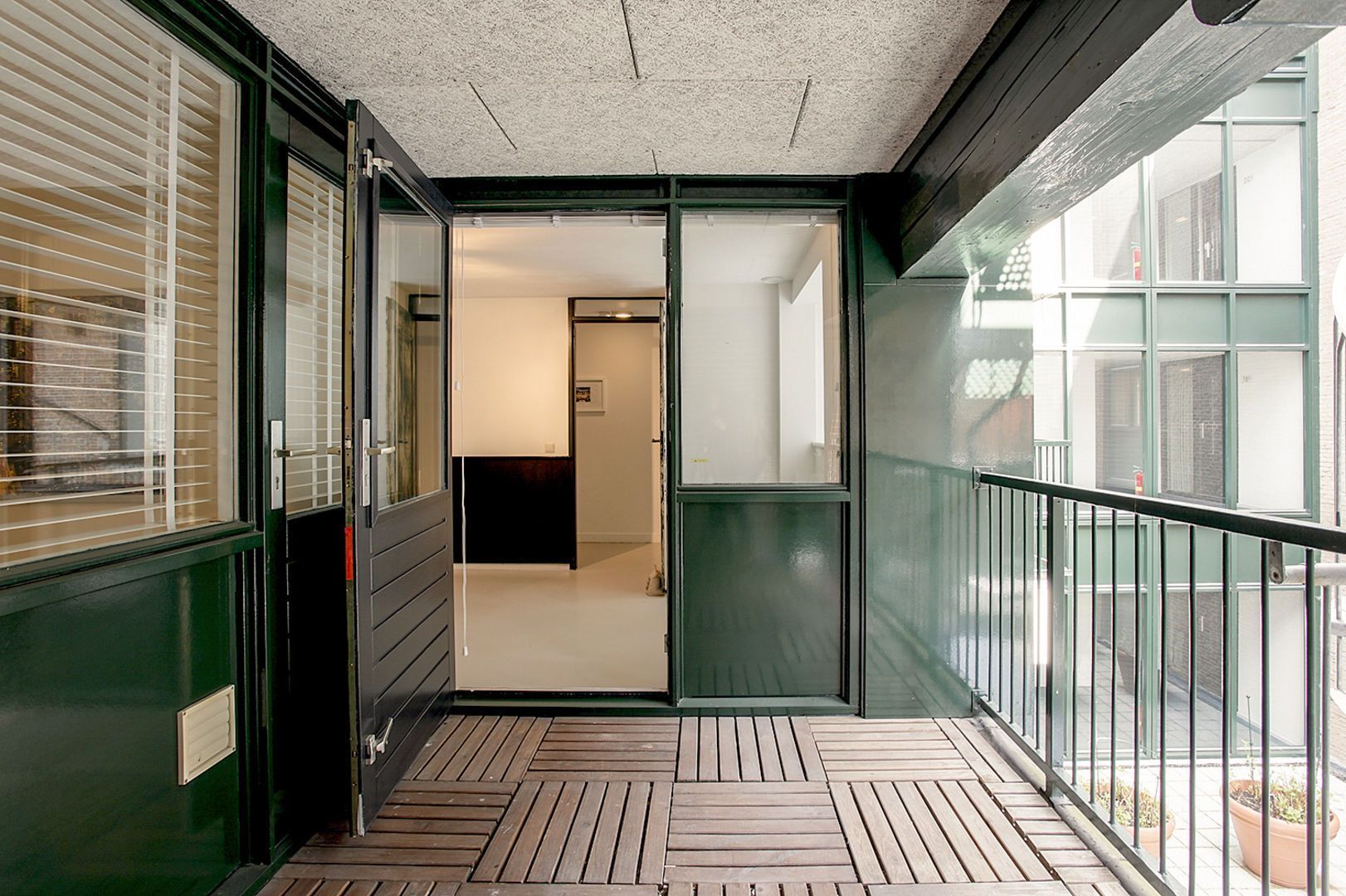 Afgesloten centrale entree met atrium.