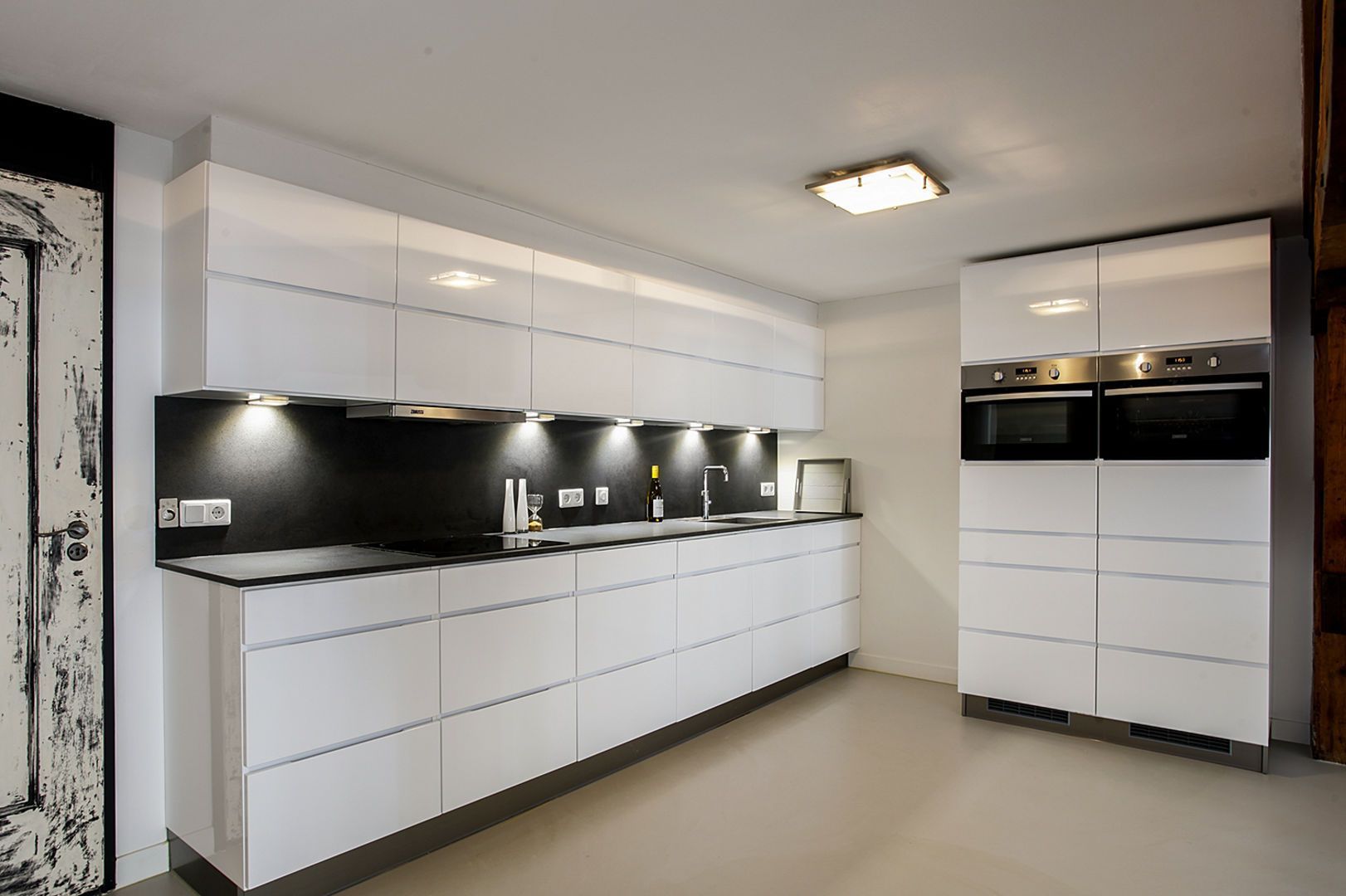 Living (1) ca. 65 m2, open keukenruimte met moderne witte opstelling en alle wenselijke apparatuur. Bijkeuken met aansluiting voor wasapparatuur.