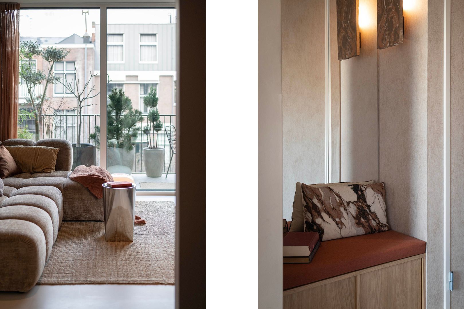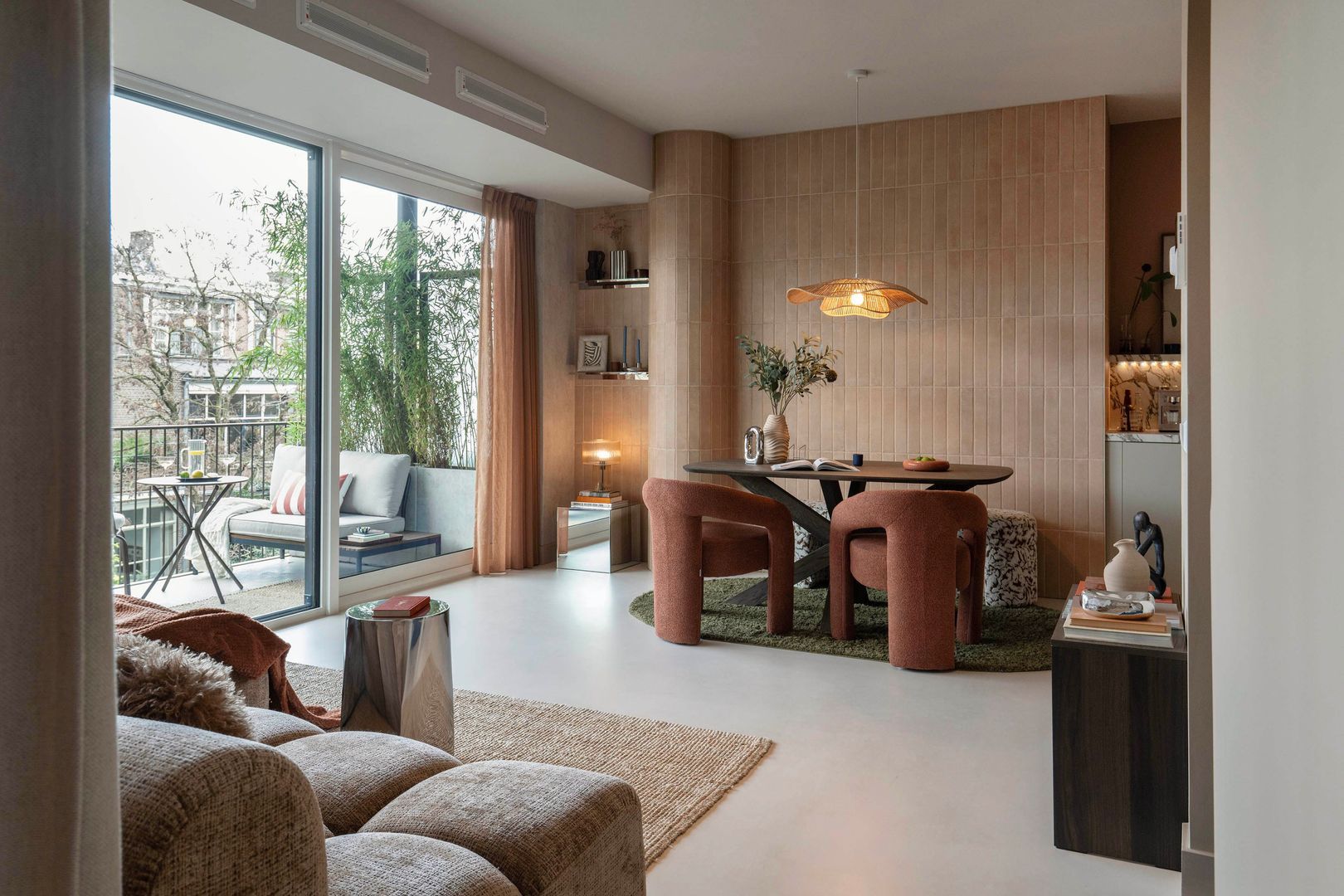 Verfijnd vormgegeven en doordacht gestyled TWEEKAMER APPARTEMENT (ca. 52 m²) met een diep èn huis-breed TERRAS (ca. 16m²), gelegen op de derde verdieping van recent voltooid woongebouw, “The Caland”.