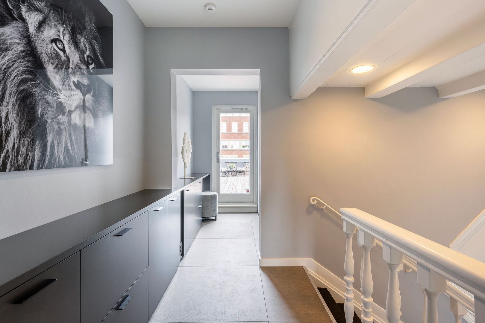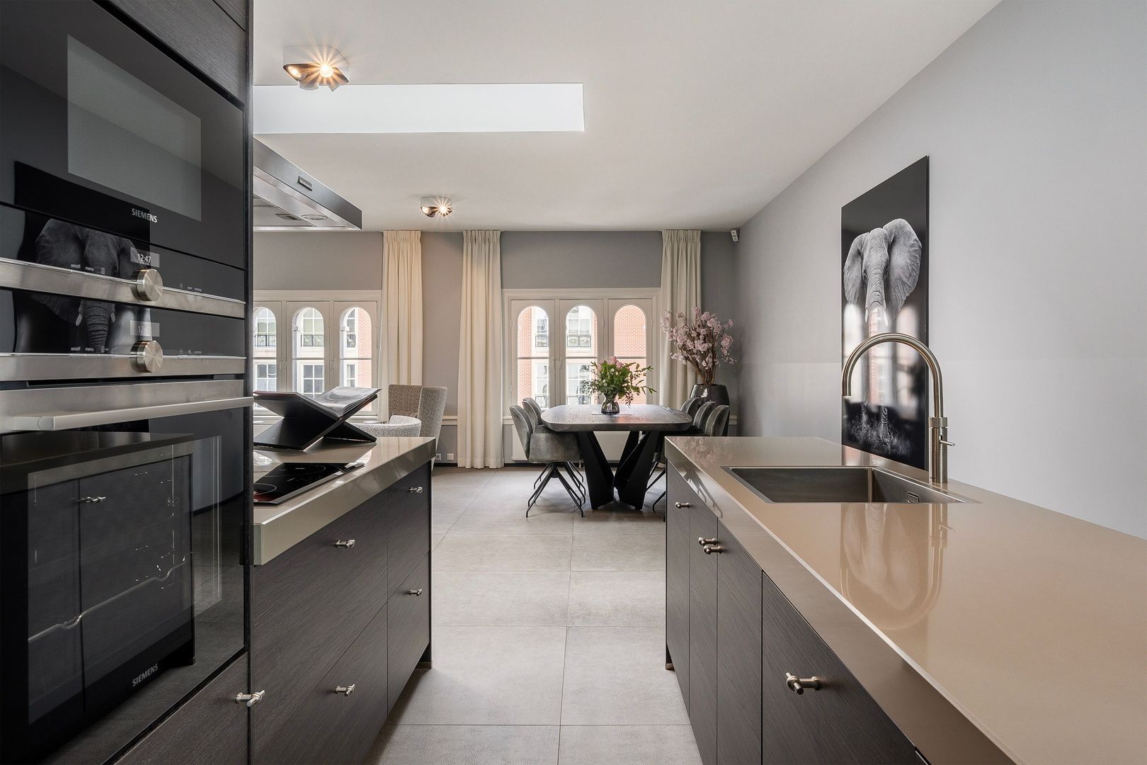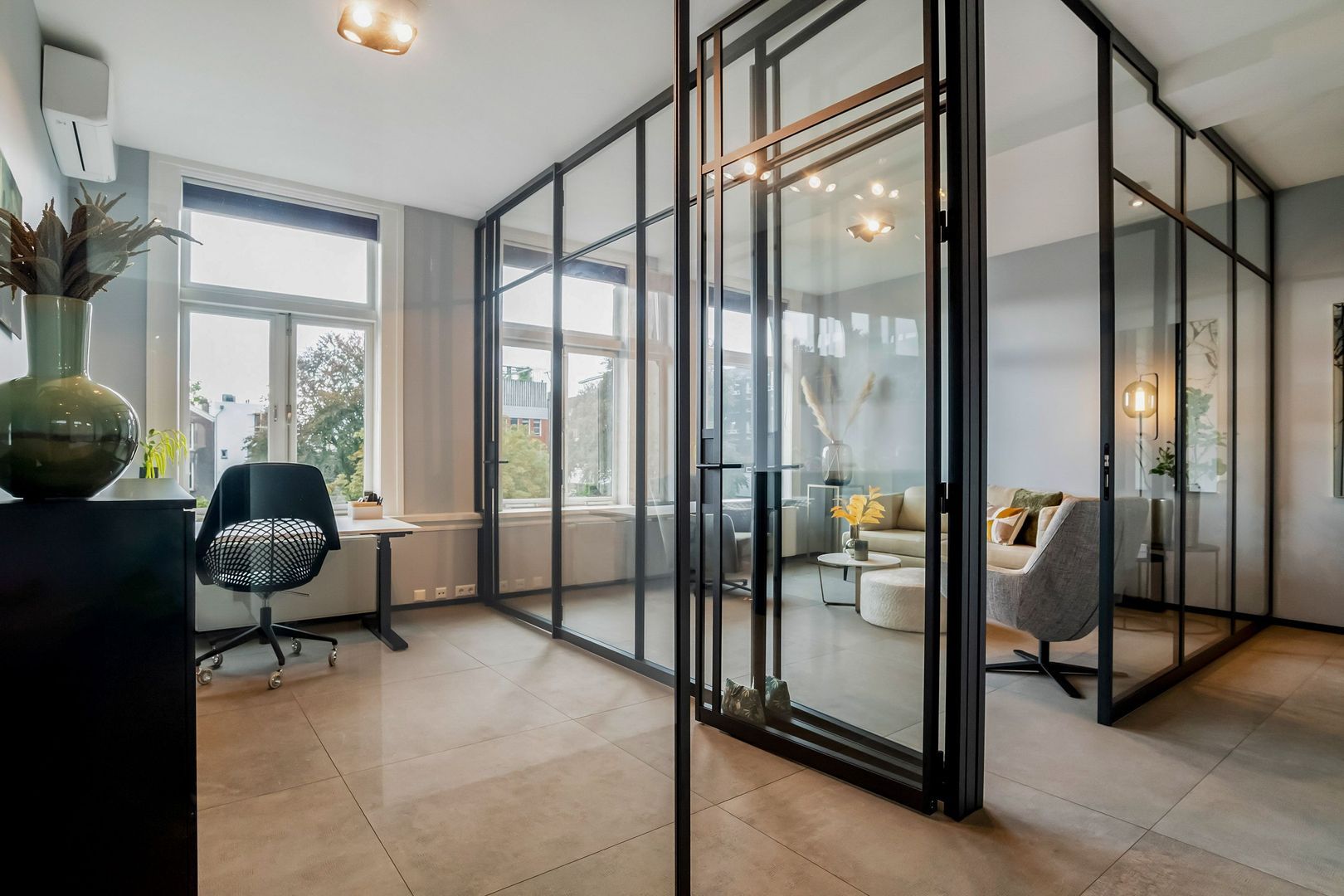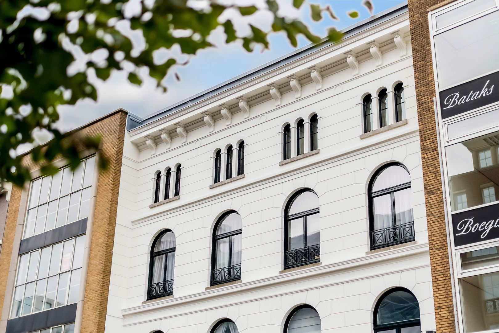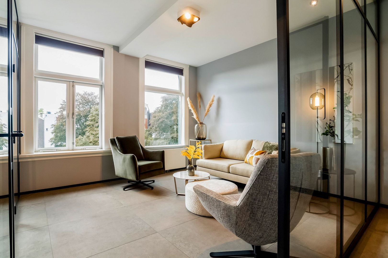 De statige, klassieke, witte gevel en de in marmer uitgevoerde gemeenschappelijke entree zijn behouden gebleven. Een forse én lichte zit-/eetkamer, een luxe keuken met een kookeiland, 2 kamers (eenvoudig samen te voegen tot een 2e zitkamer ca. 32,5m²!) en daarboven een ‘suite-stijl’ slaapverdieping met een zeer luxe badkamer.