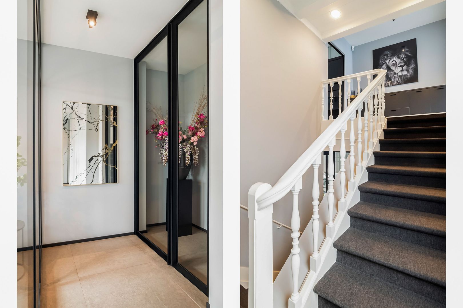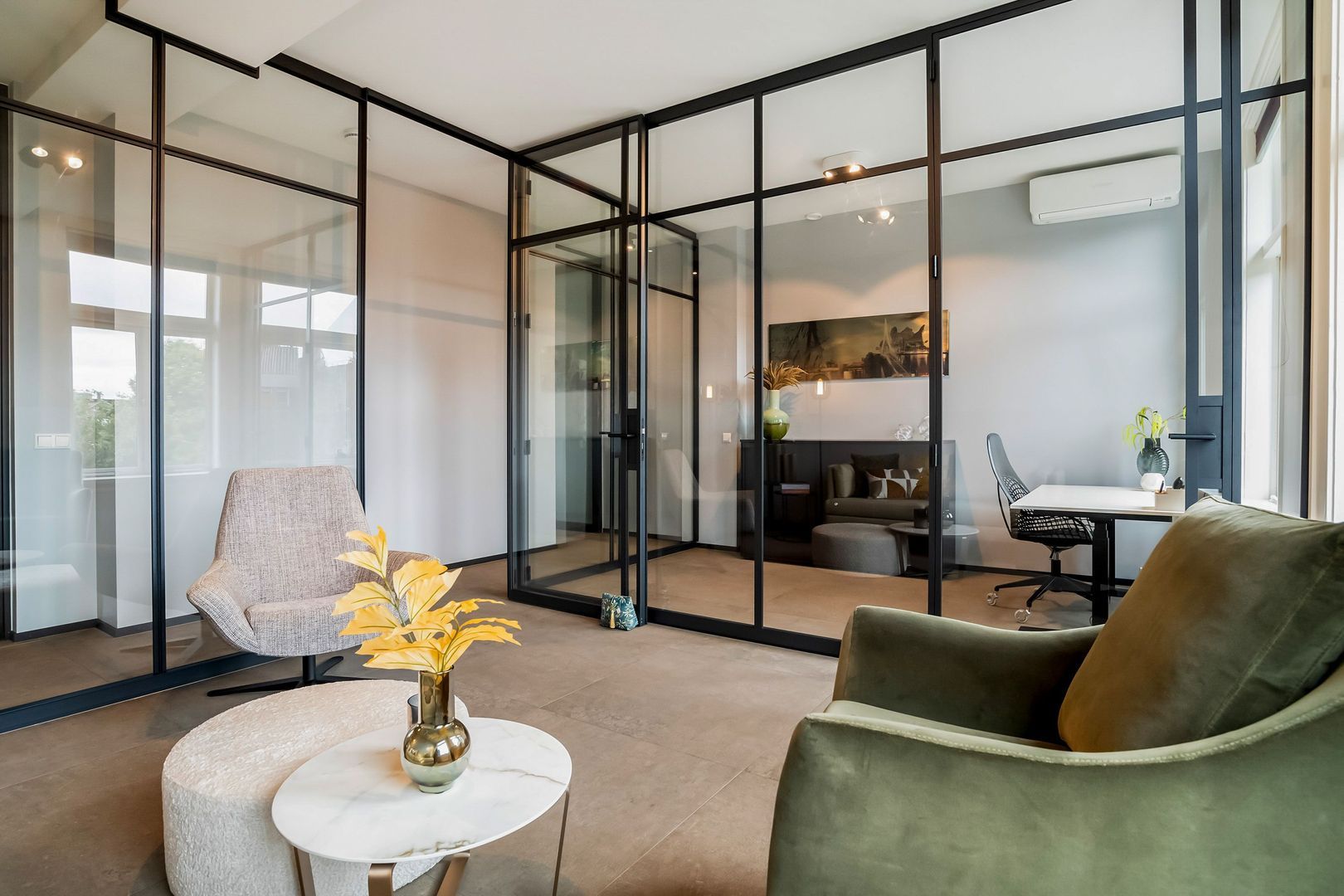 Zeer lichte ‘doorgang’ met veel glas, naar het tuinengerichte deel van het appartement...