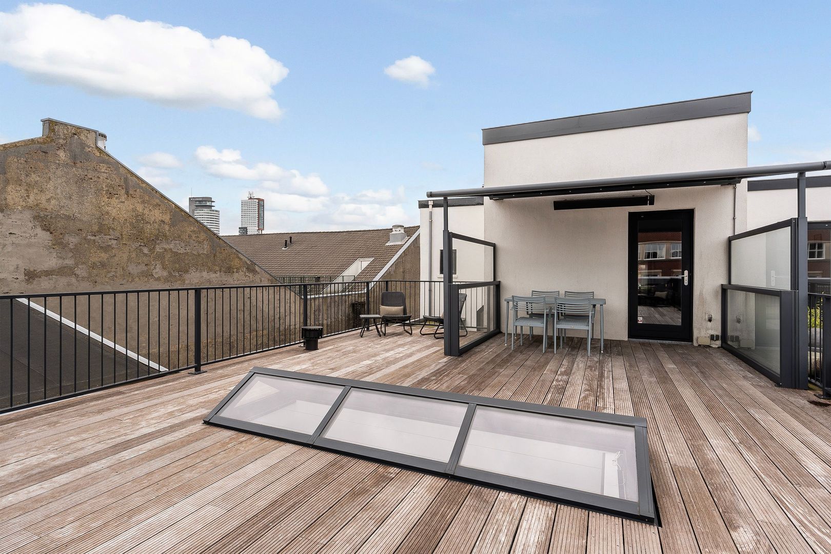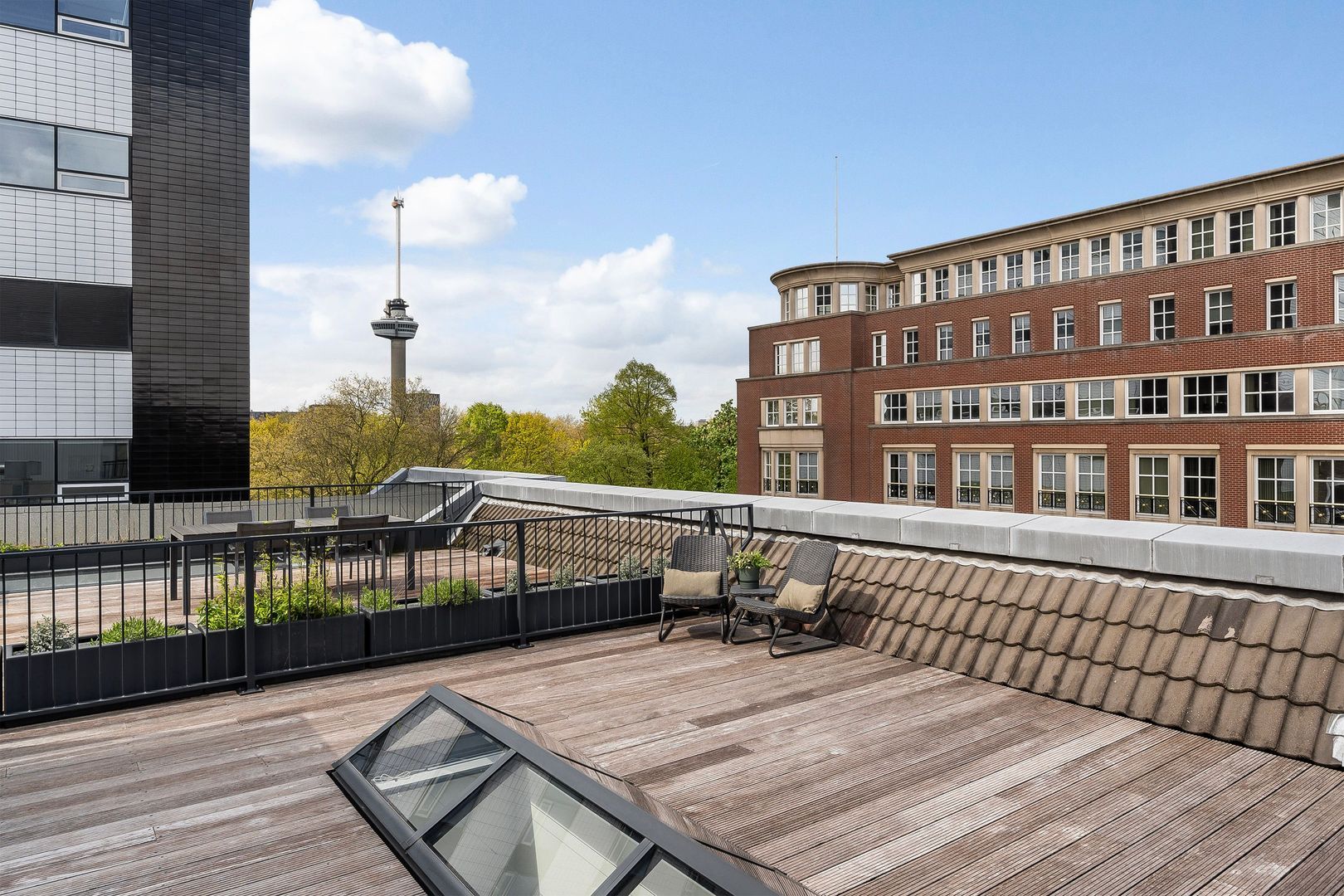 Enorm TERRAS ca. 52m², en een formidabel uitzicht op diverse stadsiconen zoals Het Park, de Euromast, de Erasmusbrug en de Zalmhaventoren. Het dakterras is voorzien van elektrisch bedienbare luifel, heater én windschermen.