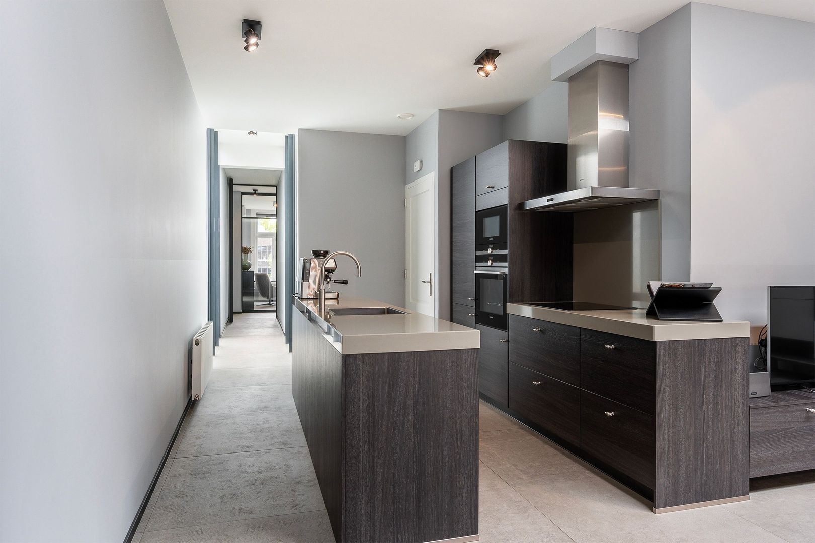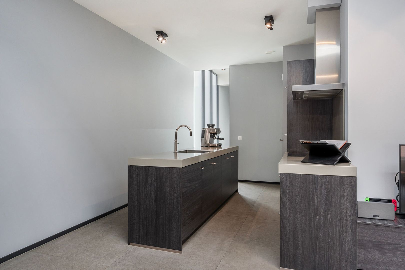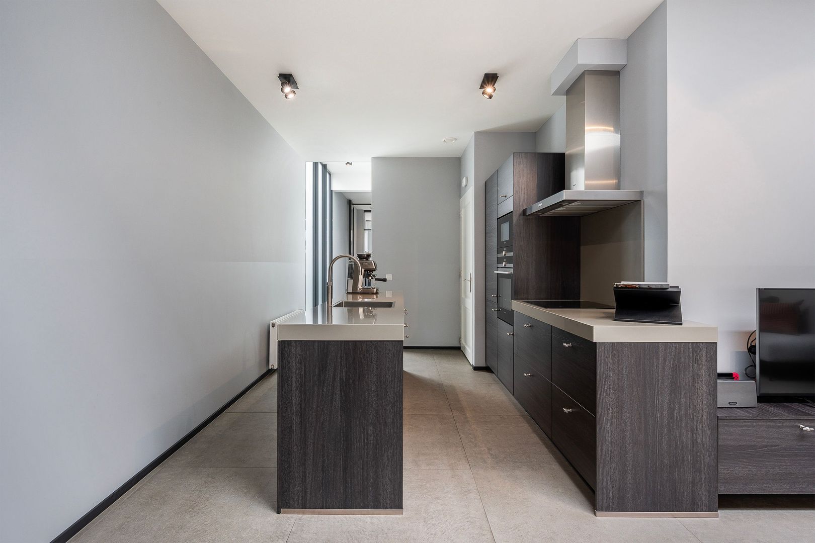 volgende apparatuur: een inductiekookplaat met ventilatieschouw, een koelkast, een vriezer, een spoelbak, een vaatwasser, een oven, een magnetron en een Quooker Fusion (voor direct warm-, kokend-, bruisend- én gekoeld water).