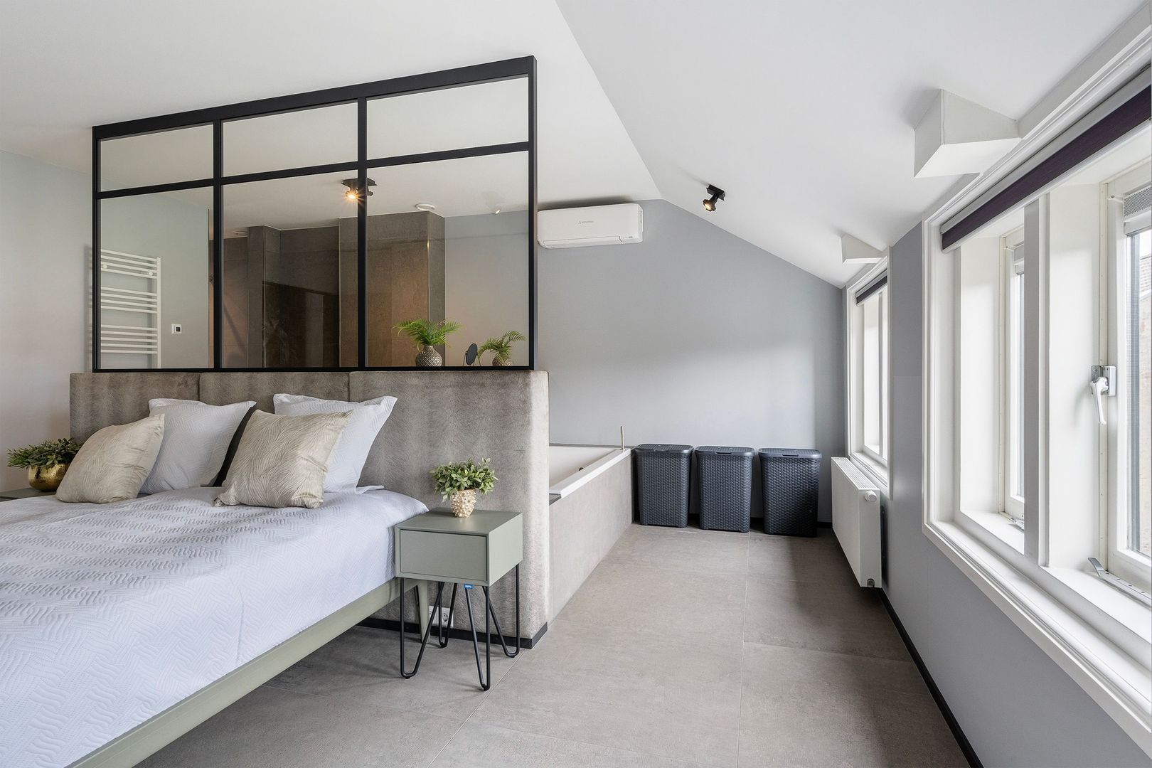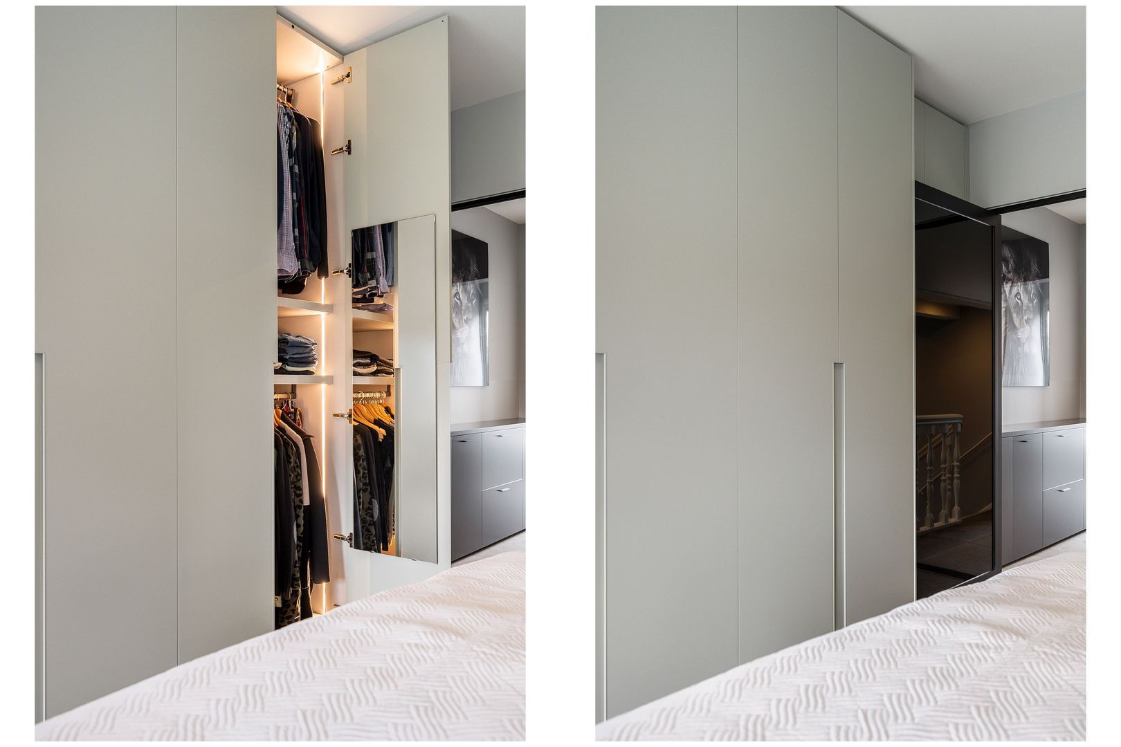 Slaapkamer (4) aan de tuinzijde met mooie kledingkasten en airconditioning. Nu staat deze slaapkamer in open verbinding (eenvoudig af te scheiden) met de badkamer.