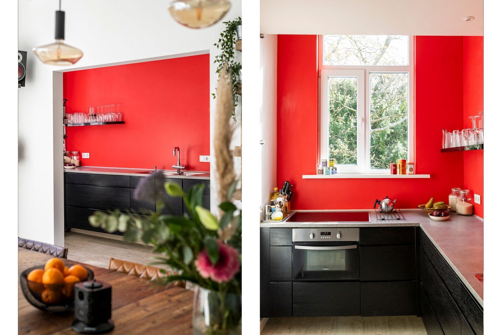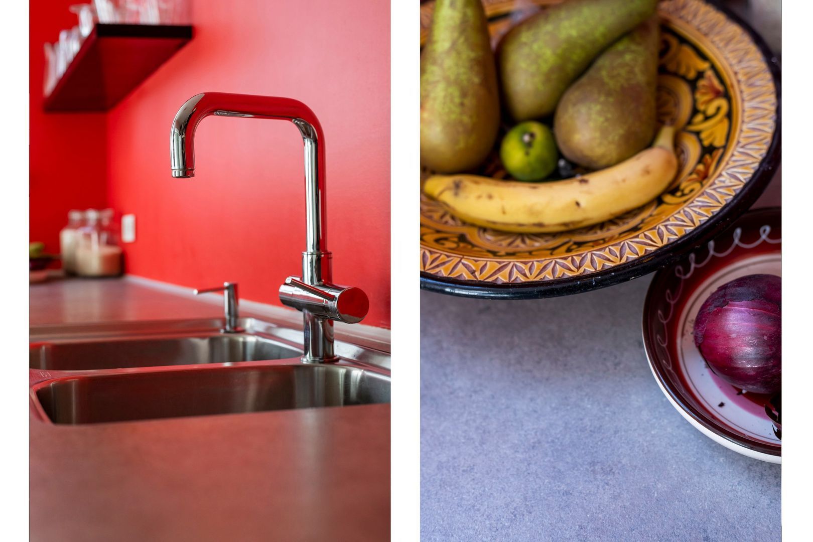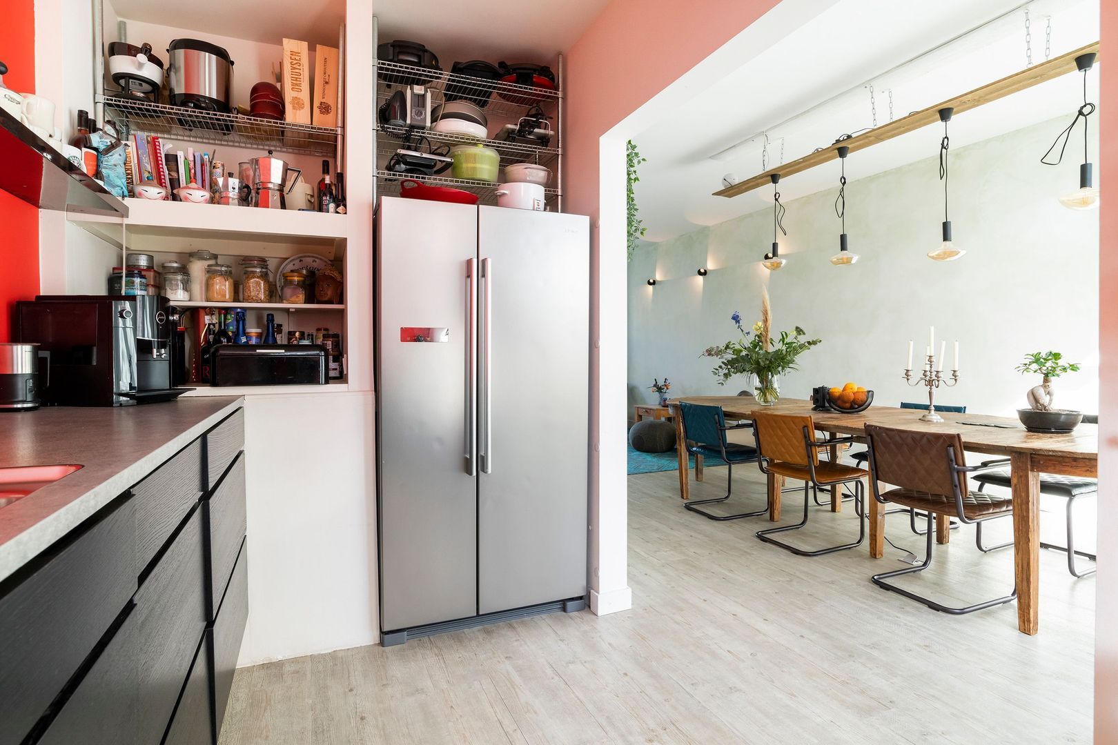 Open keukenruimte (Kvik, 2016) met keukenopstelling en onder andere voorzien van kokend-water kraan (Grohe), inductiekookplaat en een dubbele spoelbak.