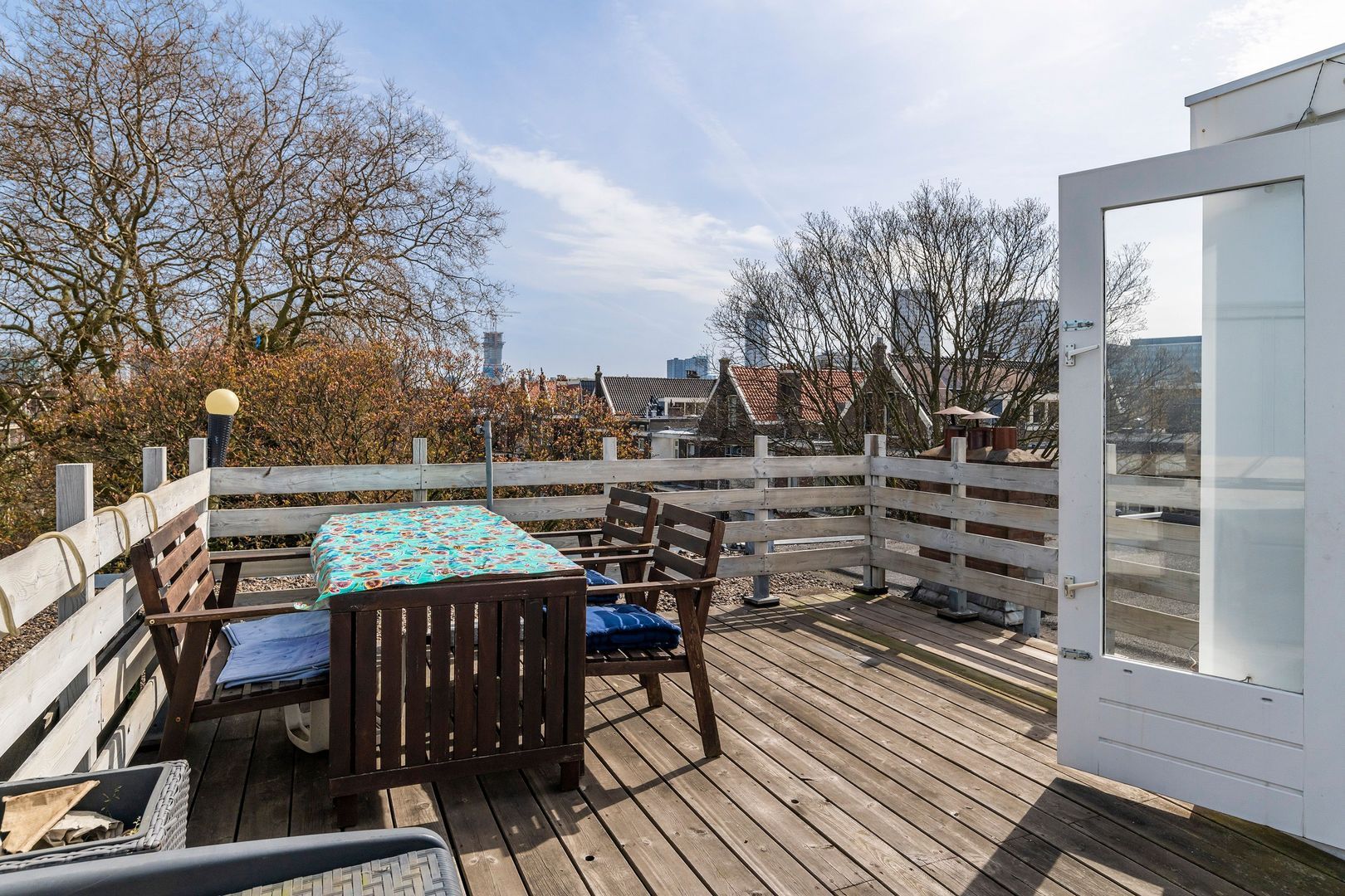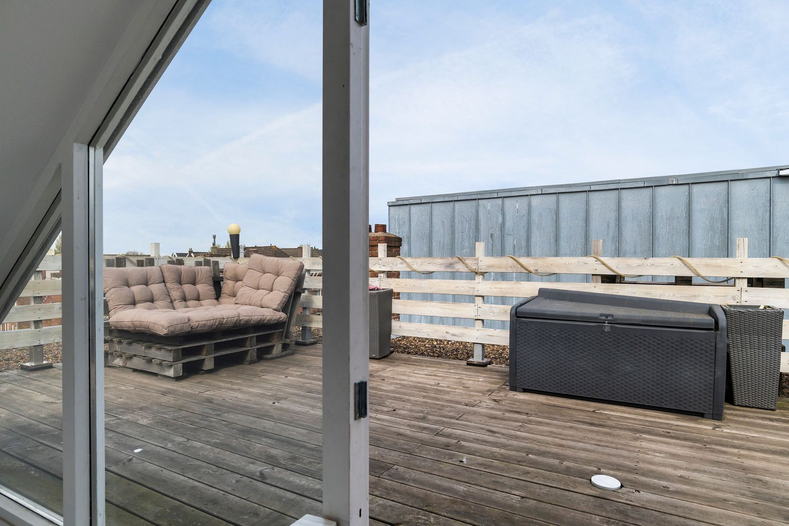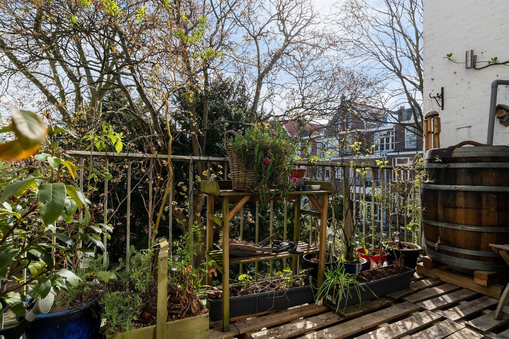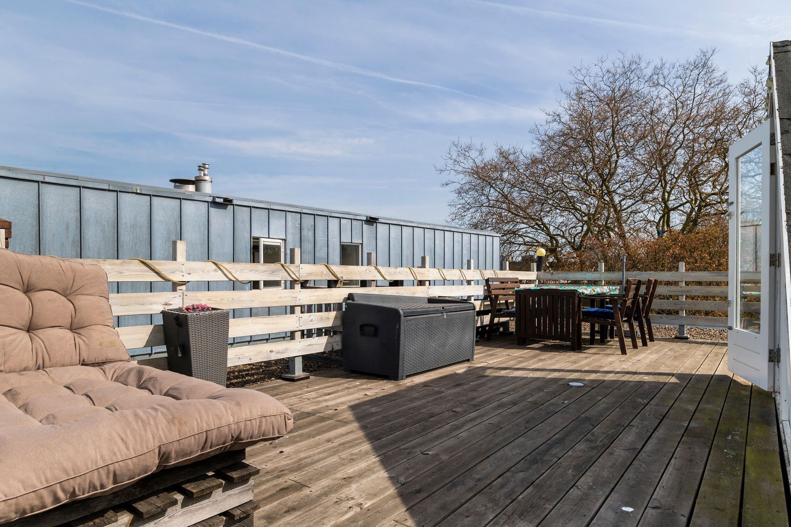 Het huis beschikt over 2 ruime buitenruimten; een ruim TERRAS direct aan de leefruimte en een DAKTERRAS met vaste trap en dakhuisje. Het terras aan de achterzijde (ochtendzon) geeft zicht op de zeer ruime binnenplaats voorzien van weldadig grote bomen, welke ook nog eens verrassend rustig is.