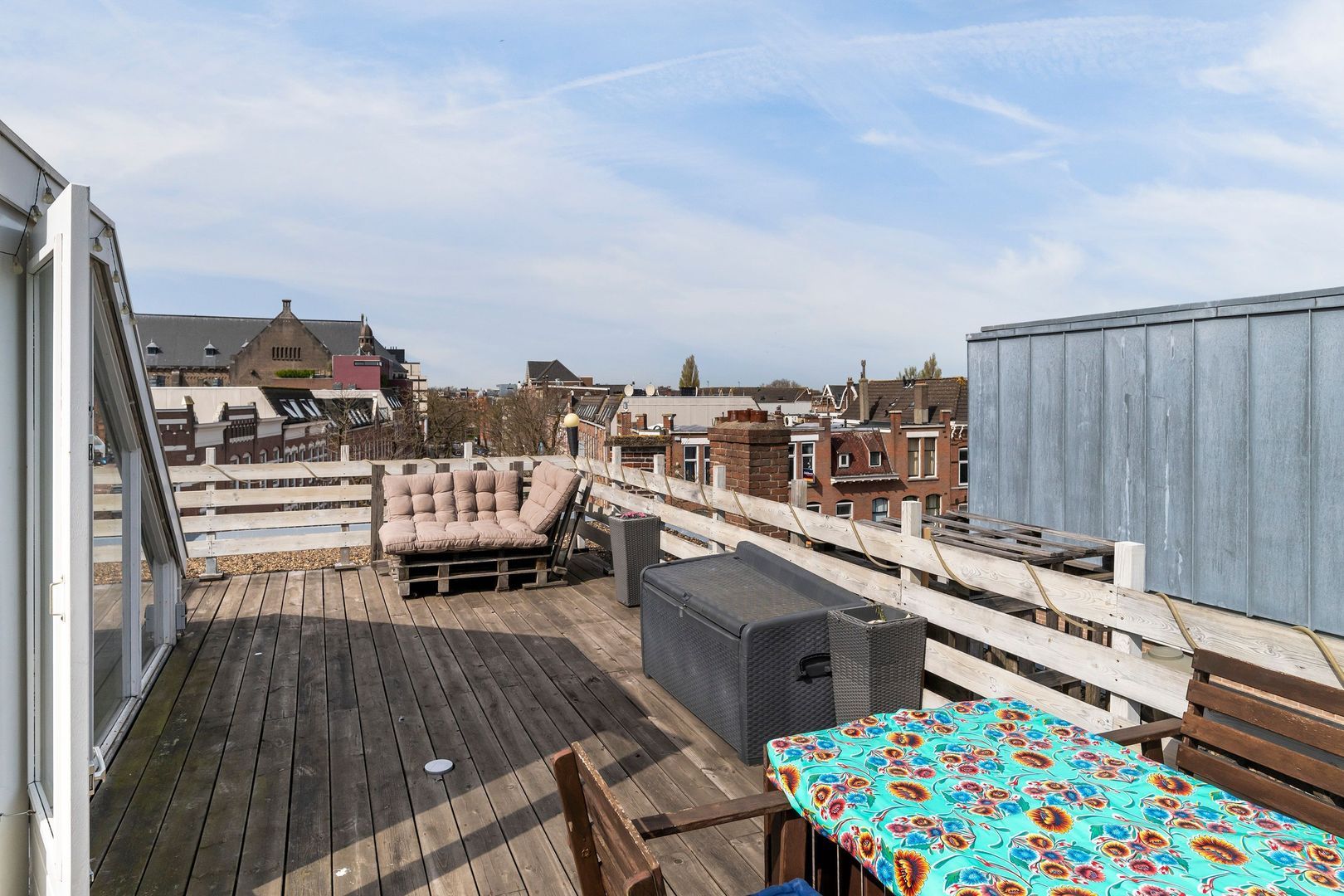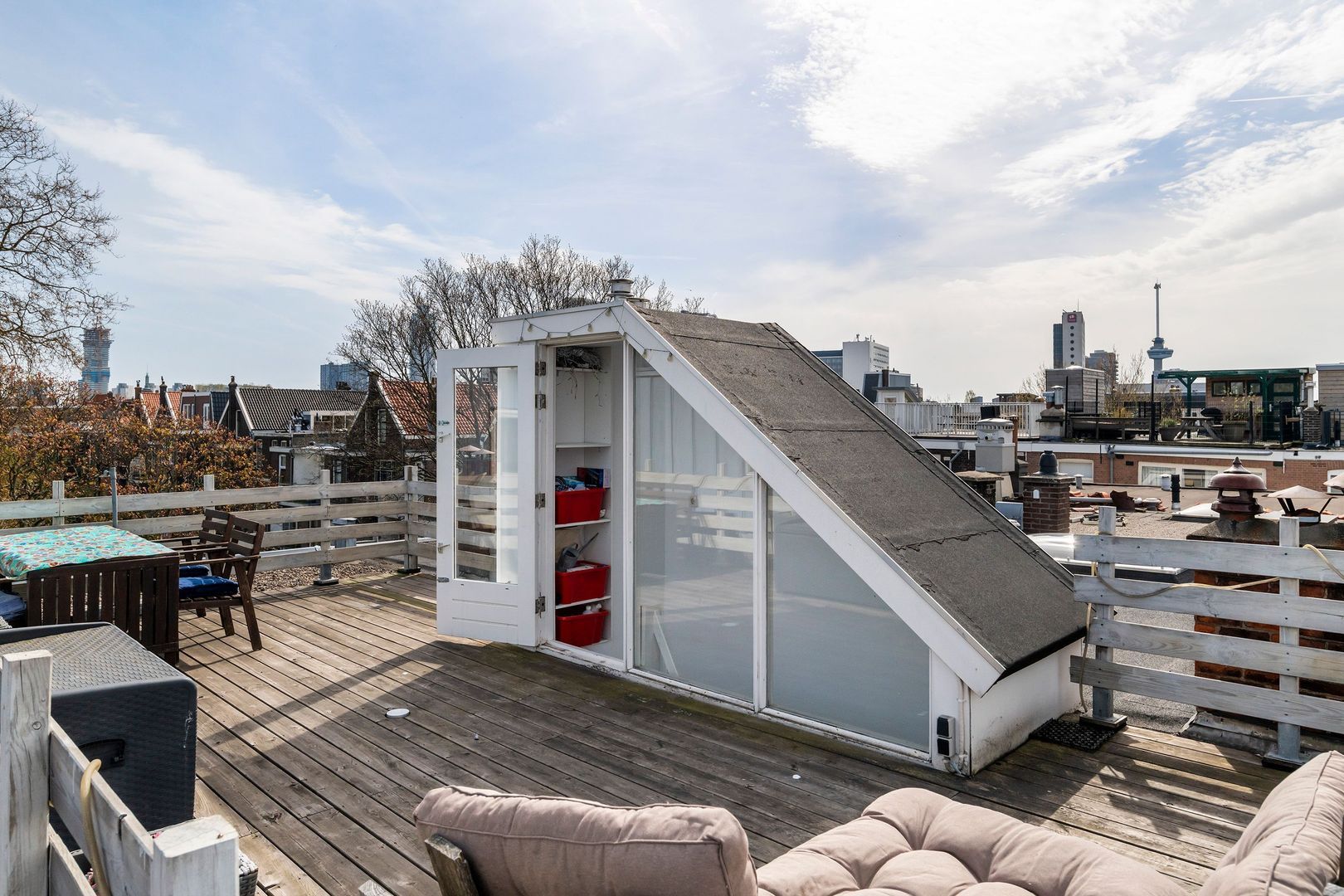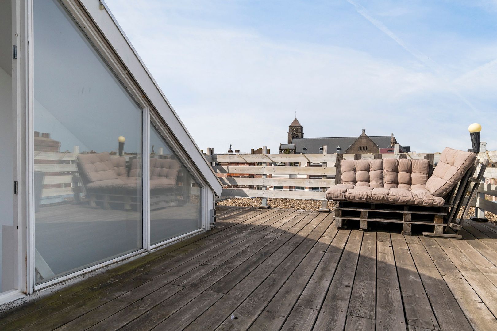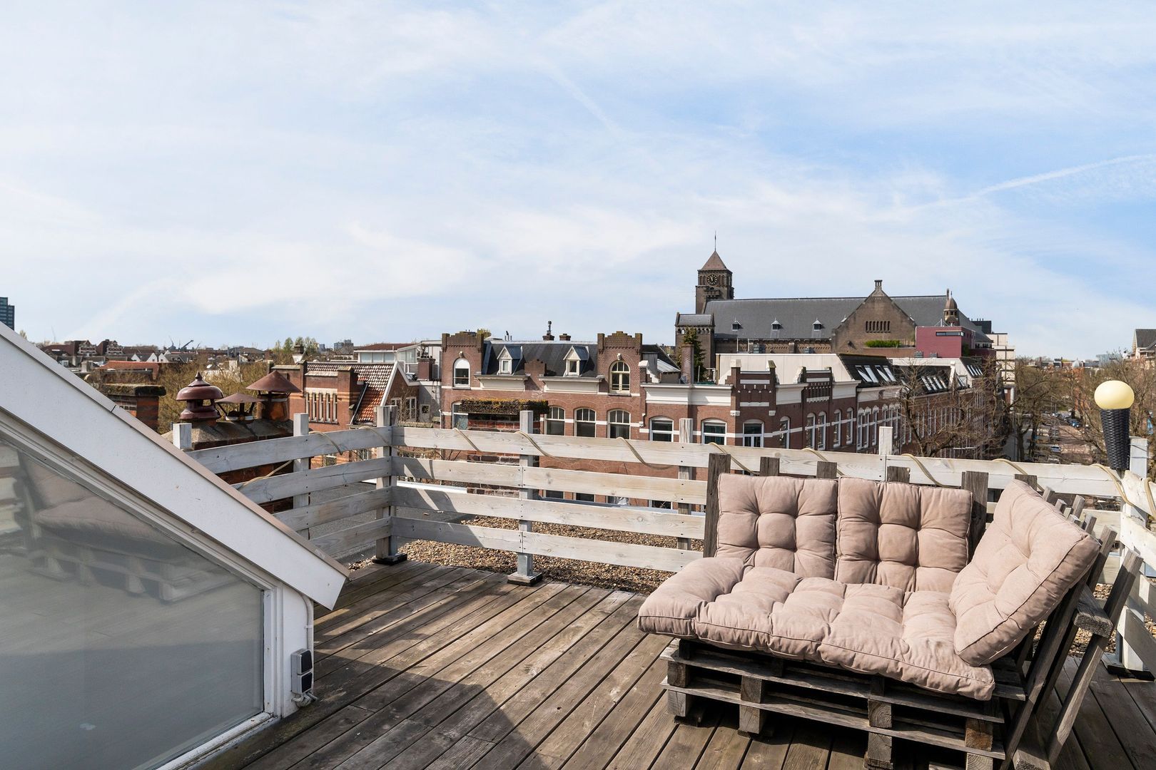 Het huis beschikt over 2 ruime buitenruimten; een ruim TERRAS direct aan de leefruimte en een DAKTERRAS met vaste trap en dakhuisje. Het terras aan de achterzijde (ochtendzon) geeft zicht op de zeer ruime binnenplaats voorzien van weldadig grote bomen, welke ook nog eens verrassend rustig is.