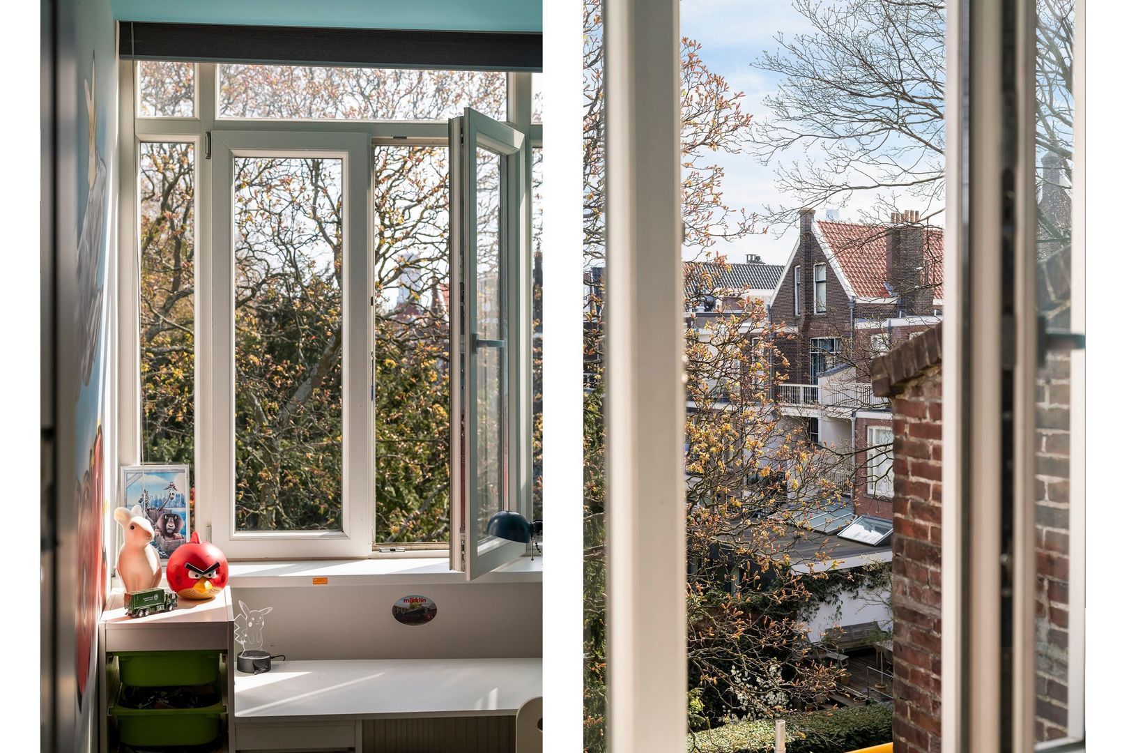 Fors en verrassend  licht DUBBEL BOVENHUIS (ca. 150m²) met maar liefst 5 kamers, een heel vrije (zicht)ligging tegenover de weglopende Robert Fruinstraat en de klassieke geveltjes van de Claes de Vrieselaan. Met goed vakmanschap en gevoel voor stijl en smaak is dit huis door haar eigenaren liefdevol en grondig aangepakt. Het is hierdoor zeer geschikt voor een stadsminnend en duurzaam huishouden, dat gezinsuitbreiding niet uit de weg hoeft te gaan.