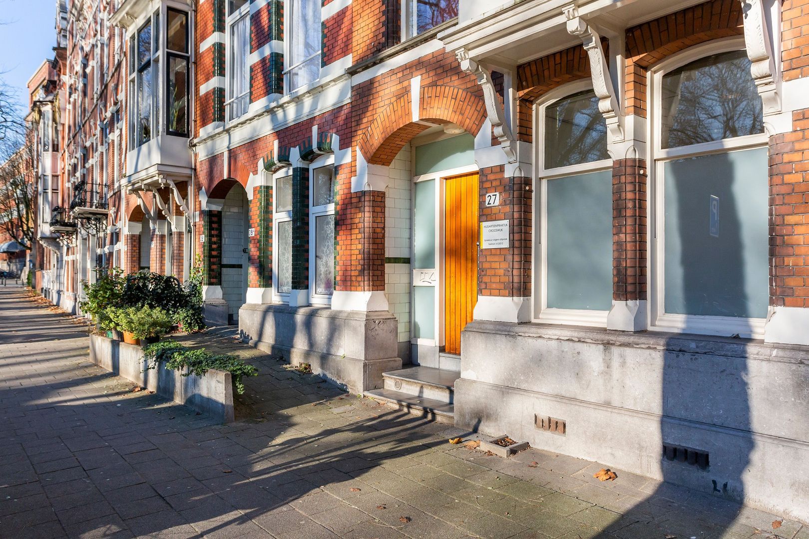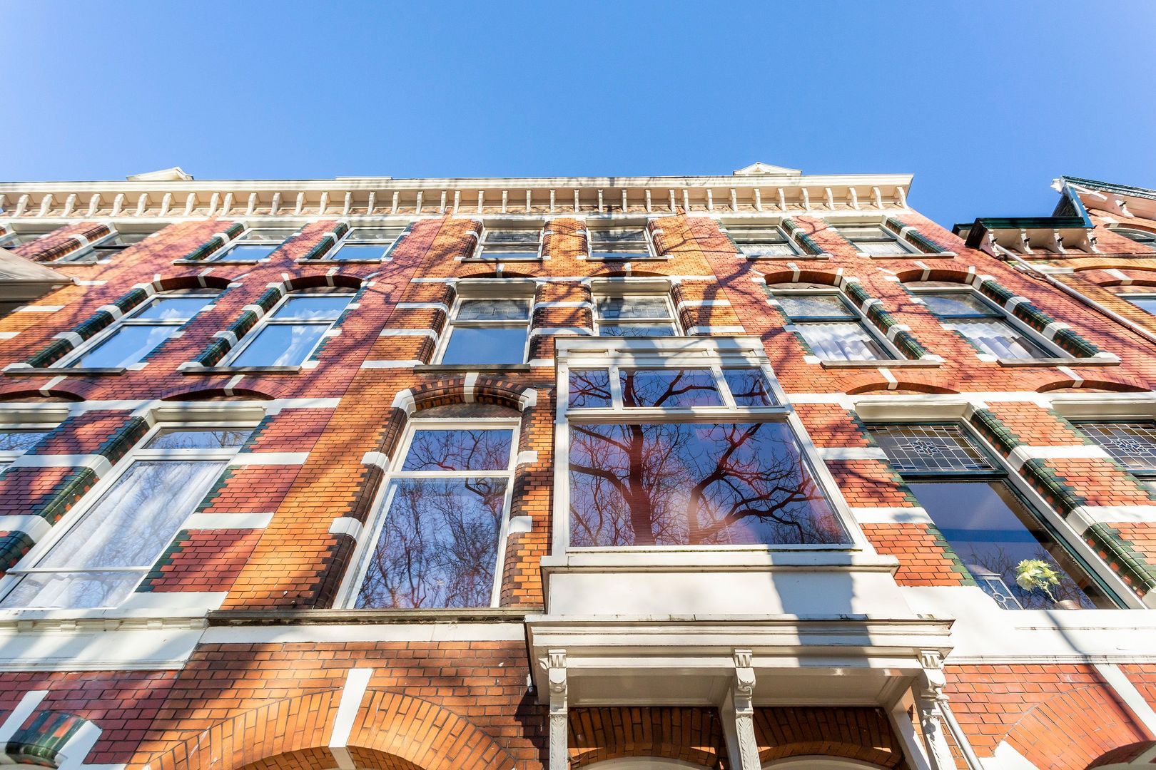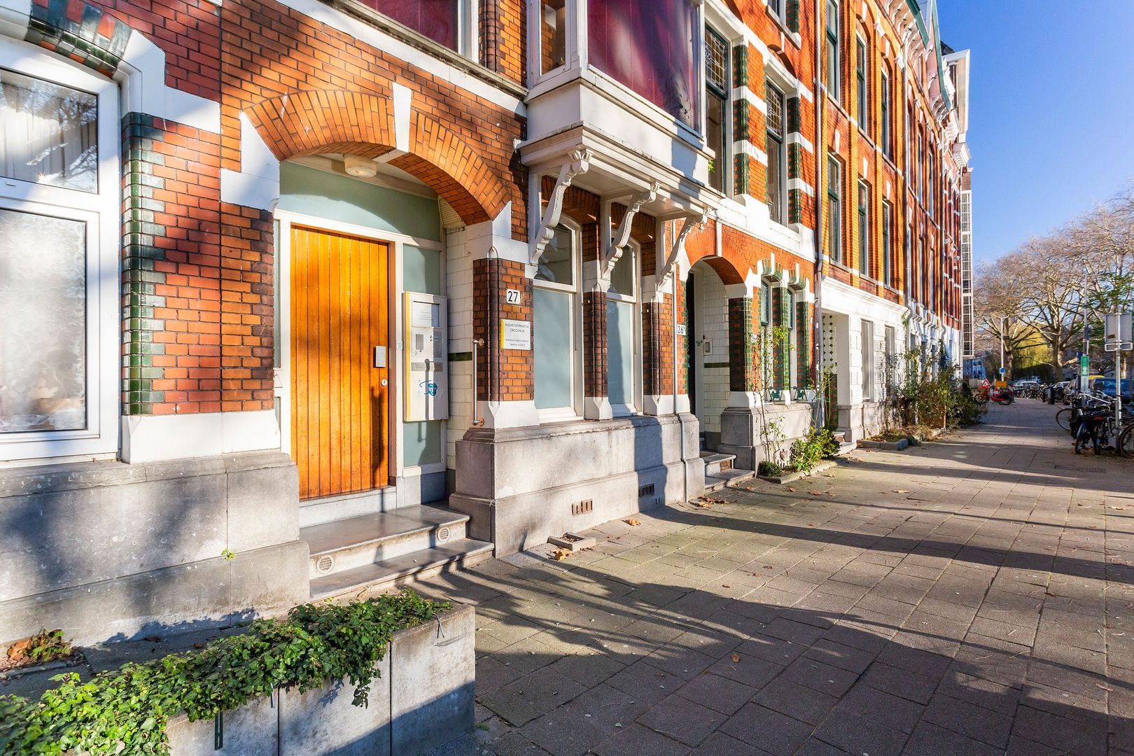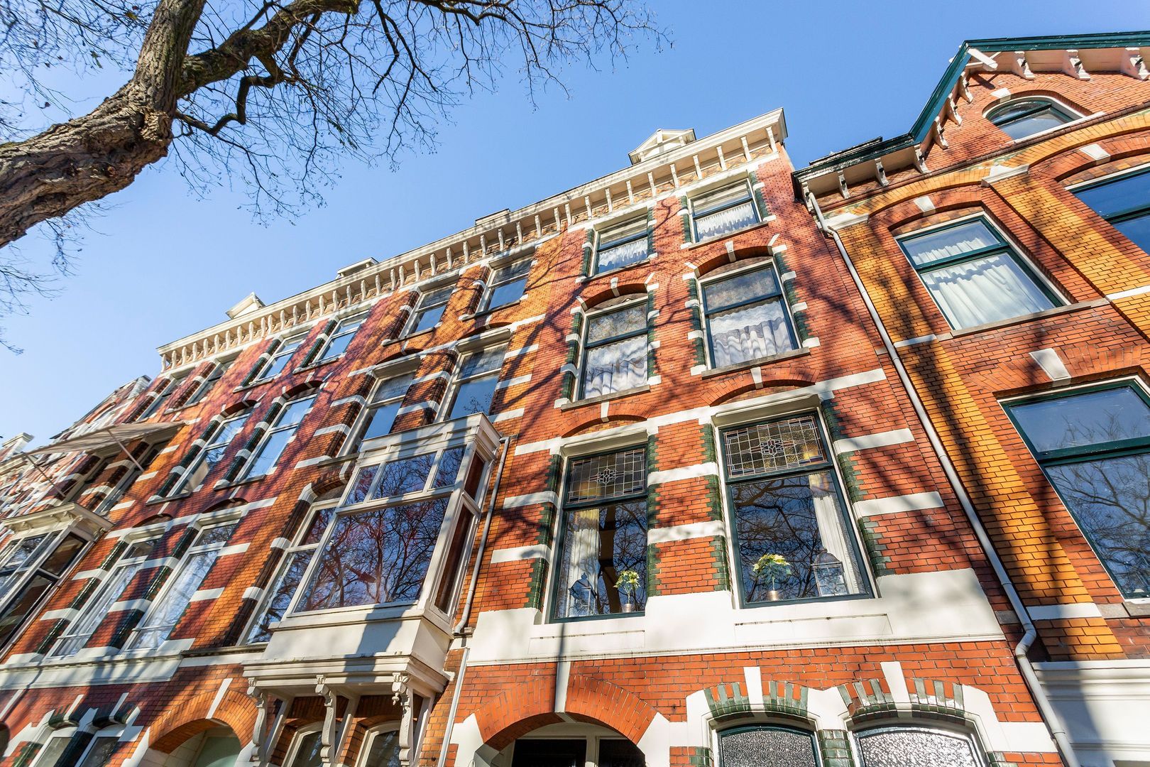 5 - LAAGS - HERENHUIS (ca. 276 m2), gelegen aan een singel met oude platanen, op de grens van het Oude Noorden en Nieuw Crooswijk, met een fraaie art nouveau gevel, een TUIN, een fantastische erker op de 1e verdieping en een DAKTERRAS op de bovenste (4e) verdieping.
