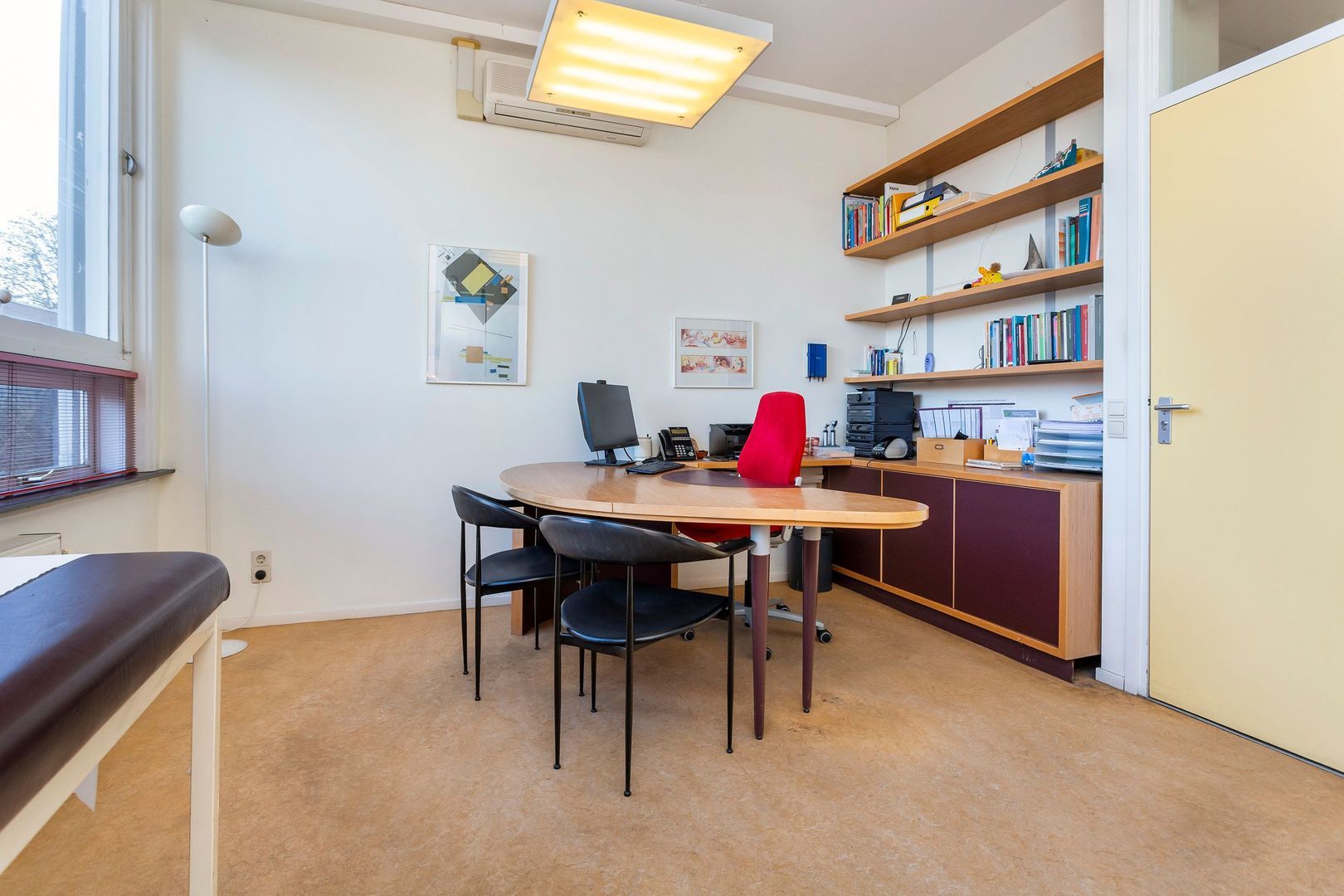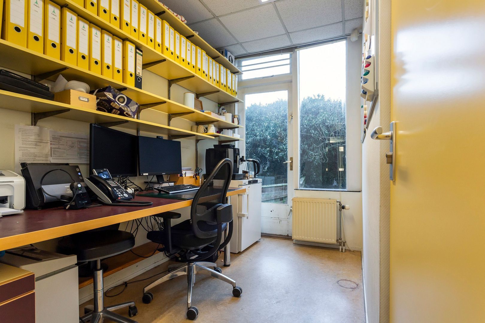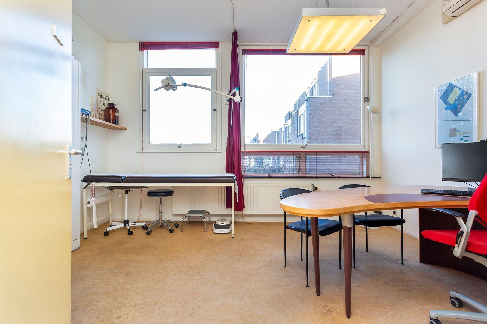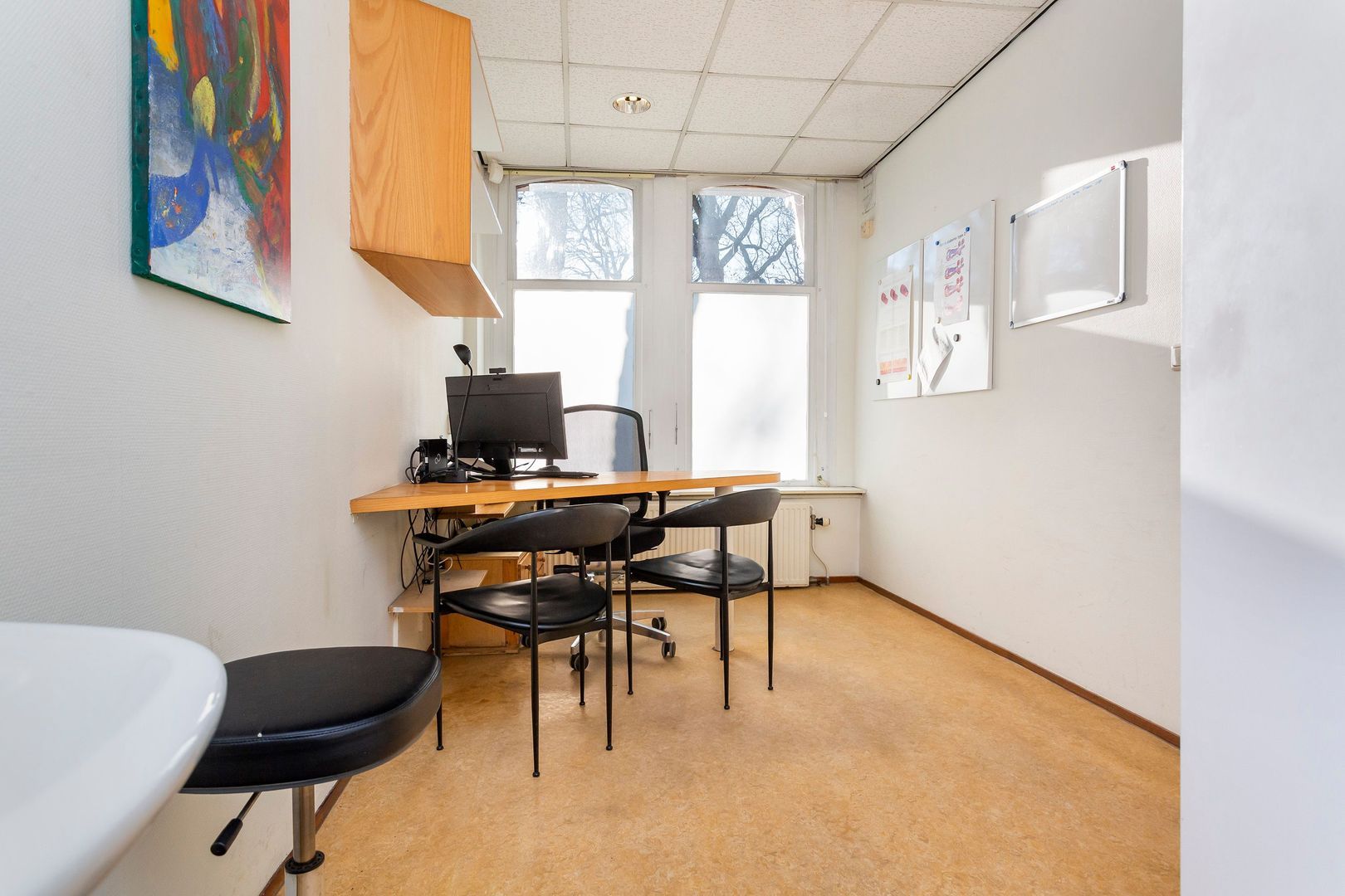Vrij in te delen verdieping van ongeveer 60m² met singelzicht en toegang tot de achtertuin. Nu zijn er een aantal praktijk/kantoorkamers een keuken en een toilet.
