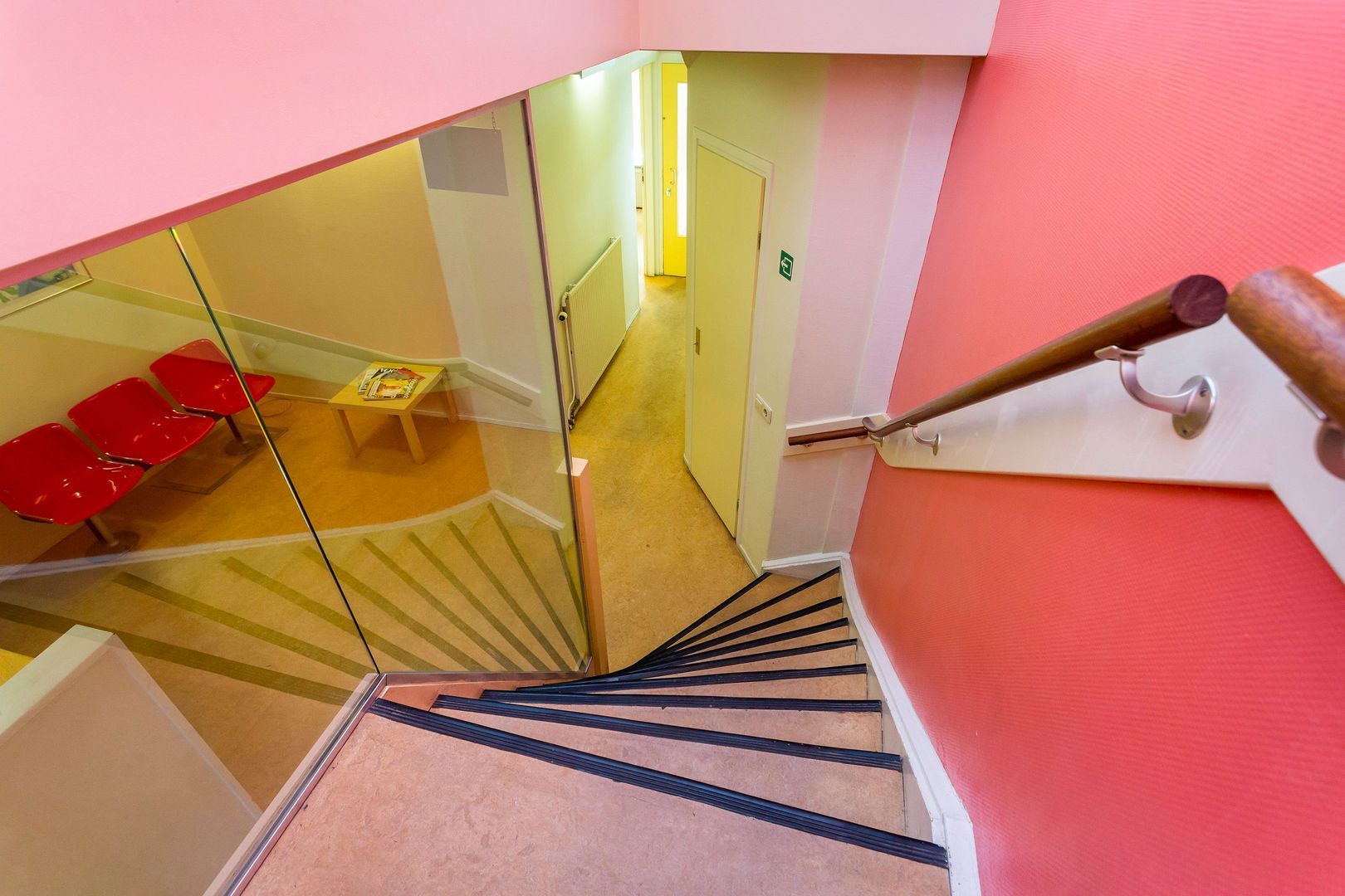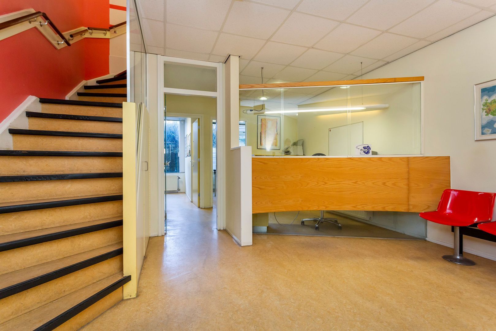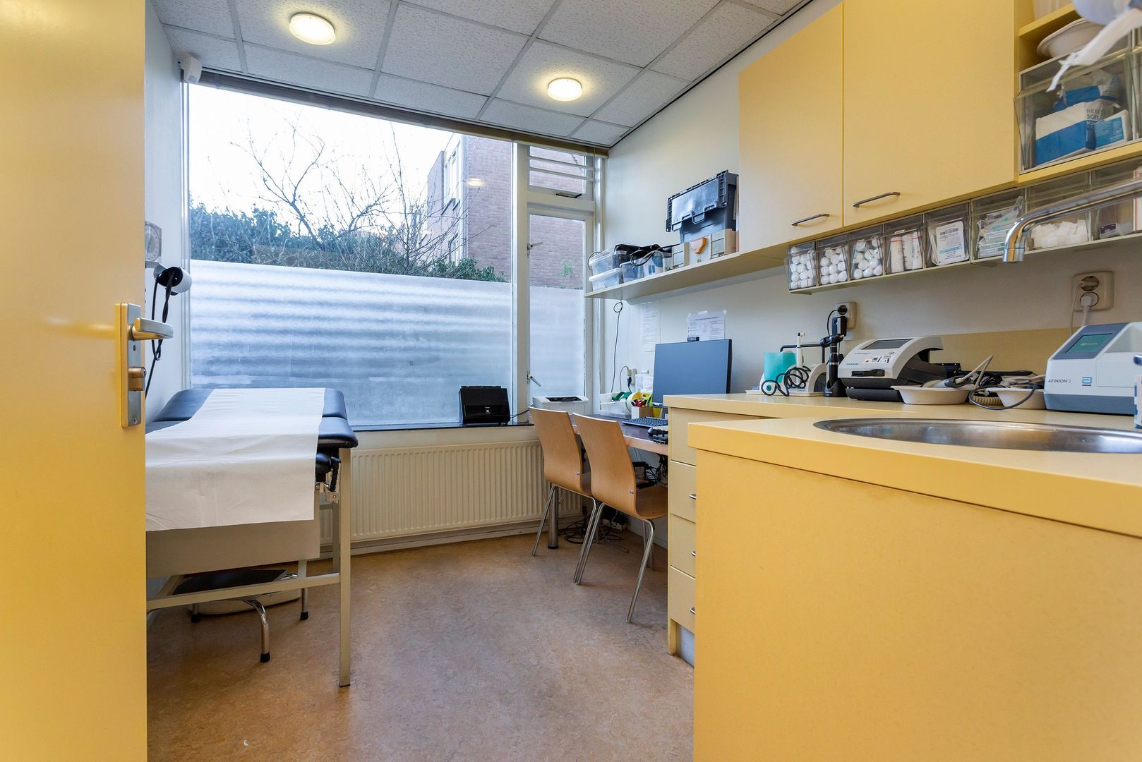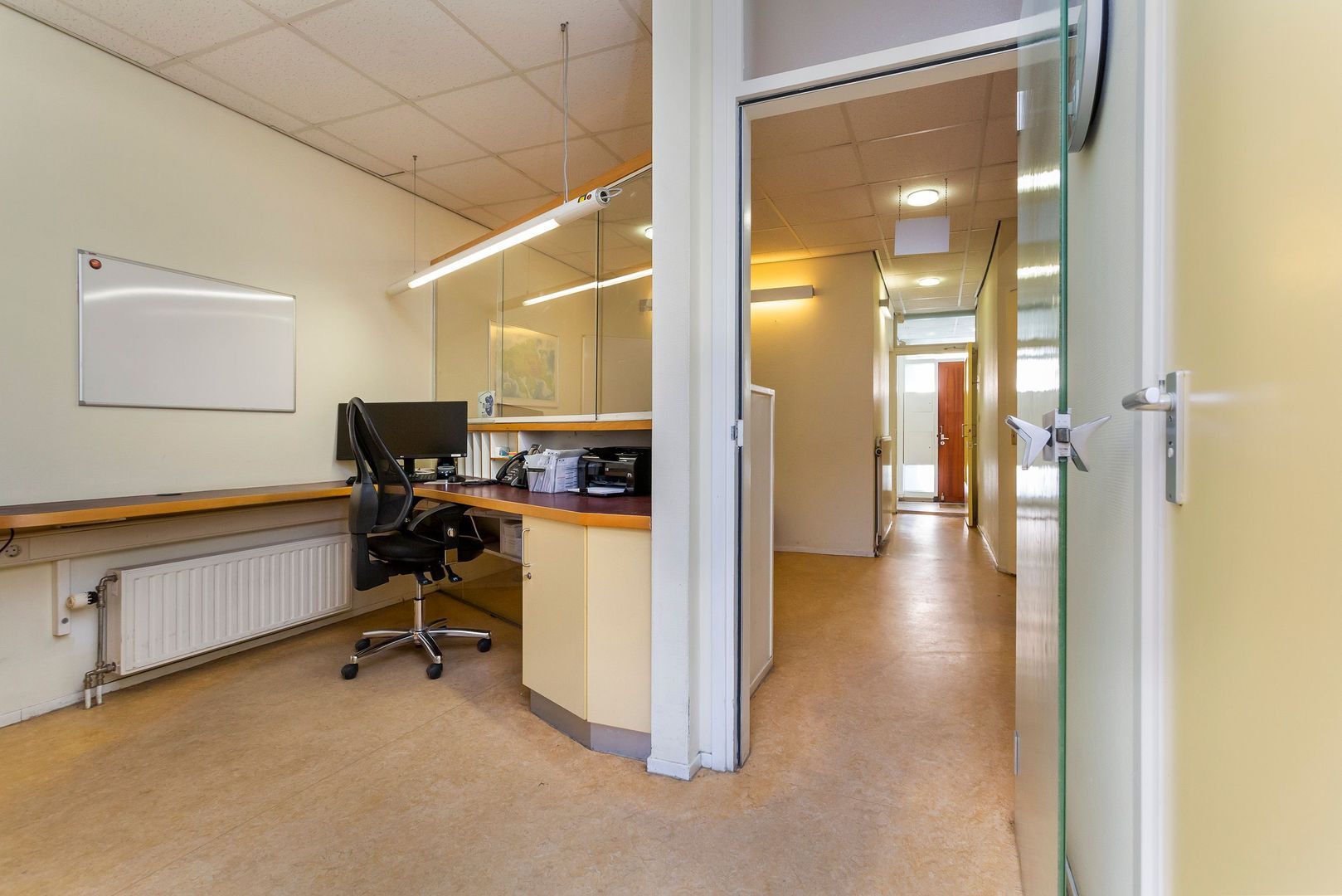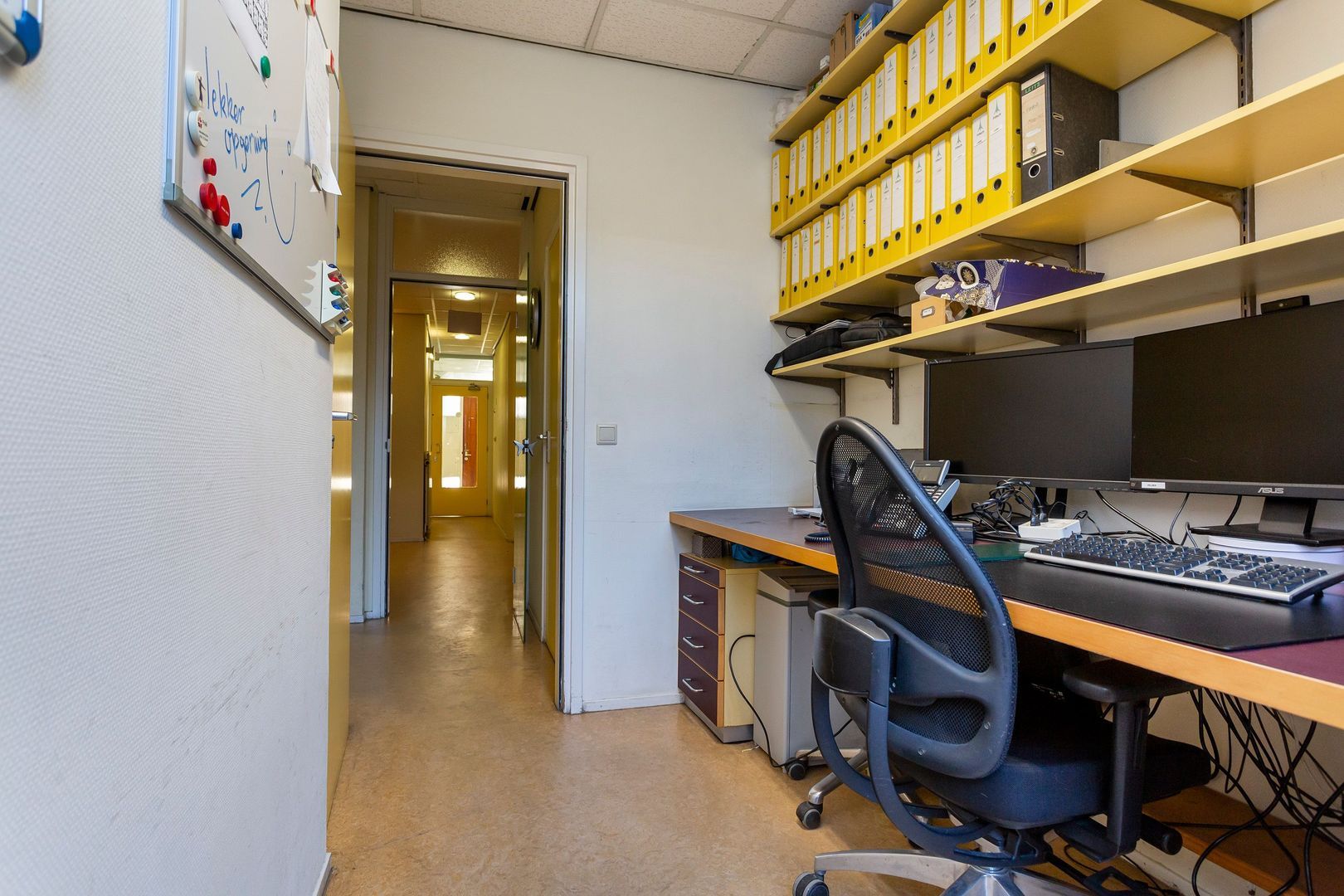 Vrij in te delen verdieping van ongeveer 60m² met singelzicht en toegang tot de achtertuin. Nu zijn er een aantal praktijk/kantoorkamers een keuken en een toilet.