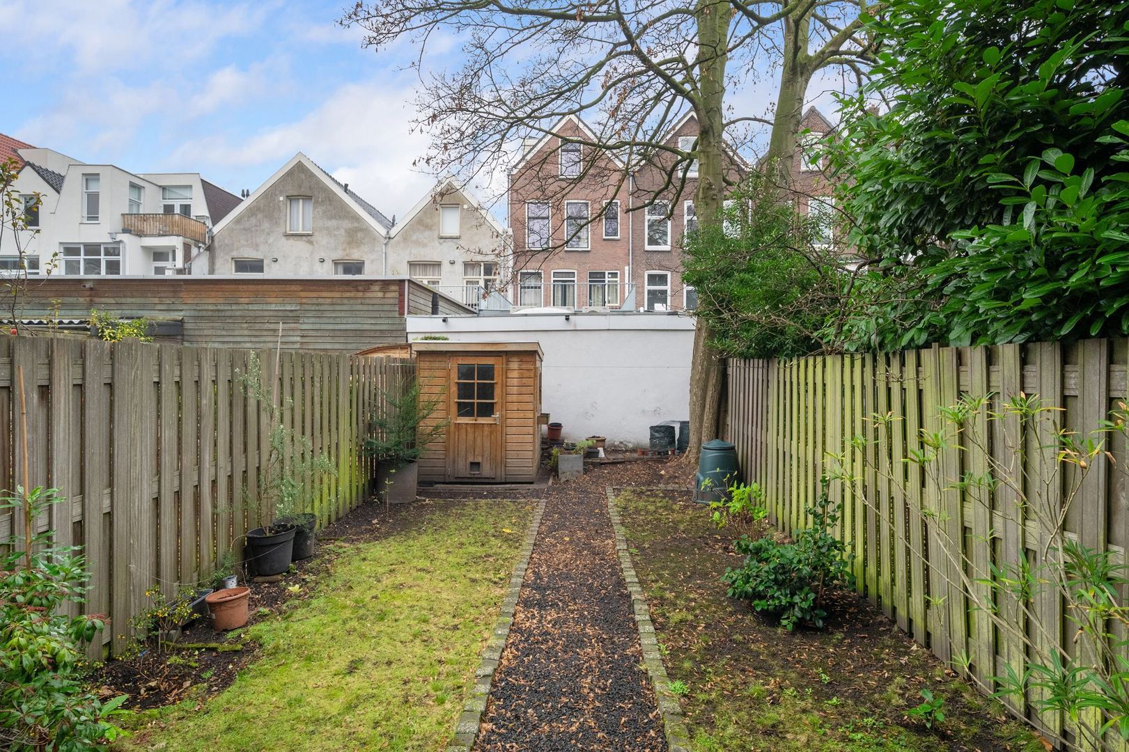 De heerlijk rustige tuin (met veel privacy want huis en tuin liggen midden in een groot huizenblok) biedt in de ochtend veel zon en later juist de nodige schaduw.