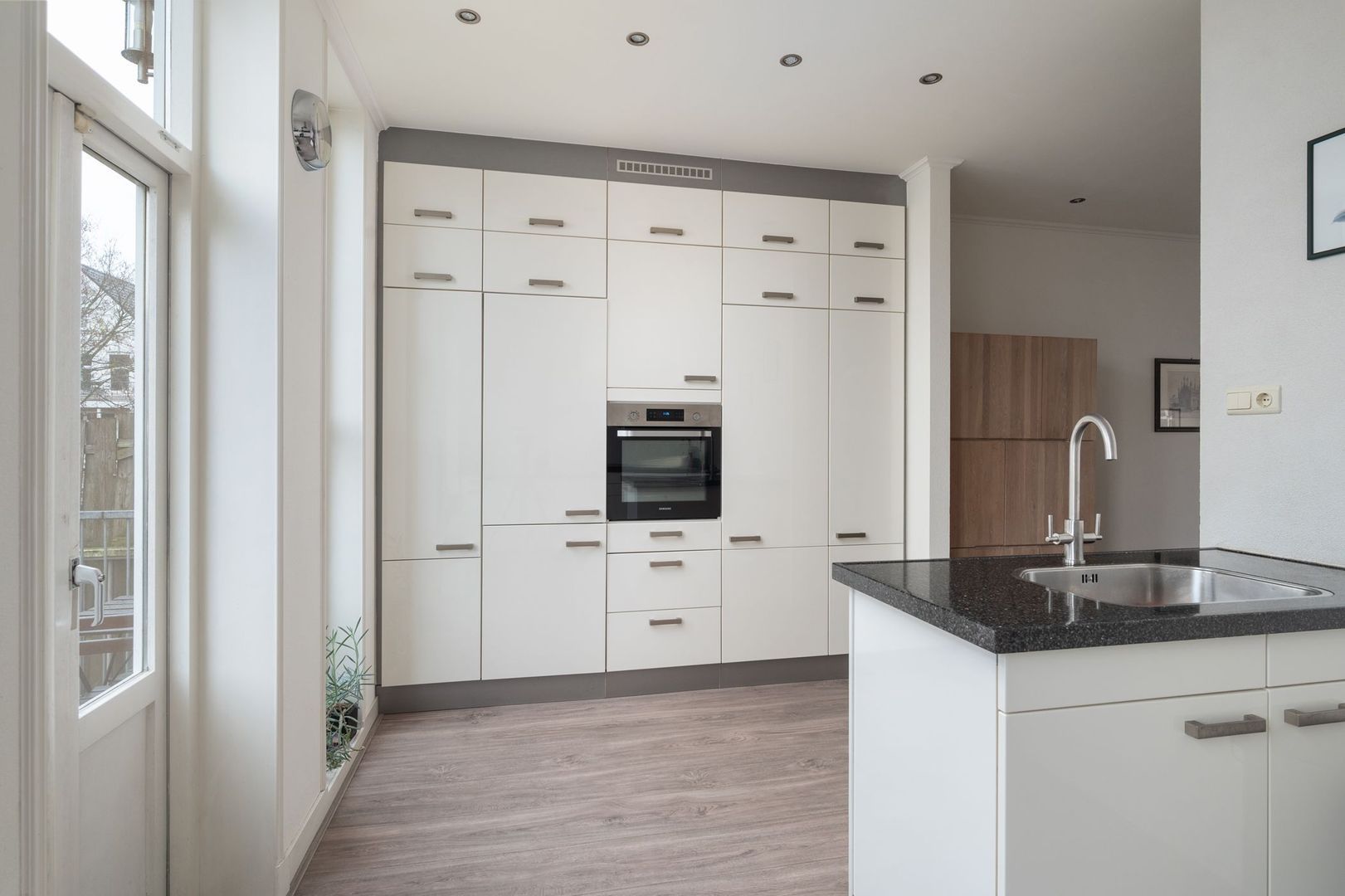 • Een brede keuken aan de tuinzijde met een complete èn tijdloze keuken met
